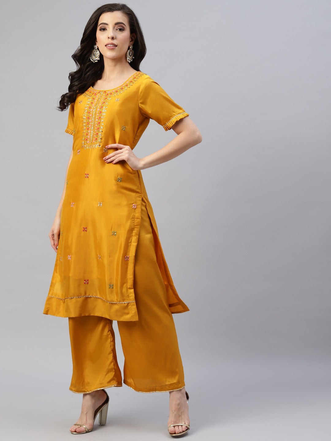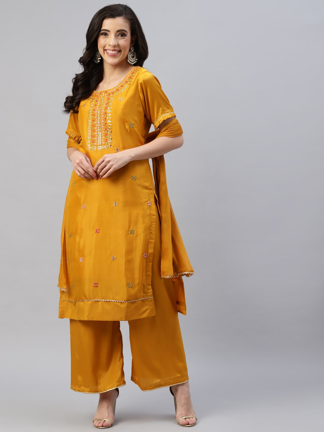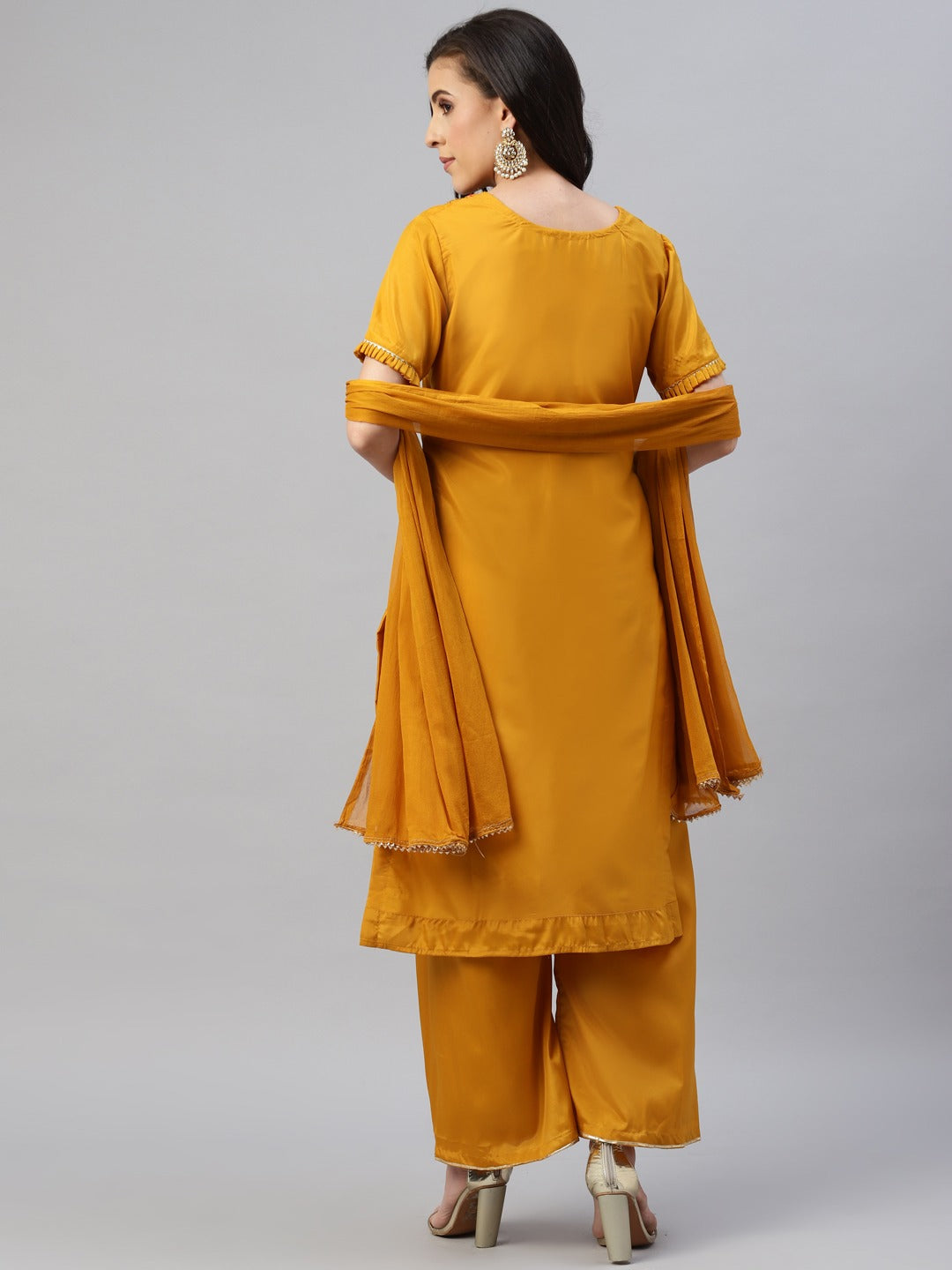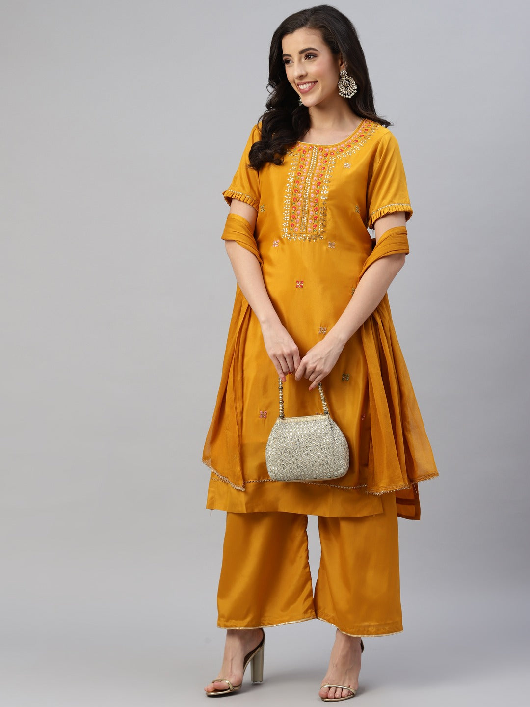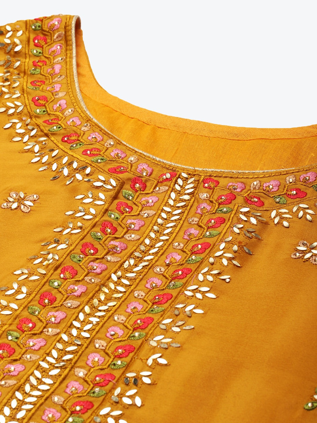 Mustard Resham Embroidered & Mirror Embellished Unstitched Suit Set