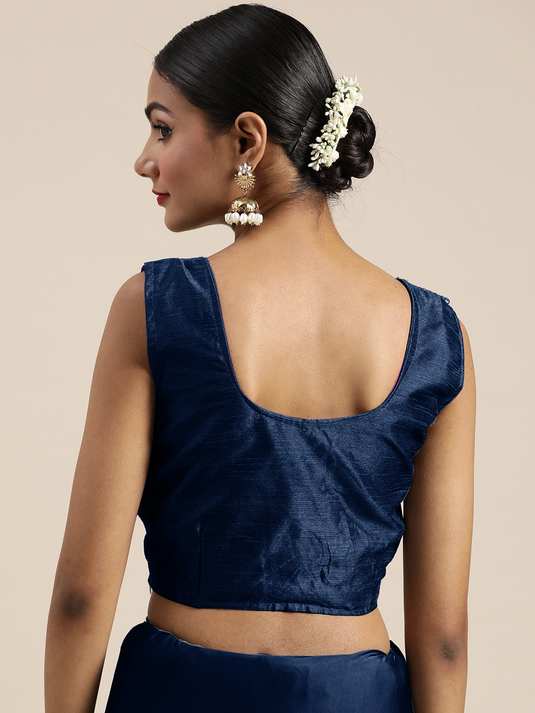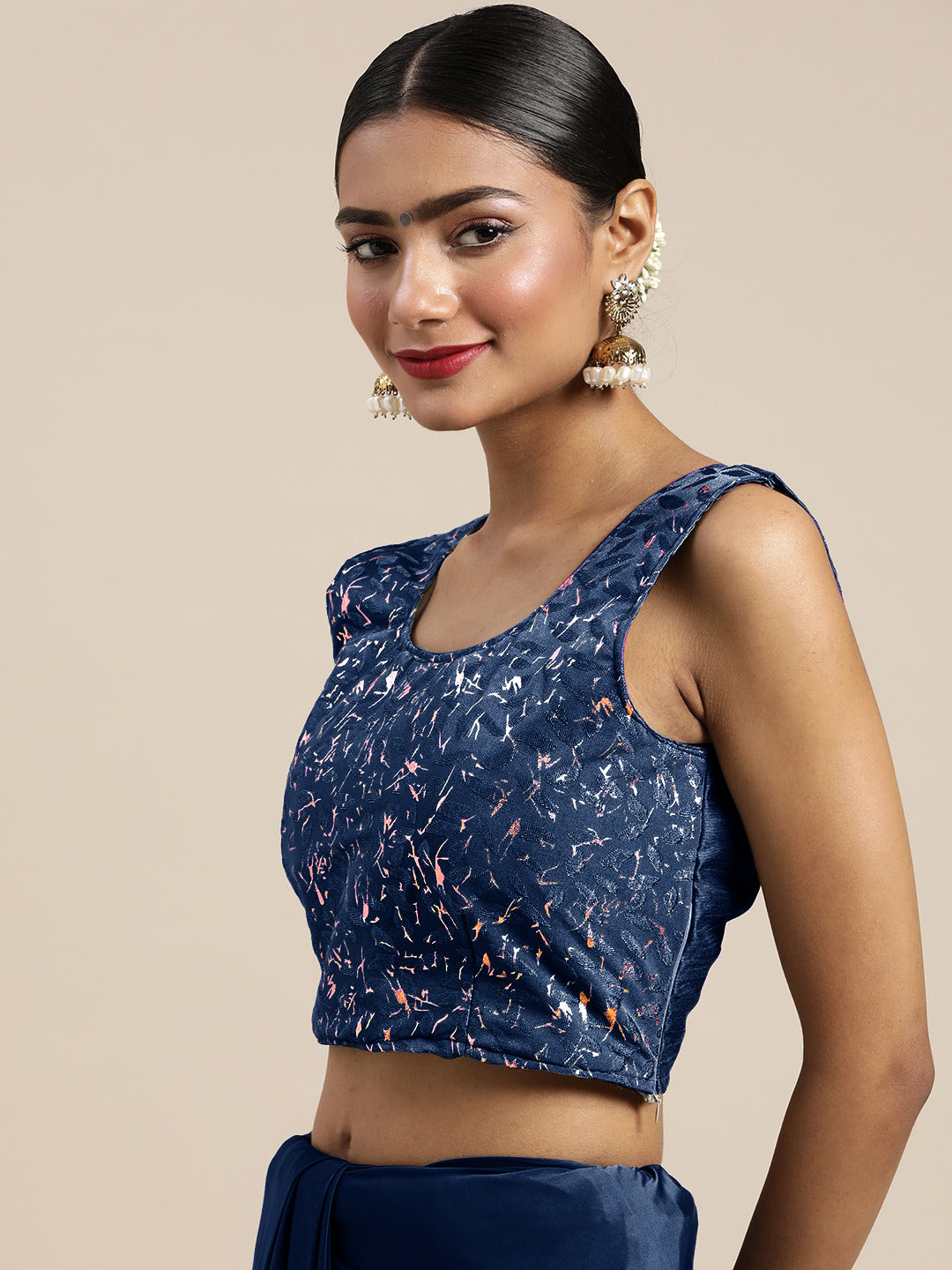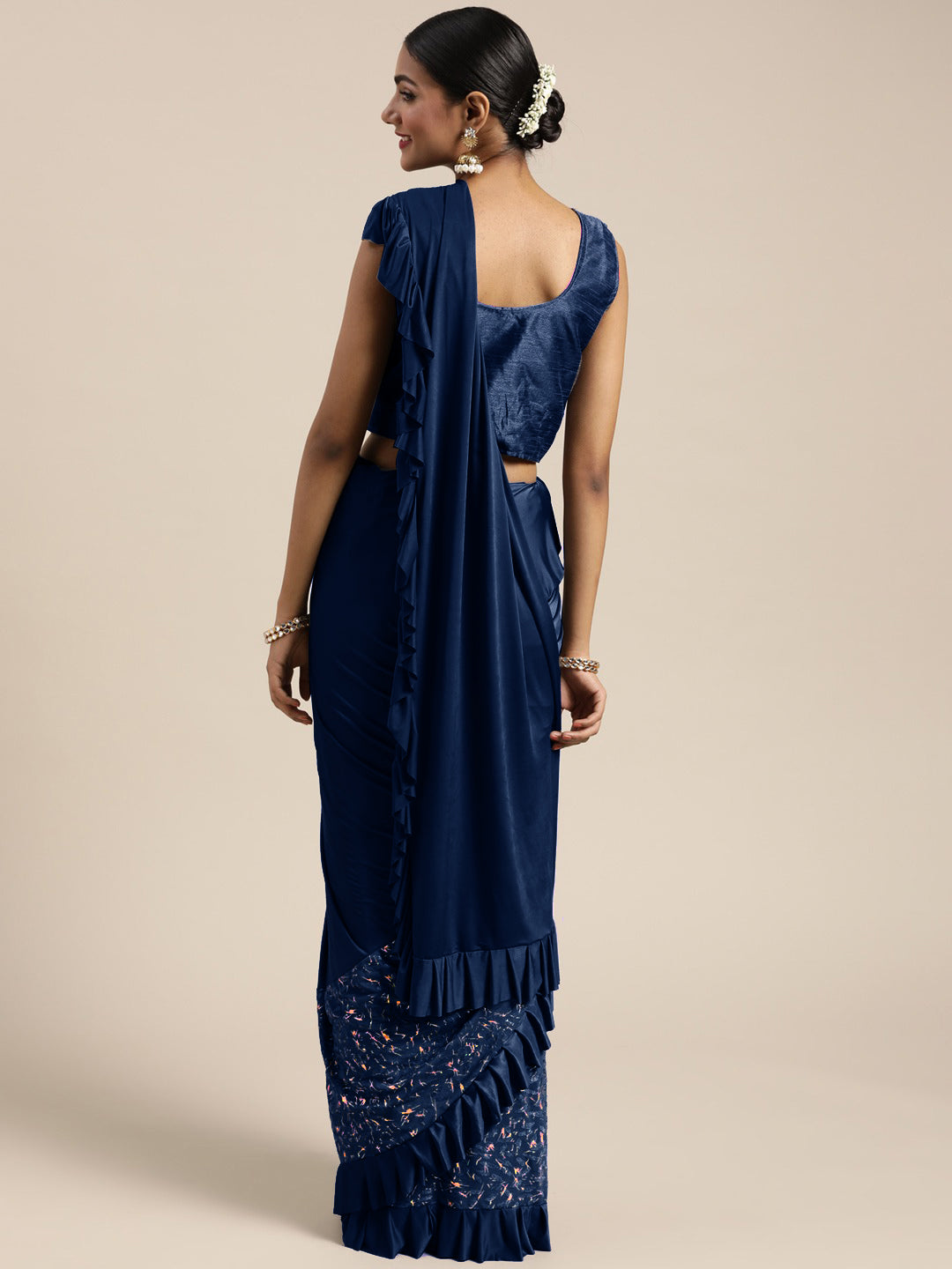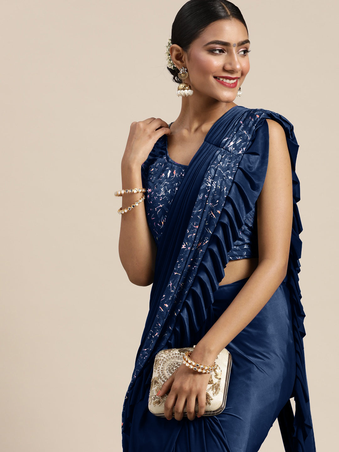 Pre-Draped Blue Ready to Wear Saree with Gold Foil print and Ruffles