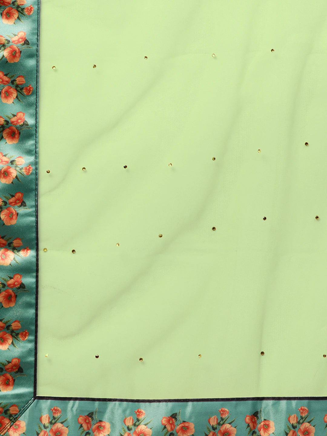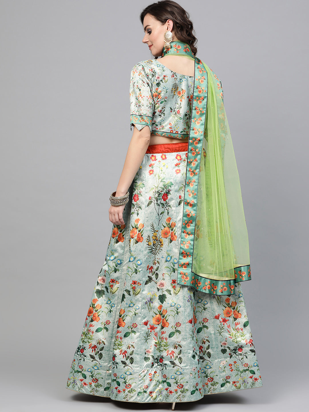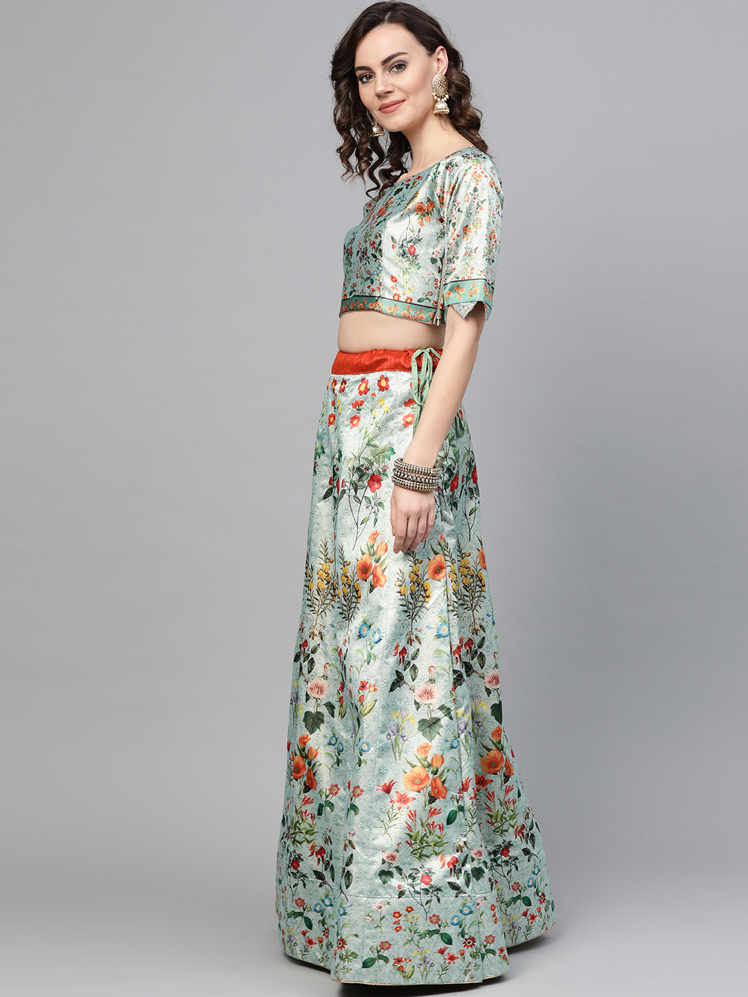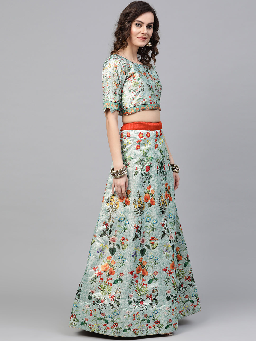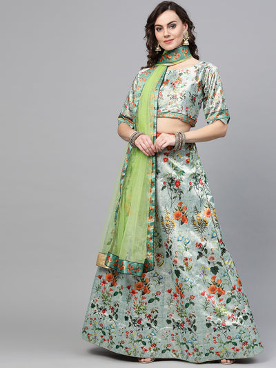 Digital Print Semi-stitched Lehenga with Floral Motifs