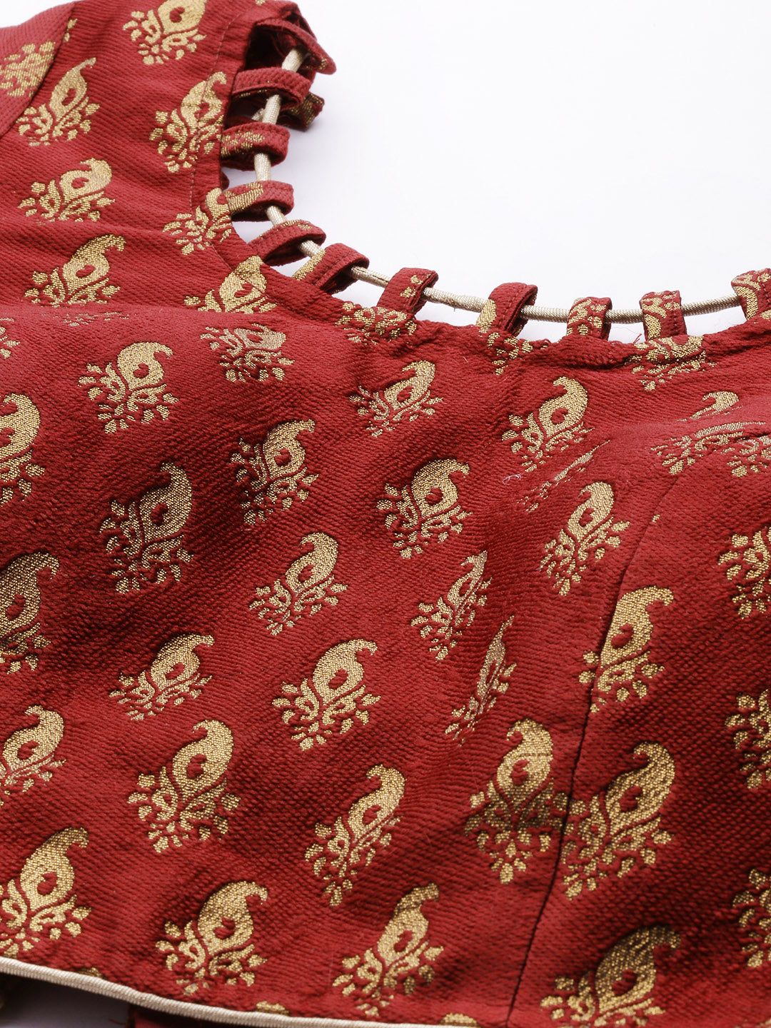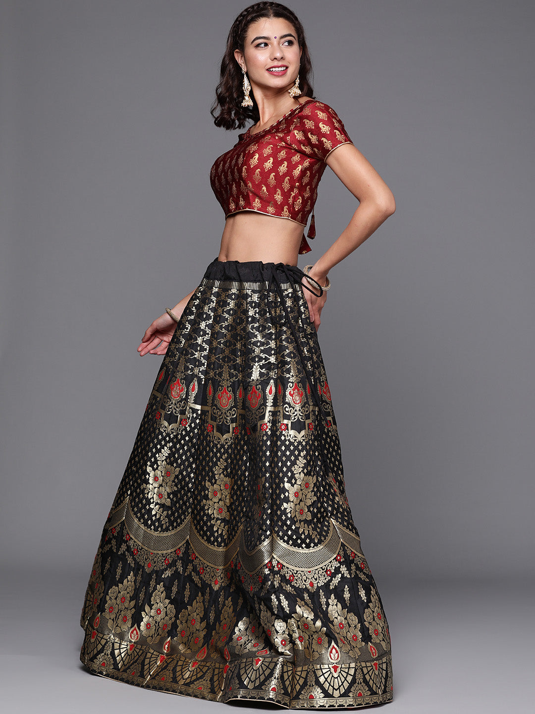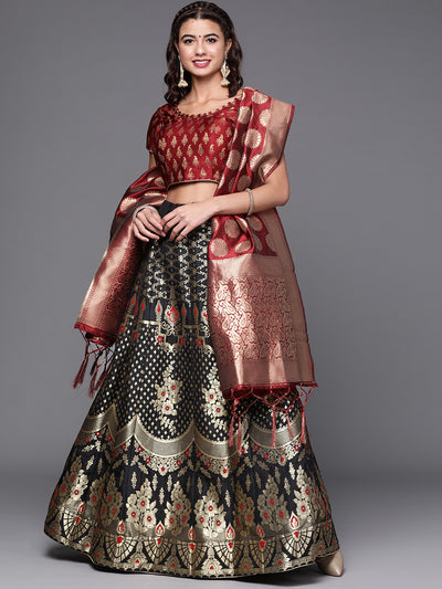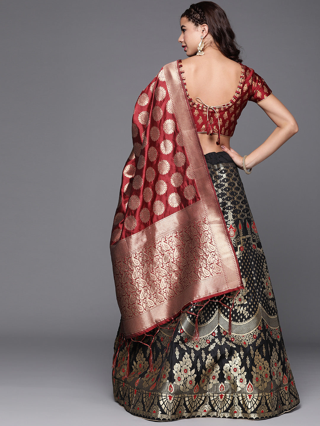 Semi Stitched Banarasi Brocade Silk Lehenga Choli with Zari & Resham Weaving,Tassels