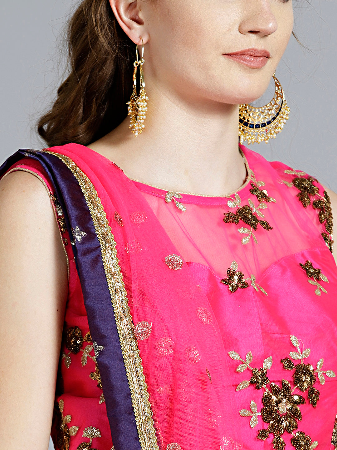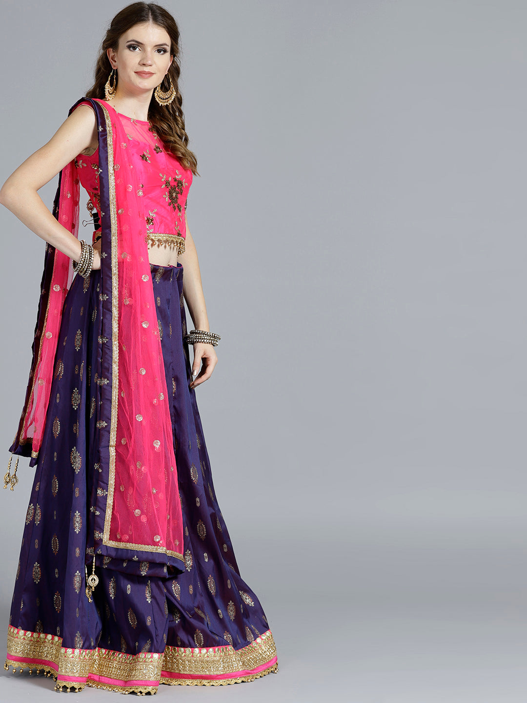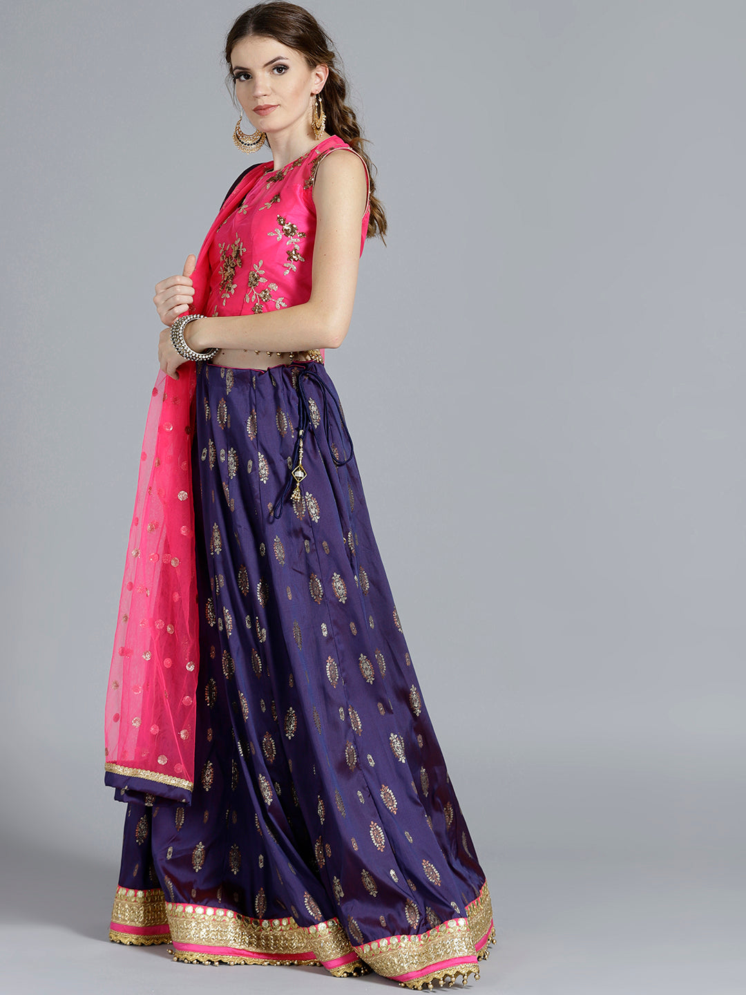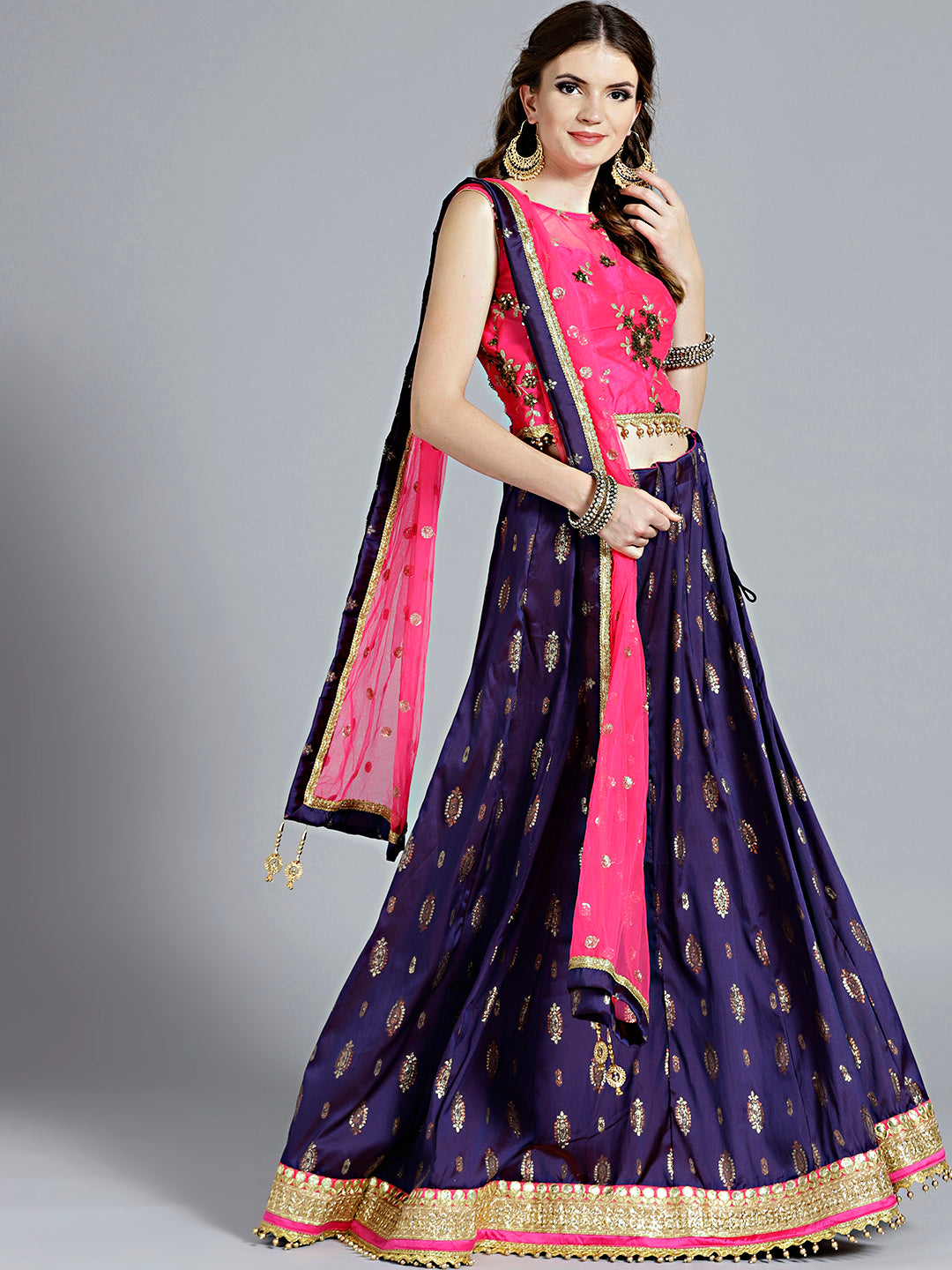 Glitter Print Lehenga with Zircon Embellished Blouse