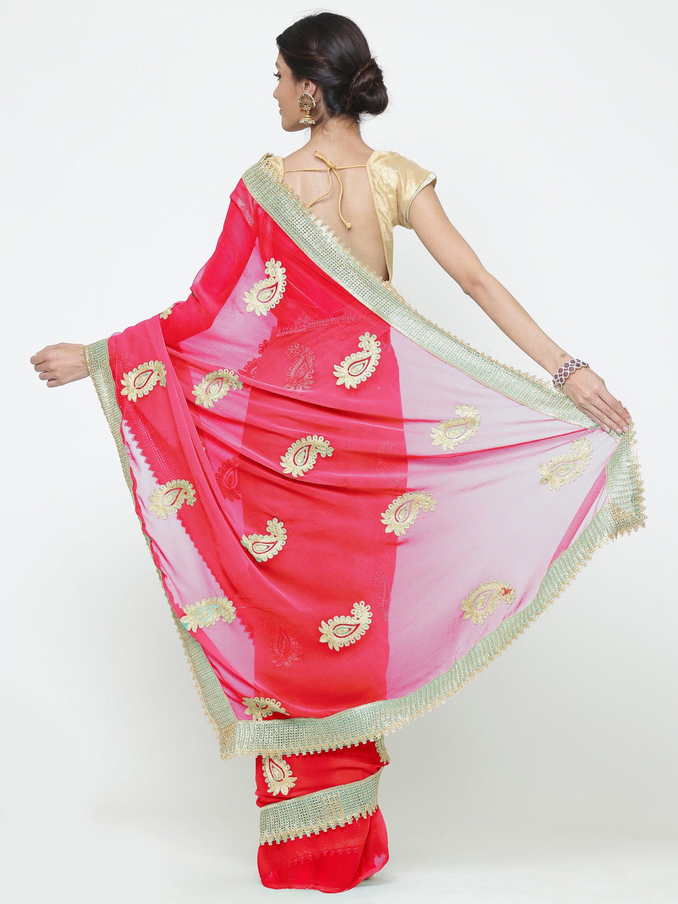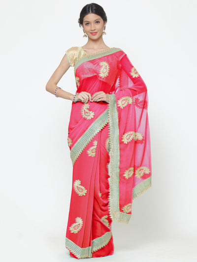 Georgette Saree With Resham Embroidered Paisley Motifs