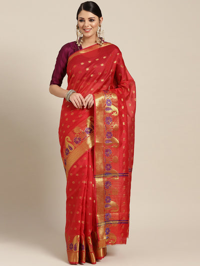 Banarasi Chanderi Silk Saree with Zari Meenakari Weaving