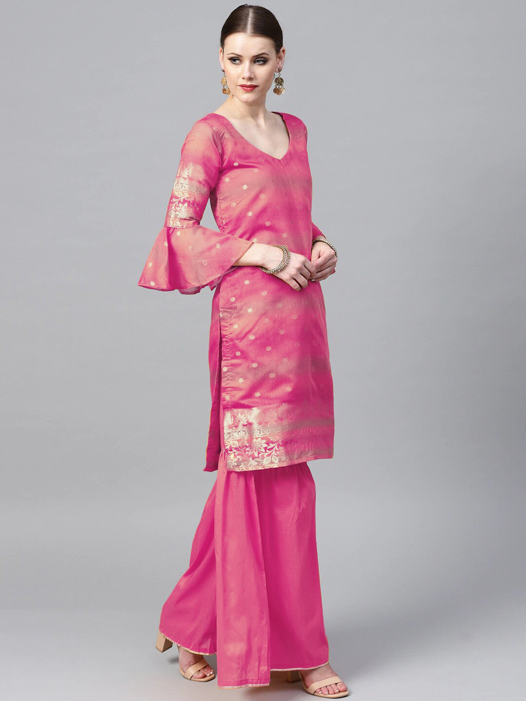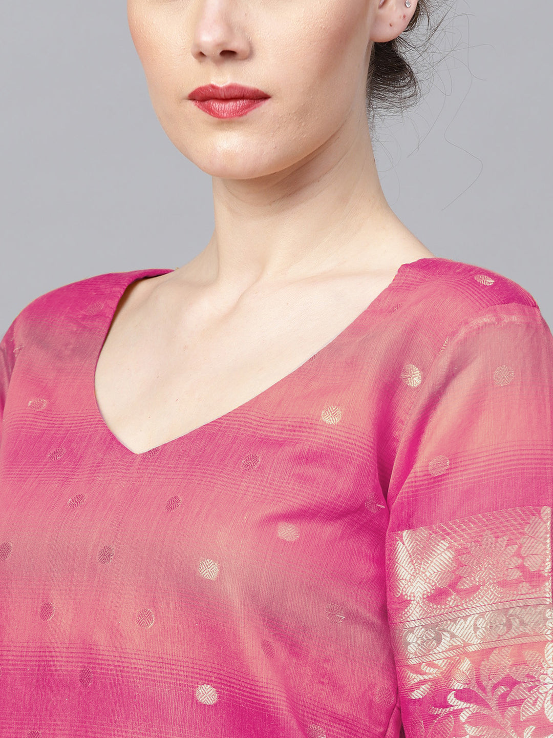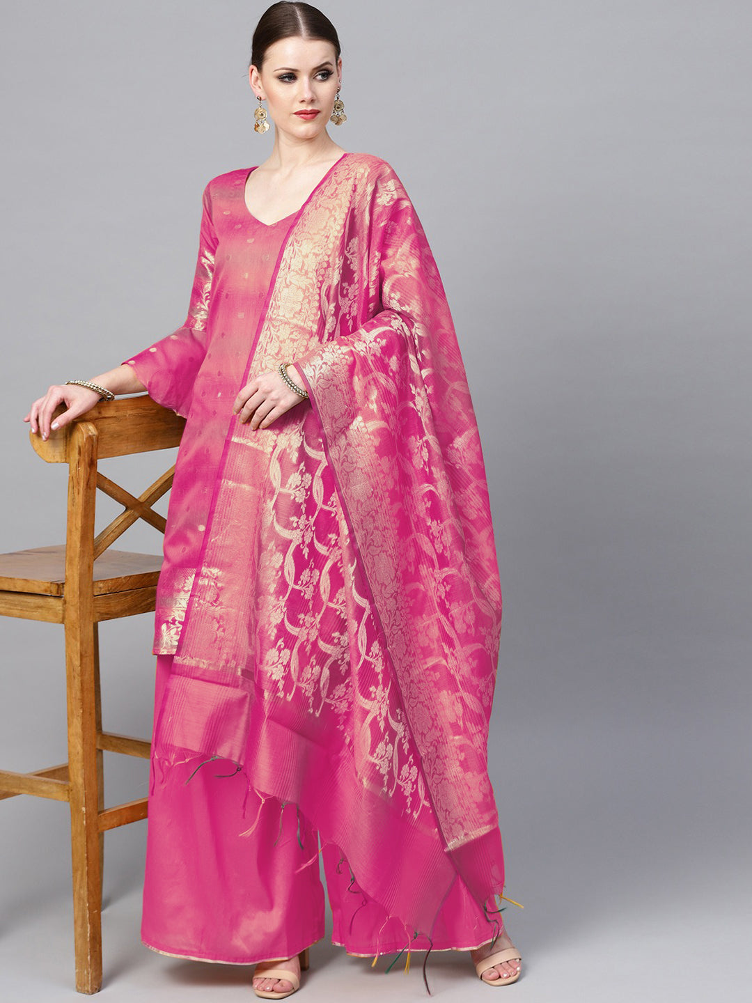 Fuchsia Banarasi Handloom Dress Material with Zari Weaving & dupatta