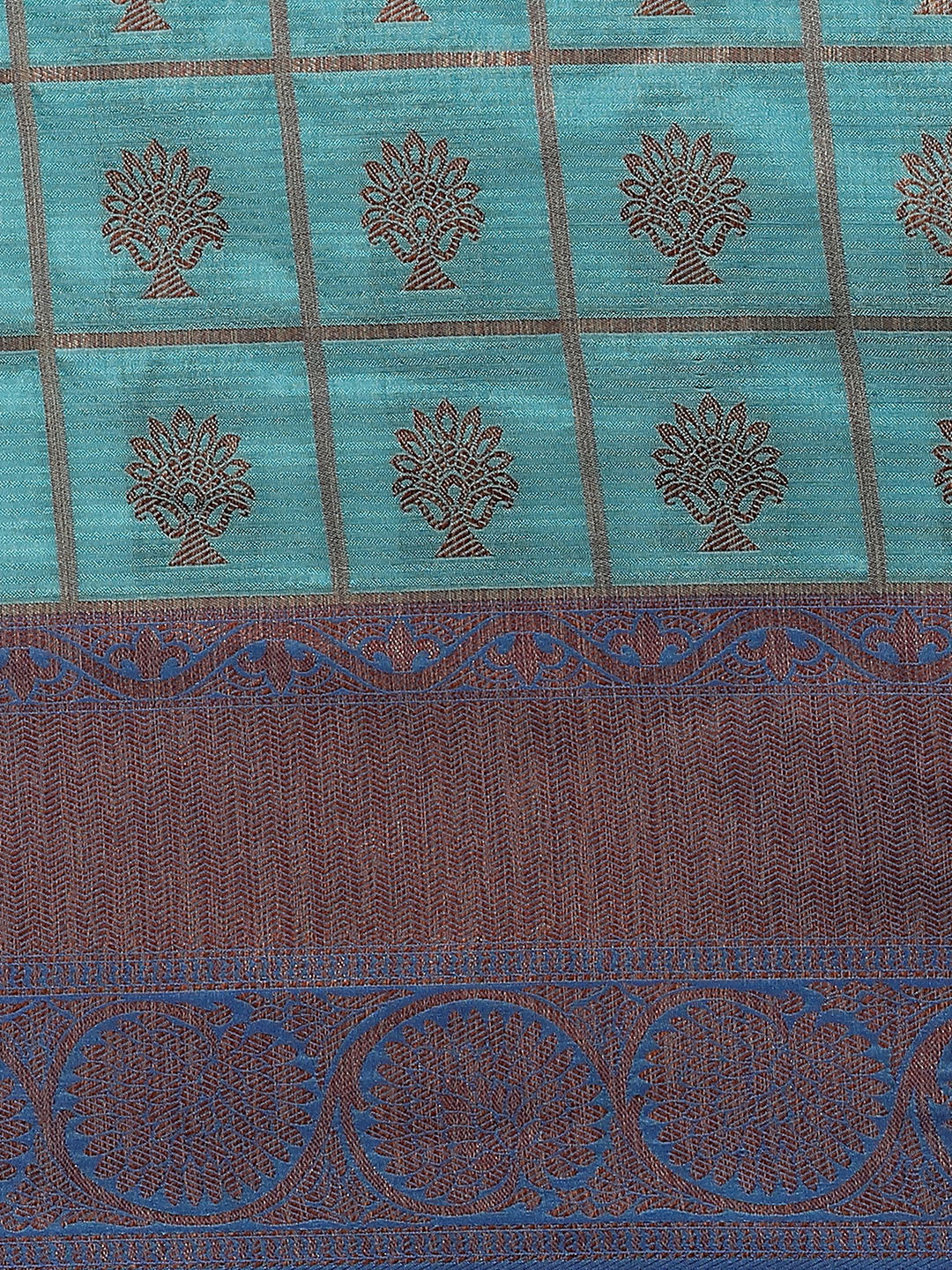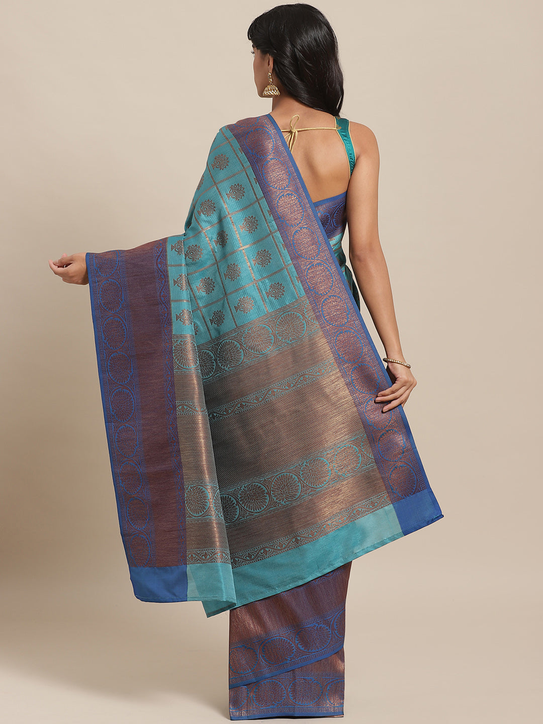 Traditional Checked Banarasi Jute Silk Saree with Oxidised Zari and contrast border