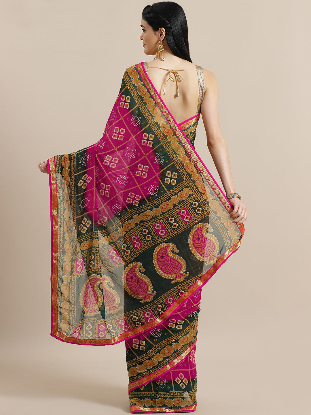 Gharchola Inspired Georgette saree with Ethnic Paisley Motifs & Banarasi Brocade Border