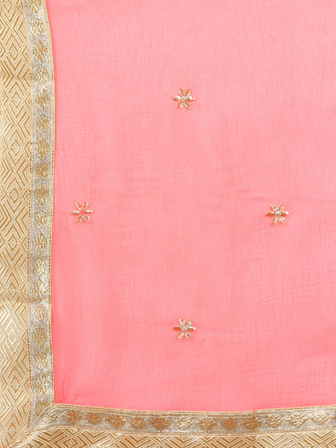 Resham & Zari Embroidered Georgette Saree with Floral Paisley Motifs