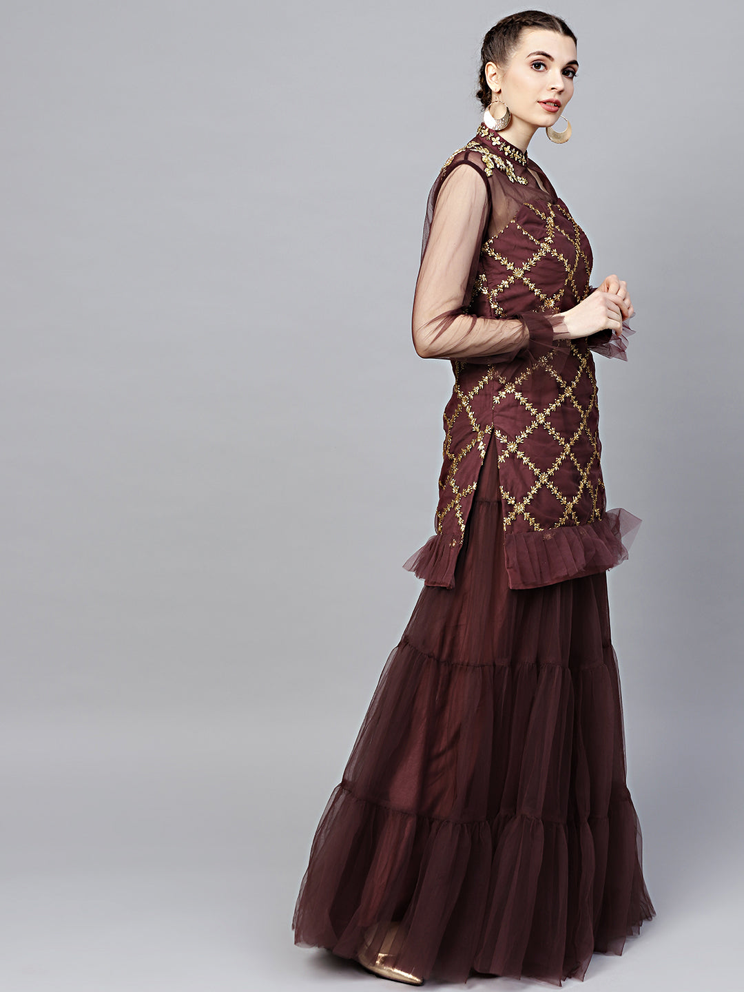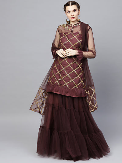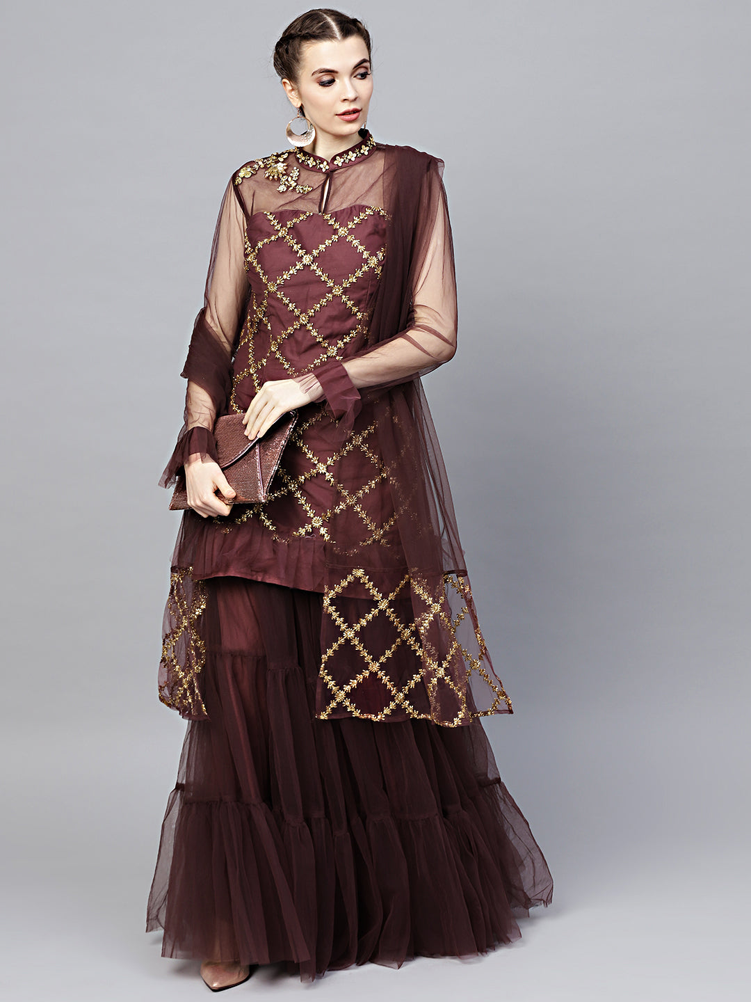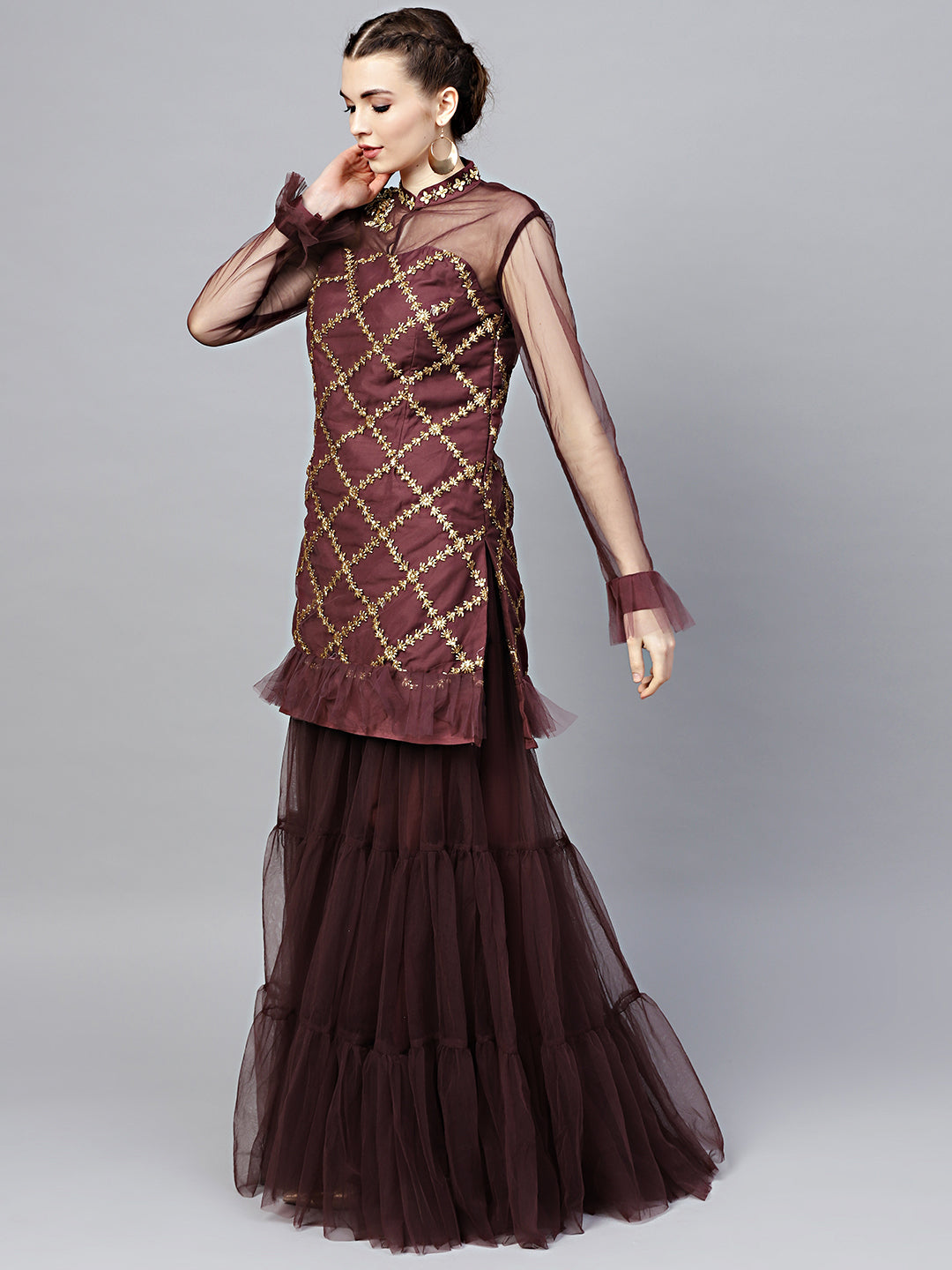 Kurta Sharara Set with Zari, Sequence, Pearl Embroidery