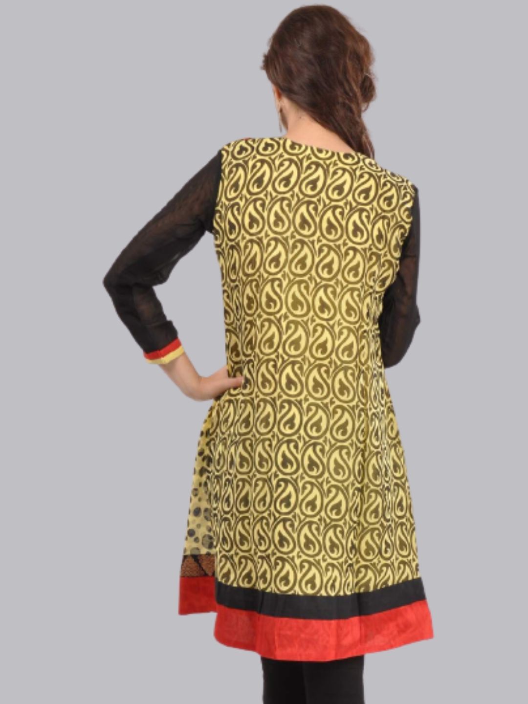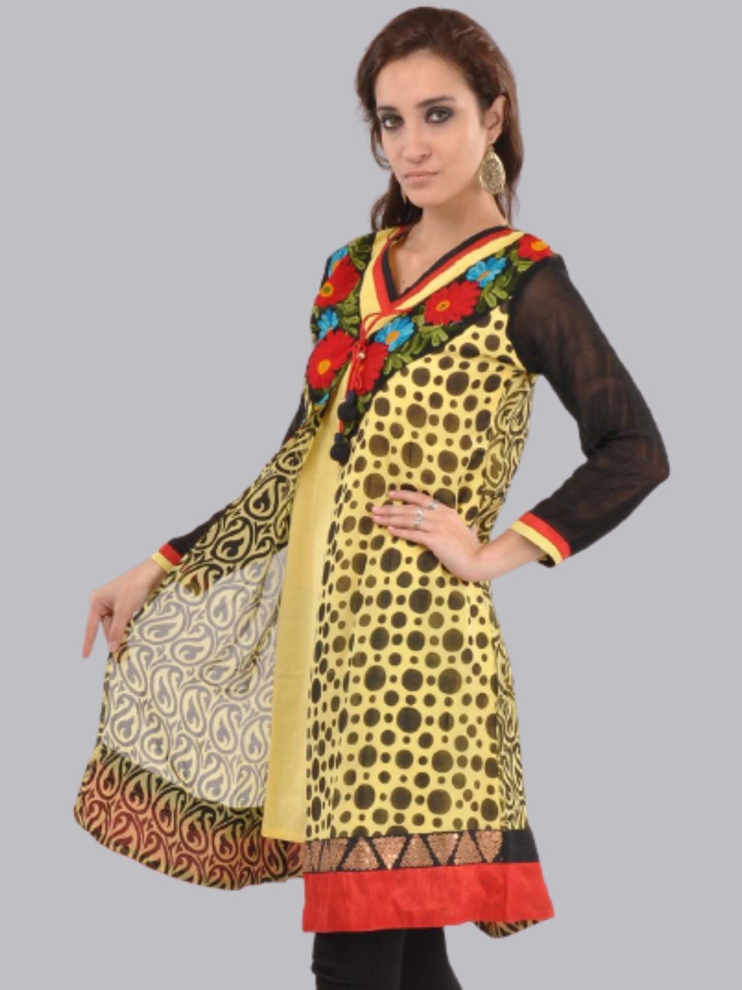 Black & Beige Printed, Resham Embroidered Georgette Kurti