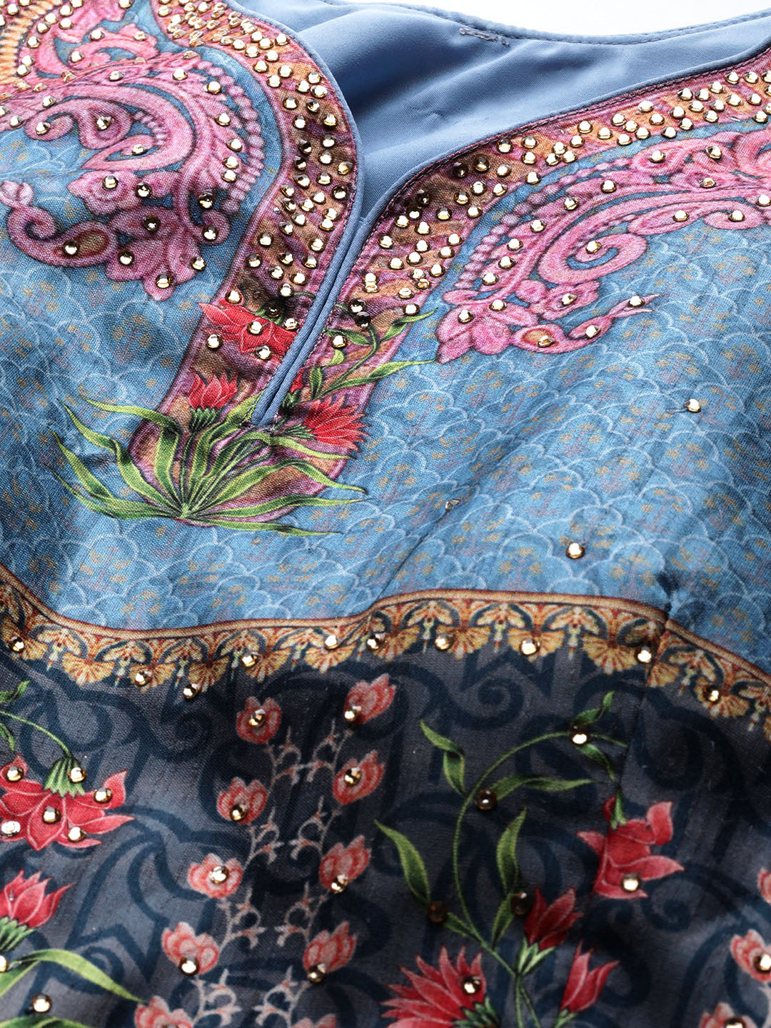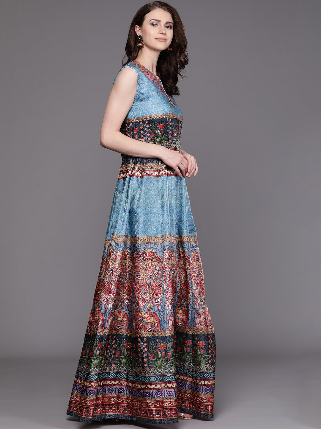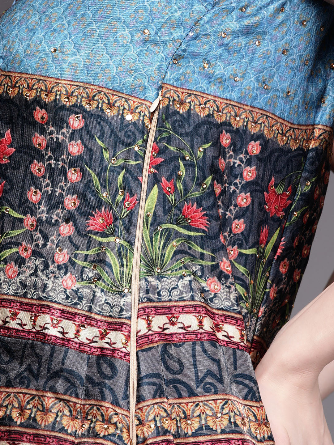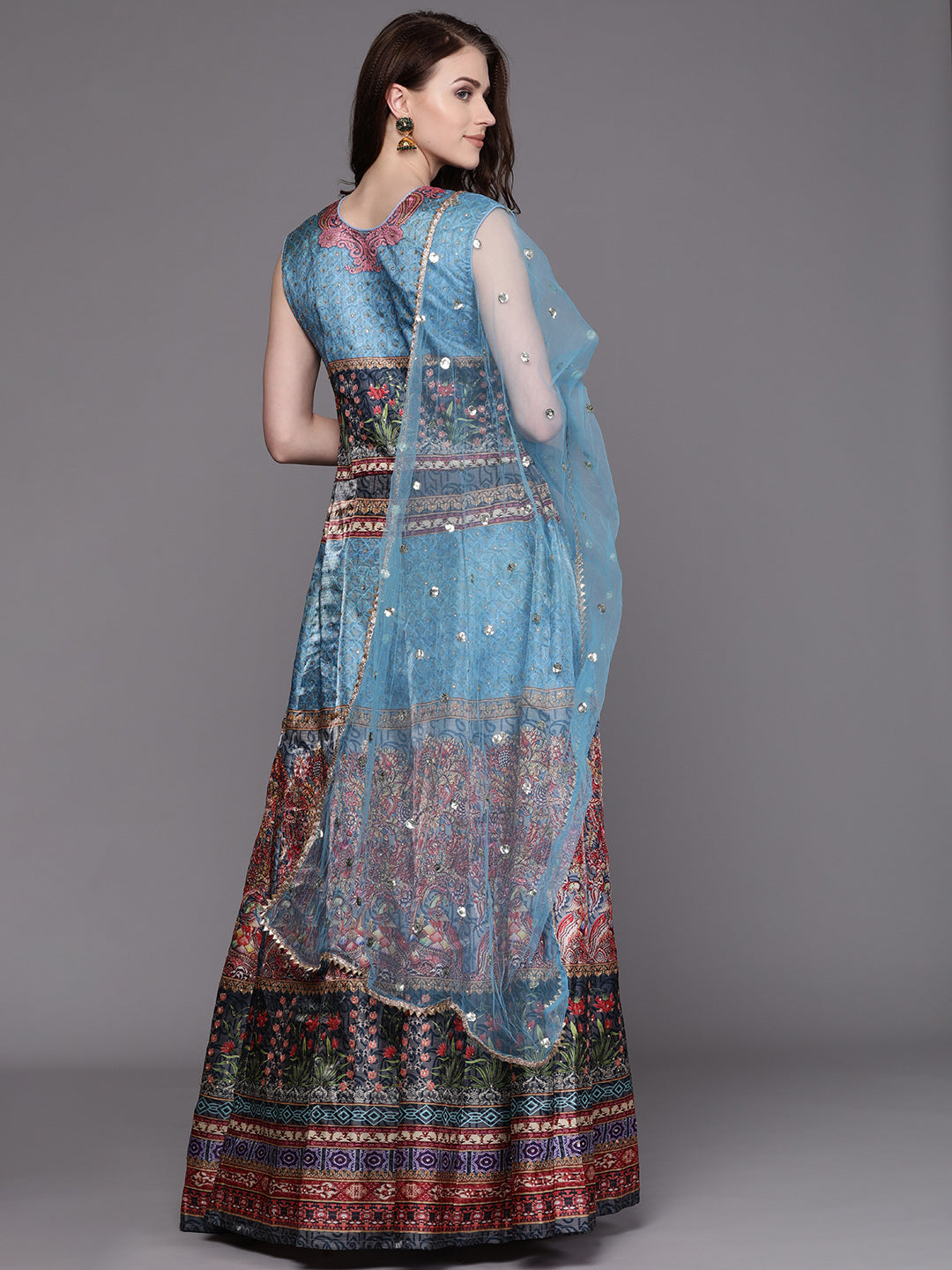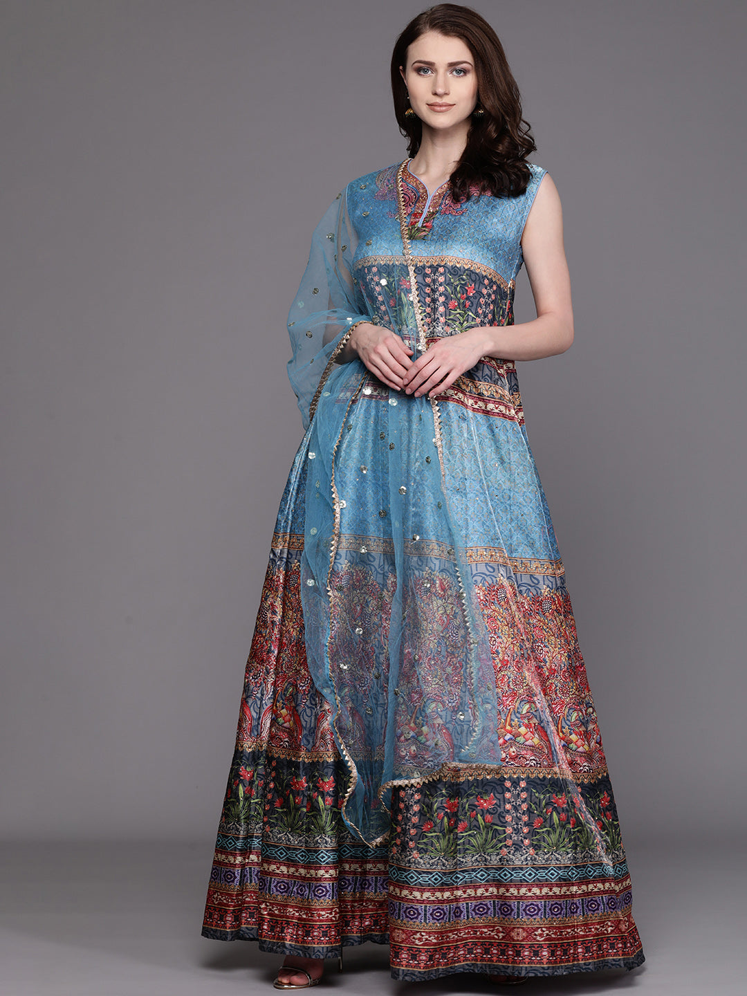 Embellished Cocktail Gown with Bohemian Print and Sequinned dupatta