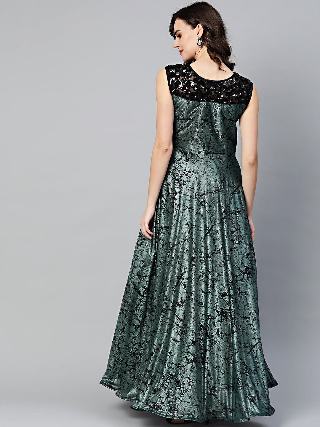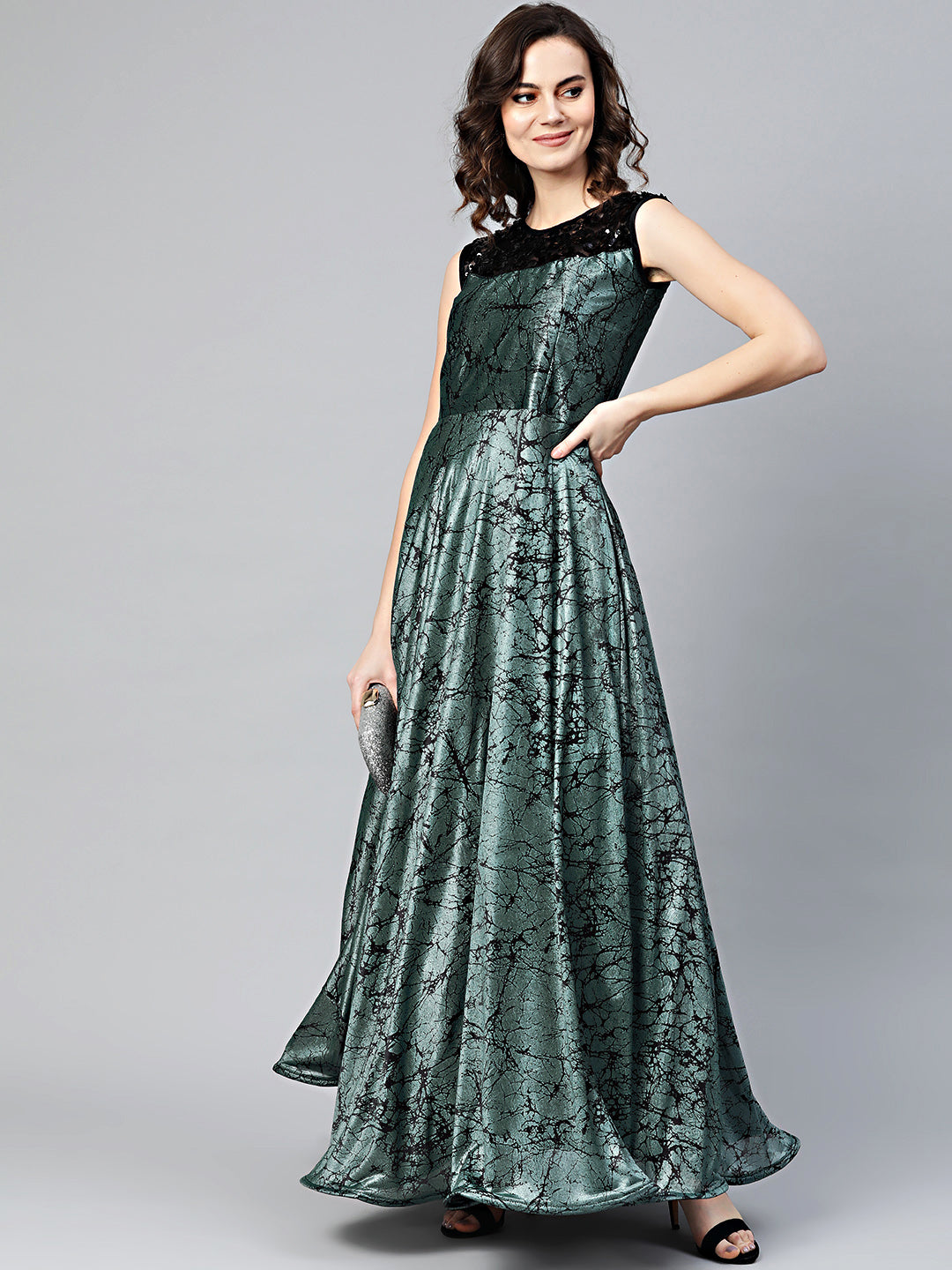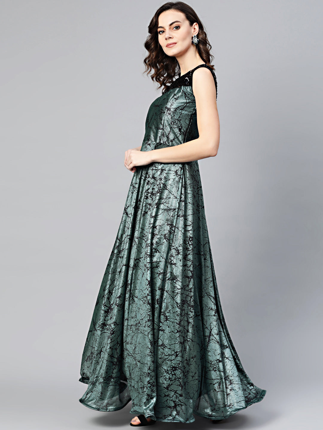 Embellished Cocktail Gown with Contemporary Abstract Print