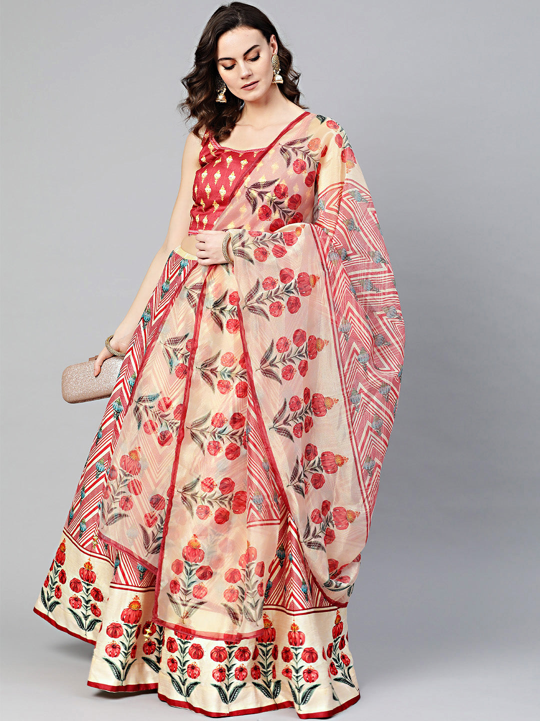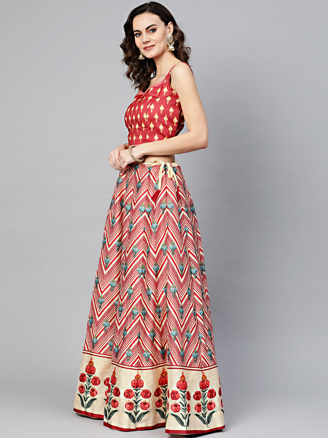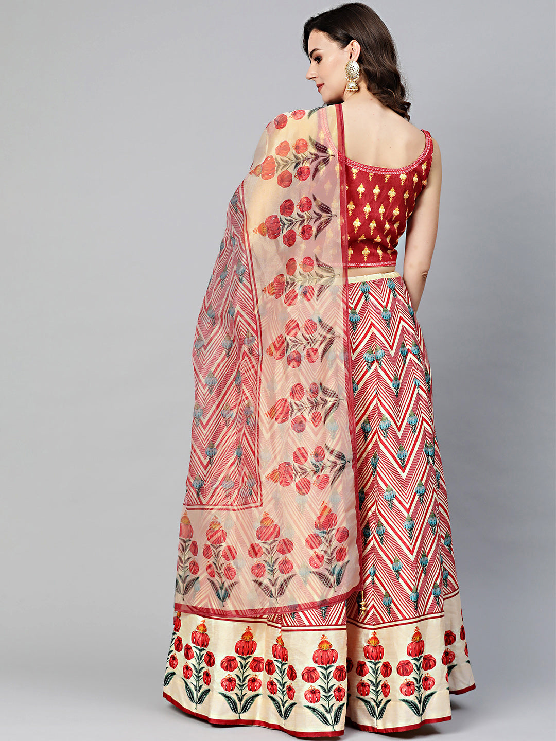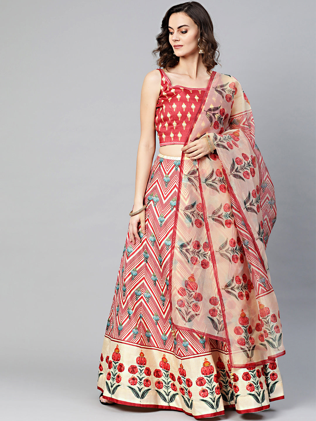 Geometric Digital Print Embellished Crop Top Lehenga Choli