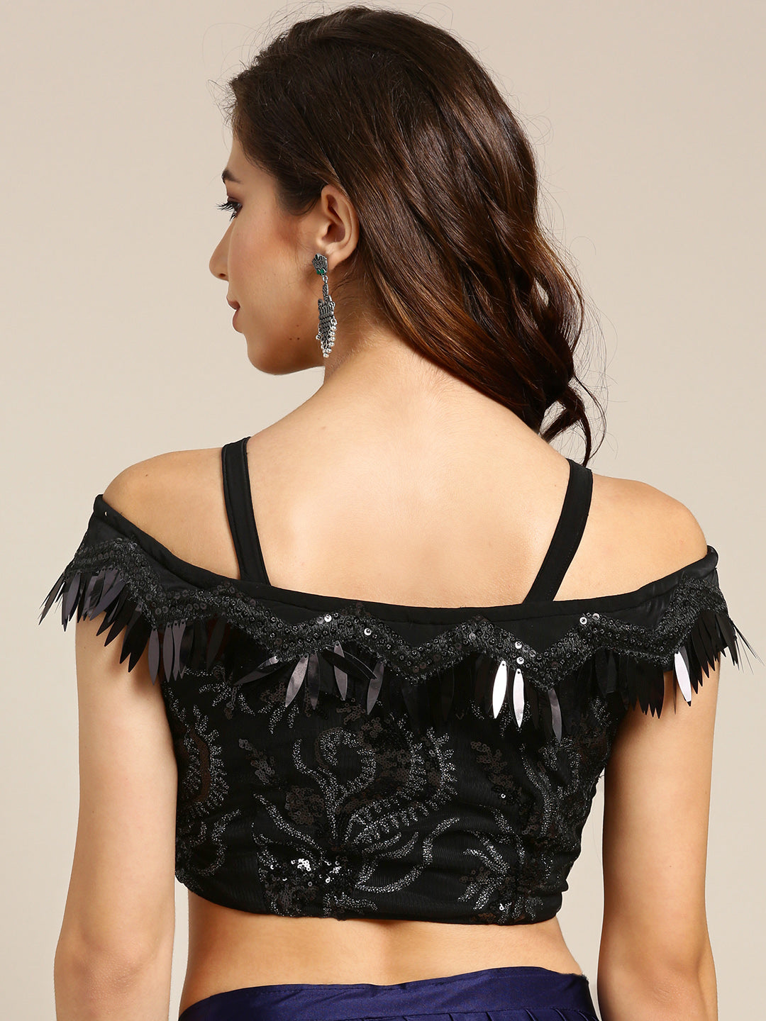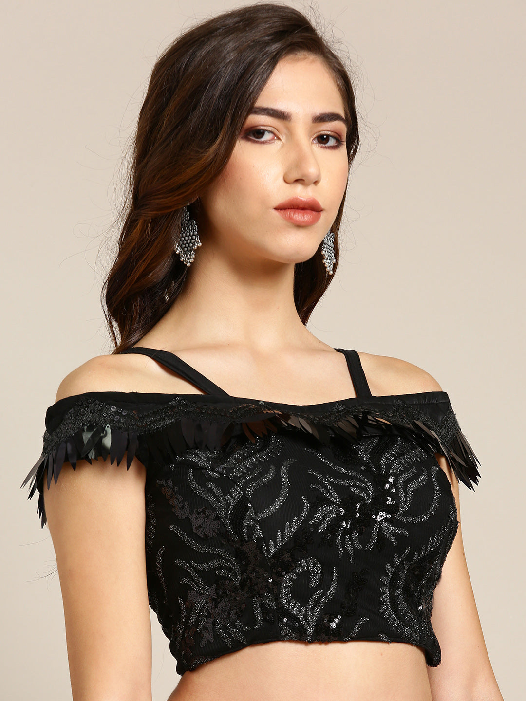 Ruffled Pre-stitched Saree with Festive Layering & Bling Embroidery Off Shoulder Blouse