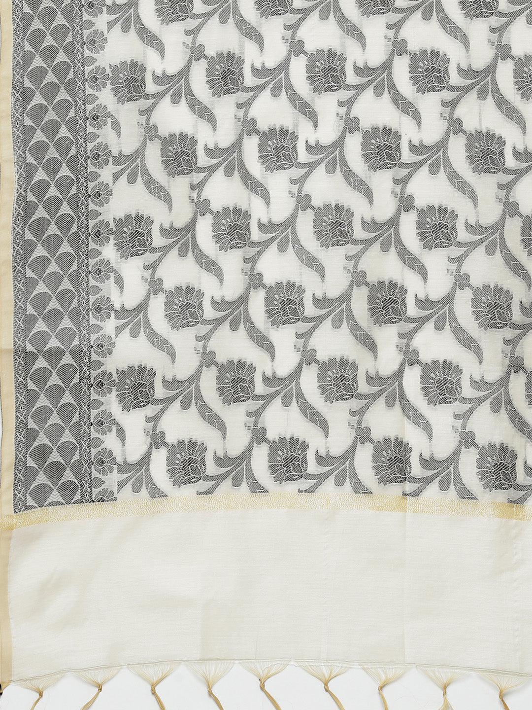 Handloom Chanderi Dress Material with Gold Floral Weave Pattern & Banarasi Duppatta
