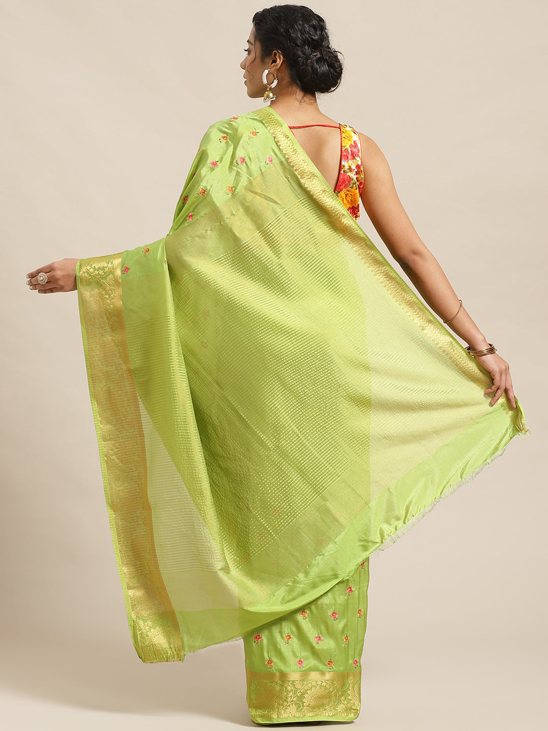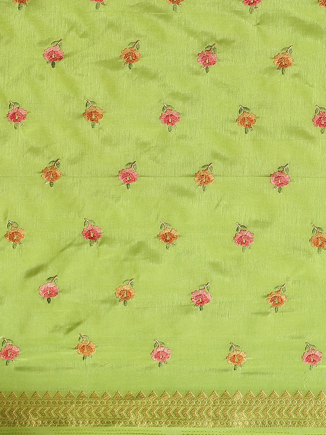 Handloom Chanderi Saree with intricate Resham Embroidered Floral motifs & Zari Border