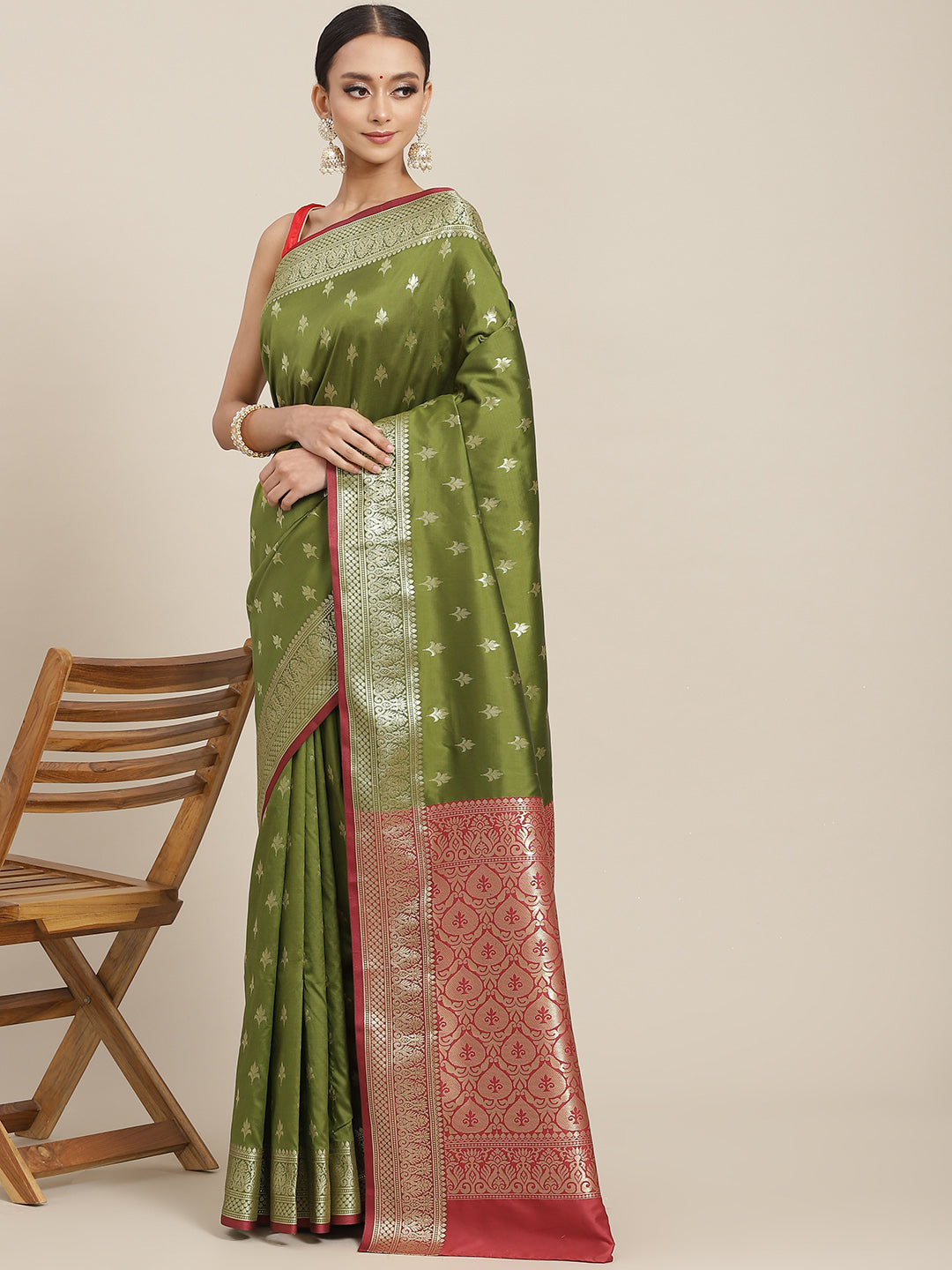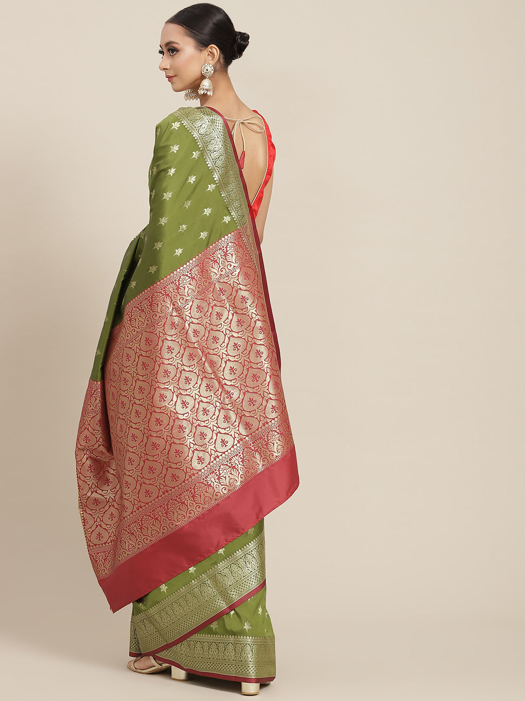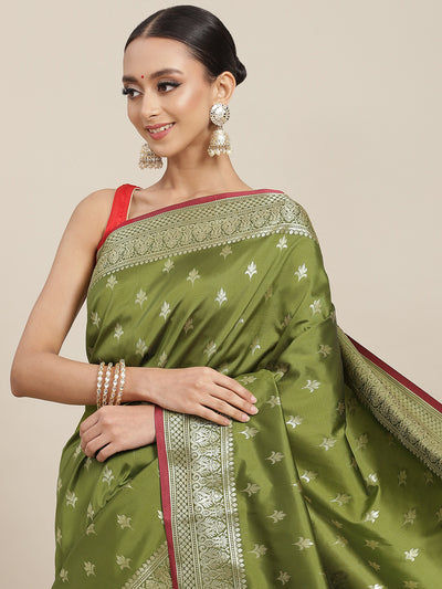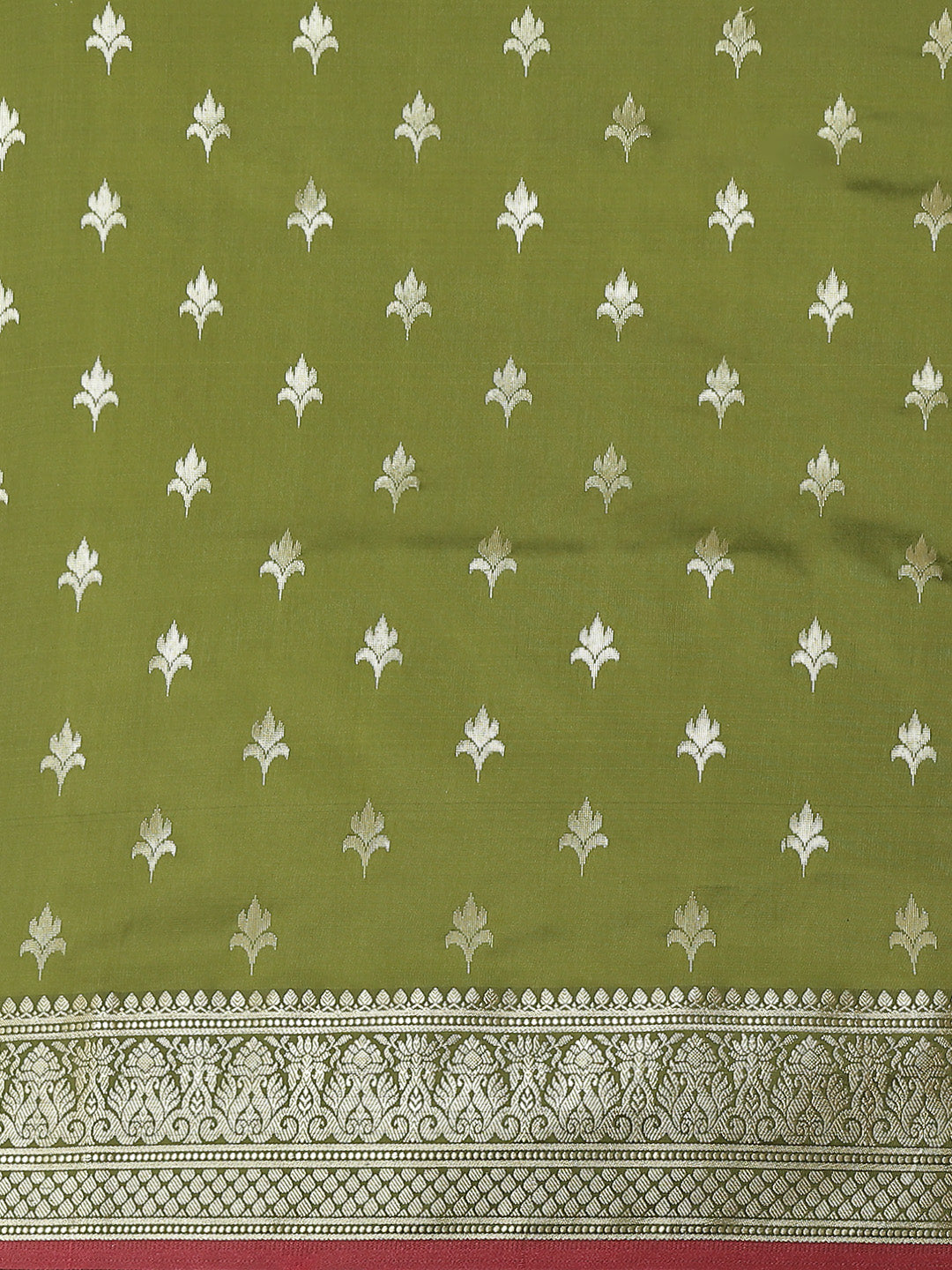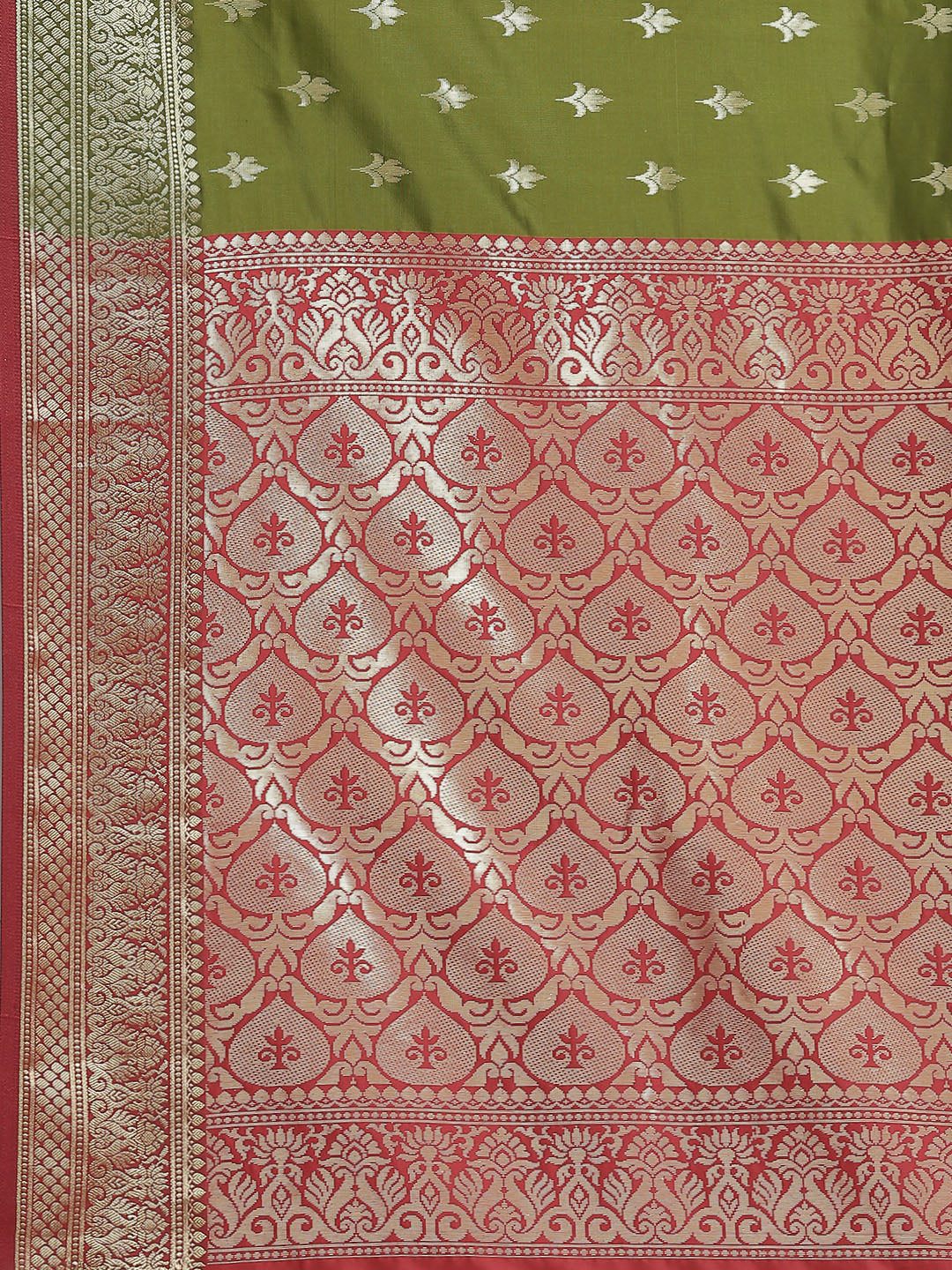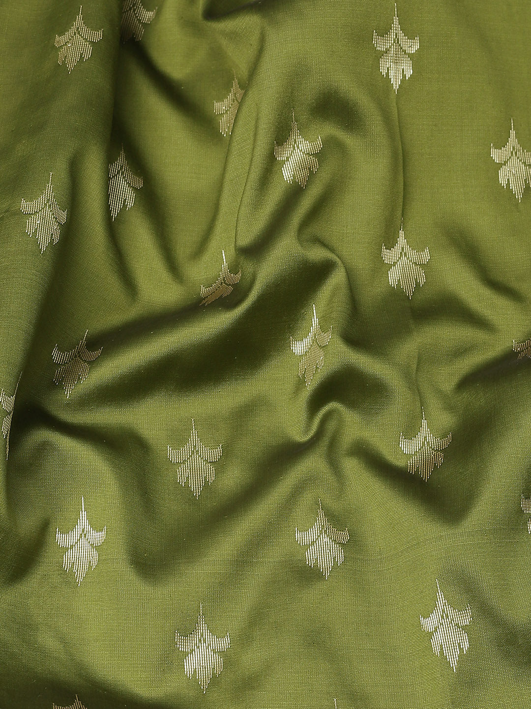 Olive Green Gold Zari Mysore Silk Bridal Handloom Woven Saree