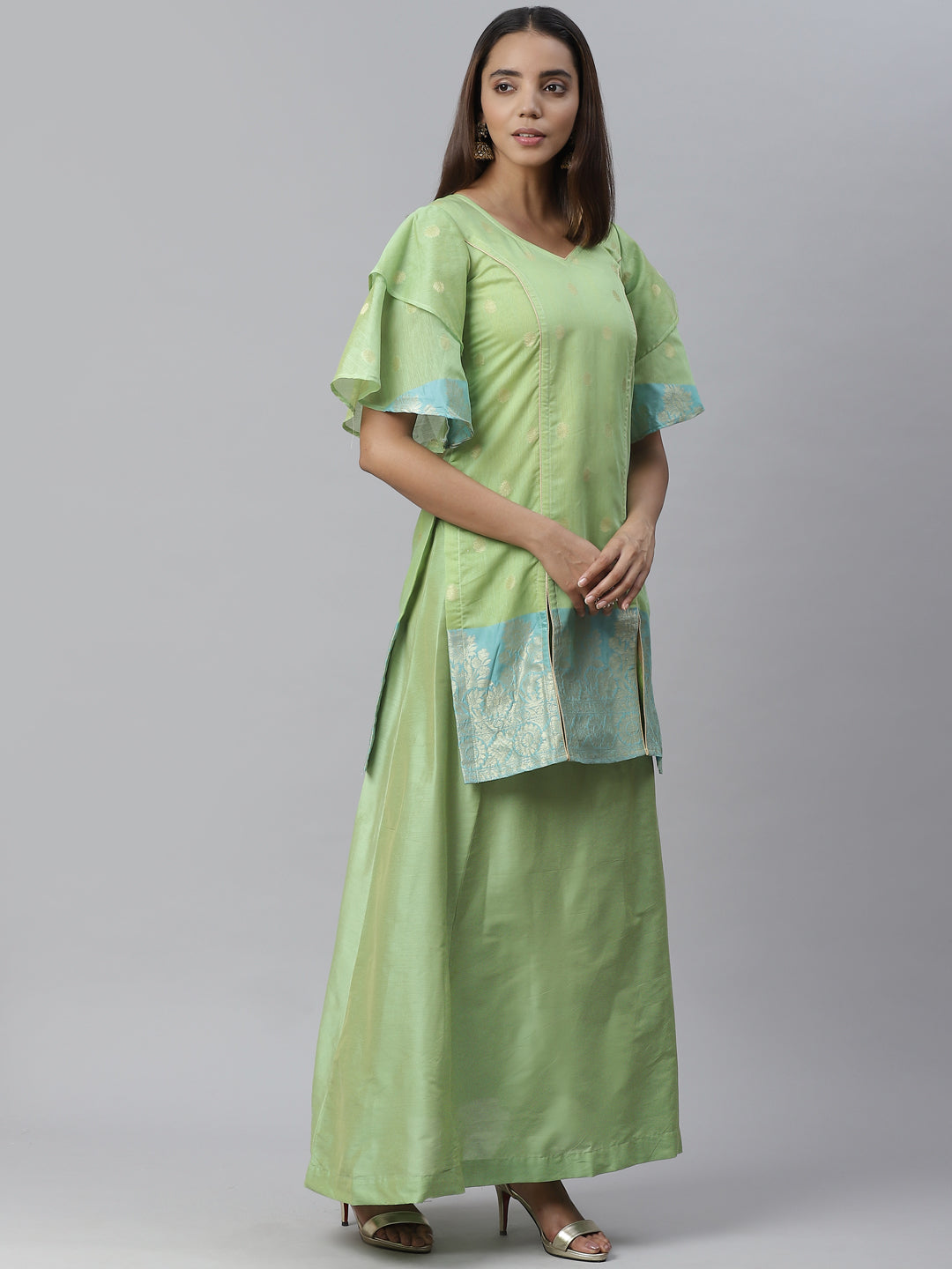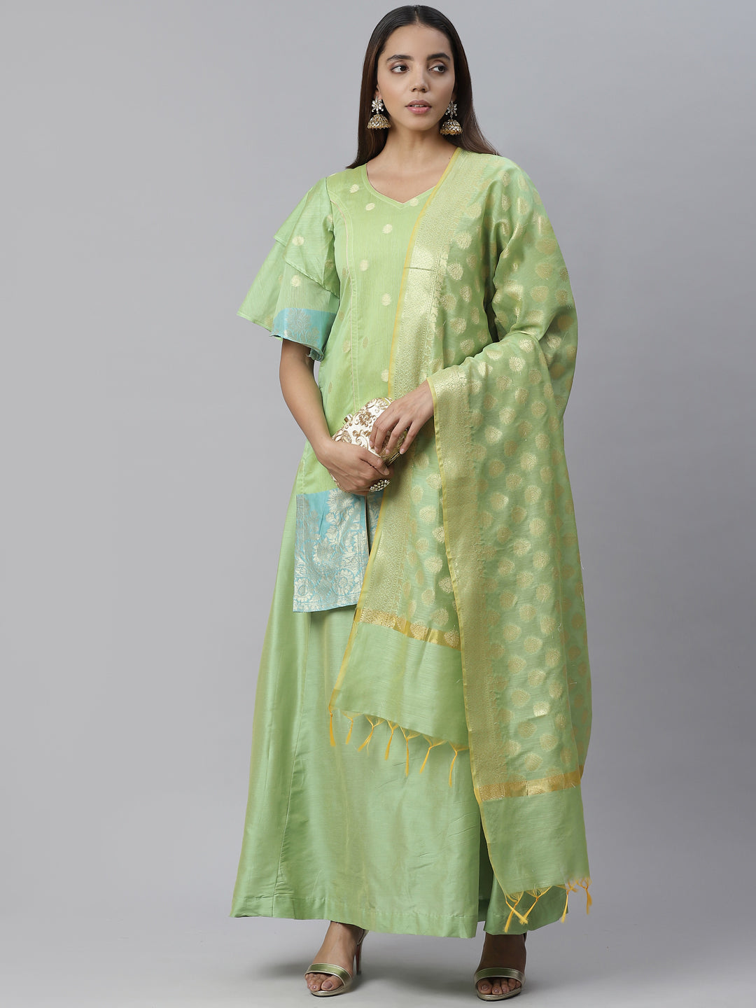 Banarasi Dress Material with Zari meenakari Floral weaving and Handloom dupatta