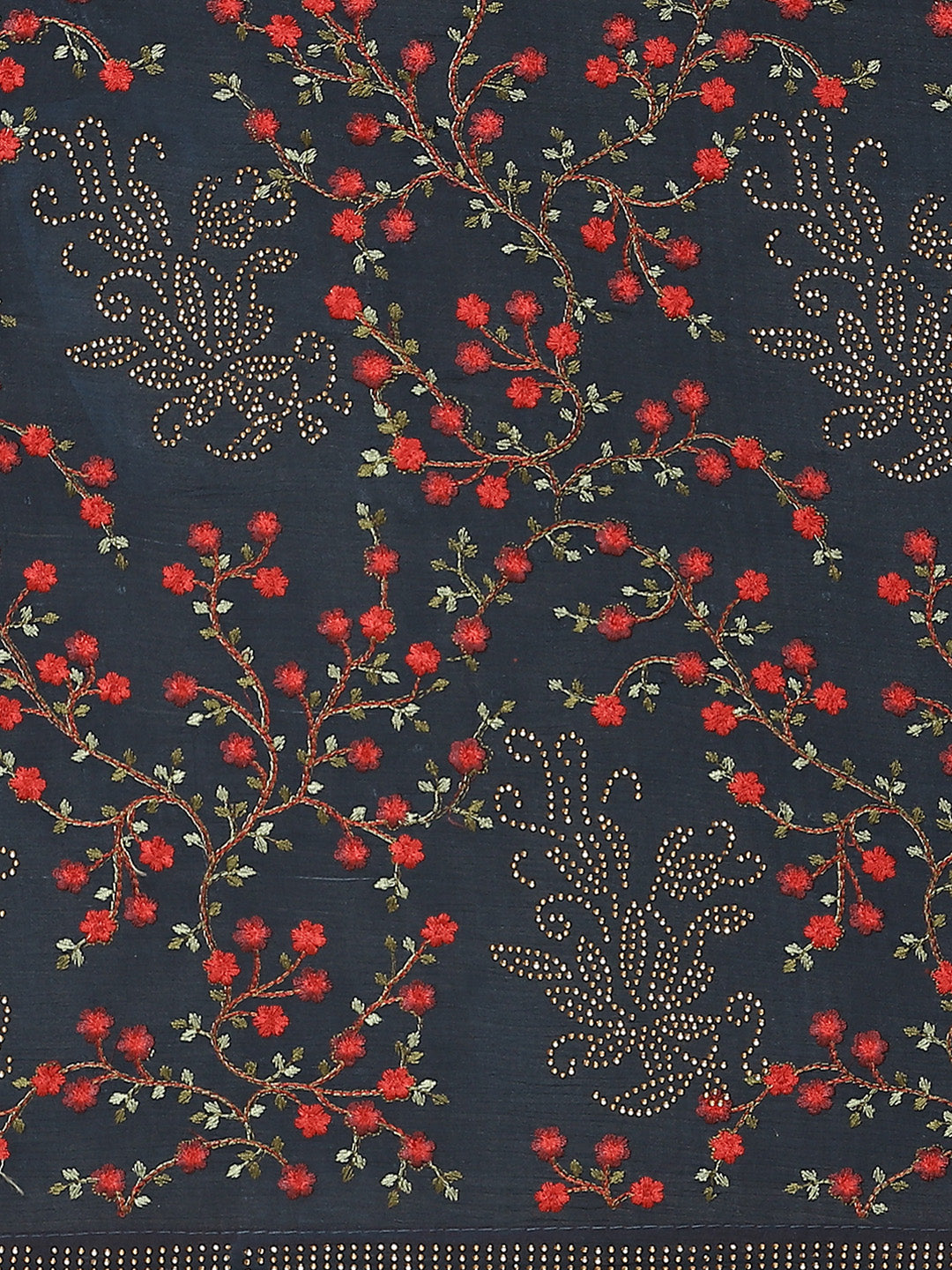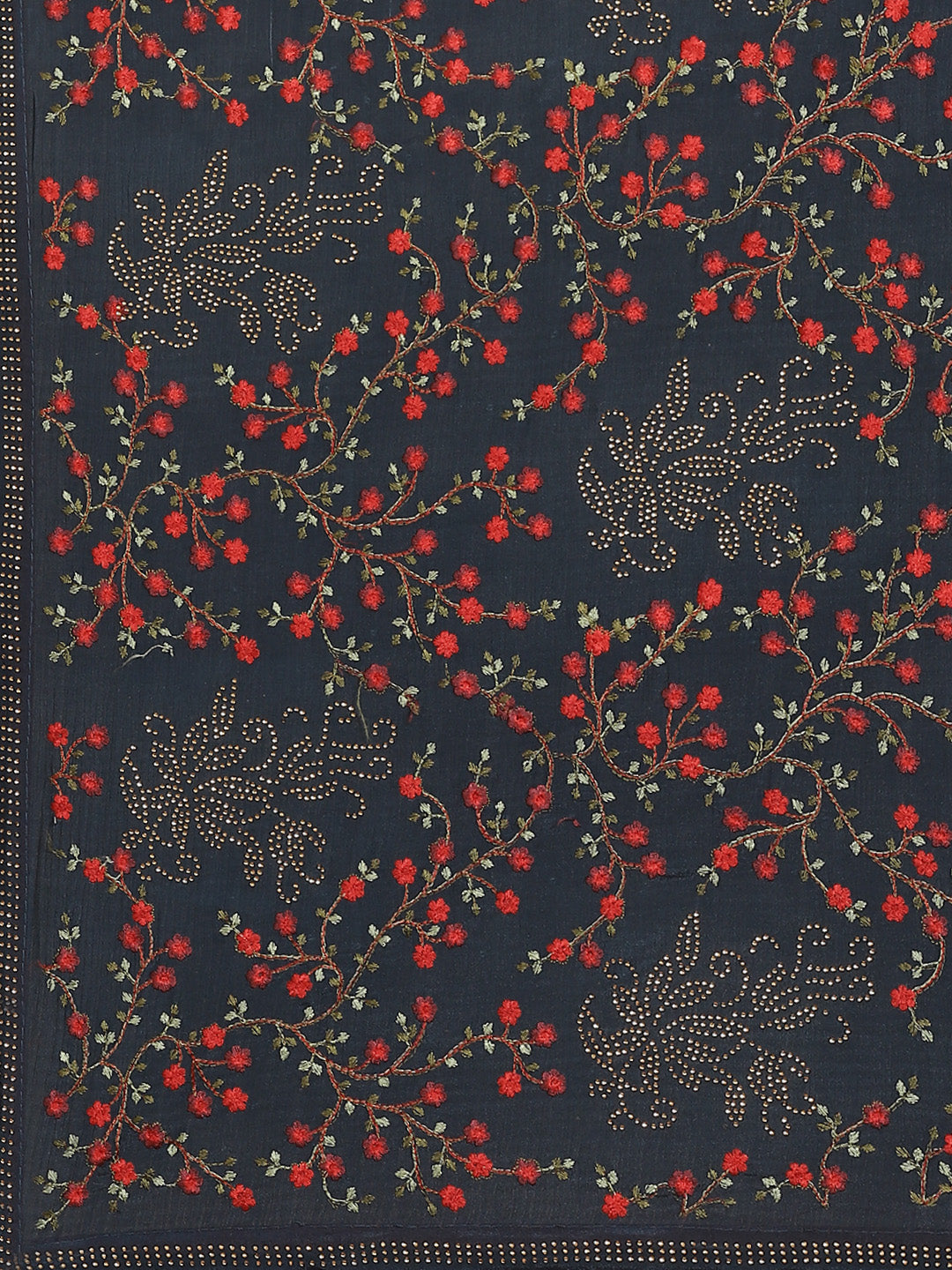 Indigo Blue Georgette Saree with multicolor Resham Embroidered Flowers & Crystal Embellishments
