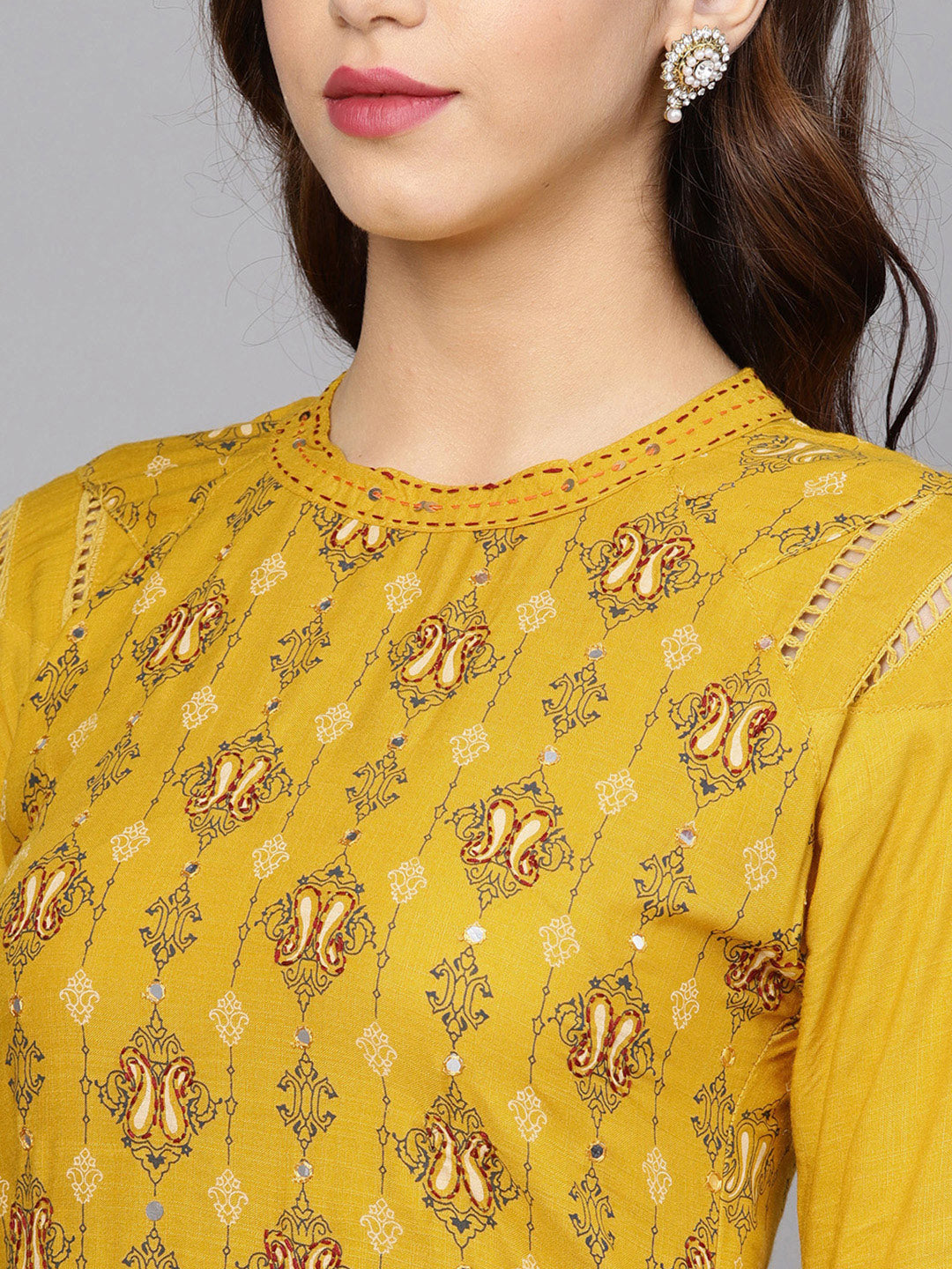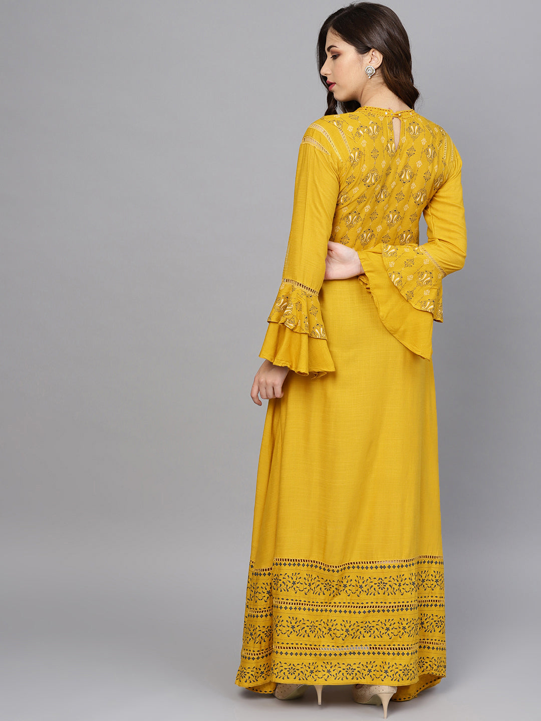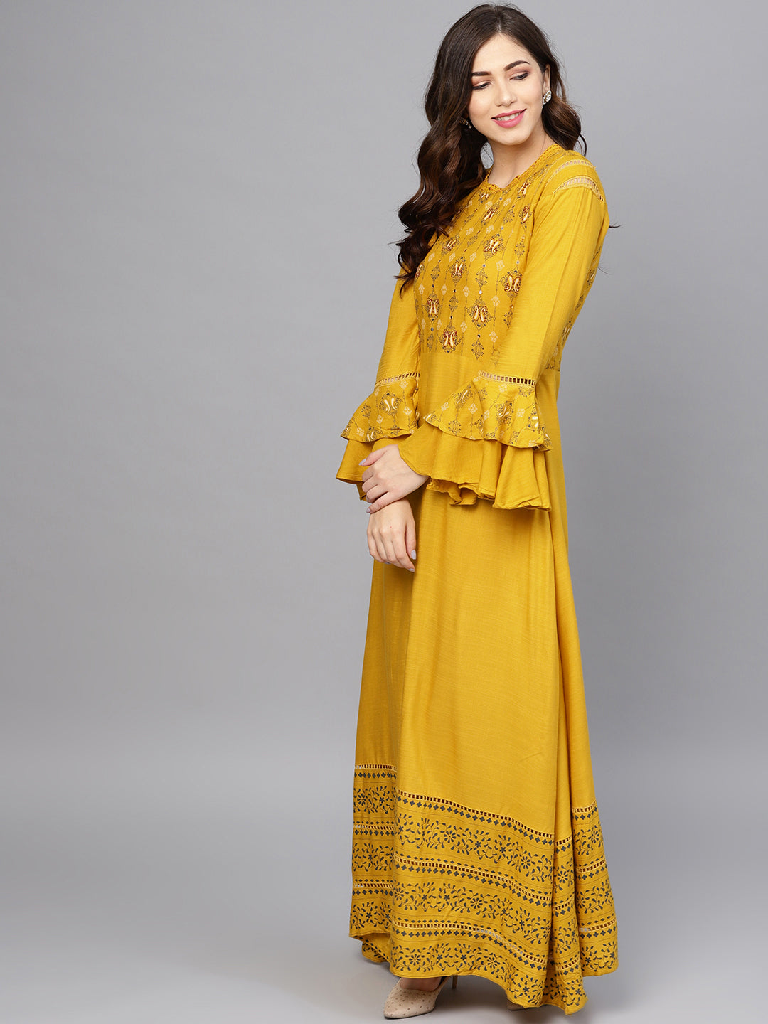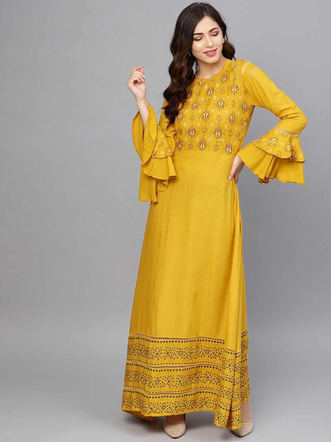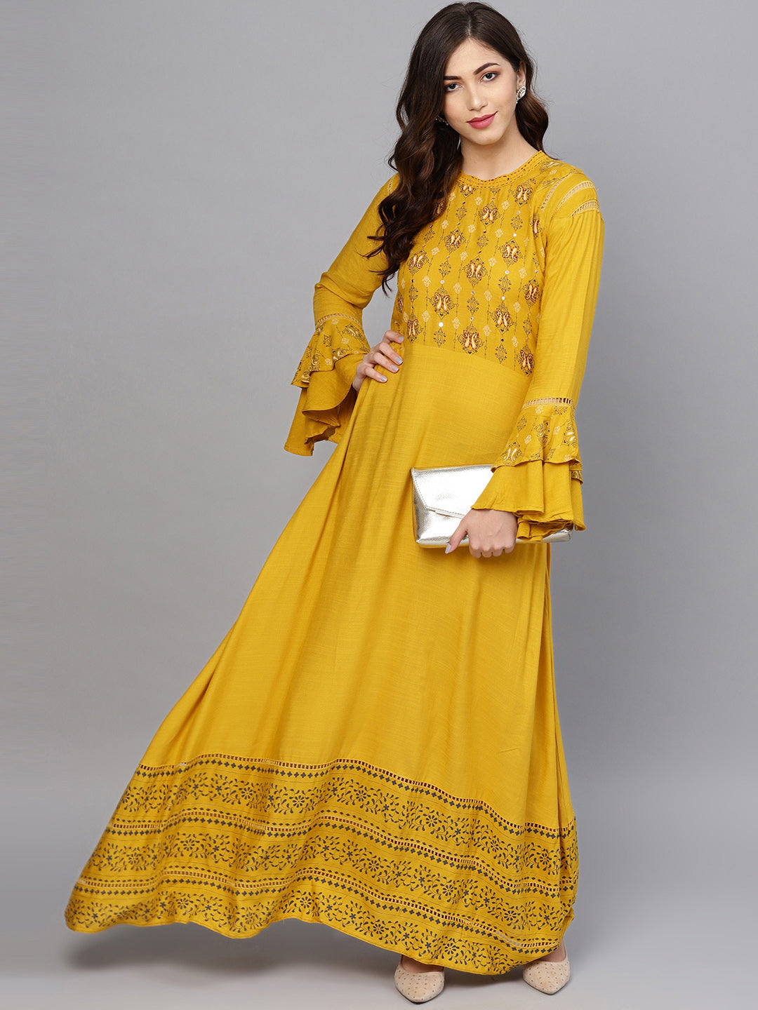 Anarkali Dress with Bell sleeves and Mirror embellishments