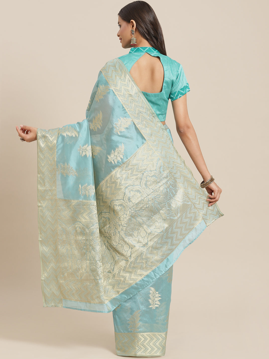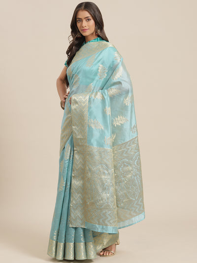 Turquoise Ethnic Motifs Chanderi Brocade Saree with Woven Border