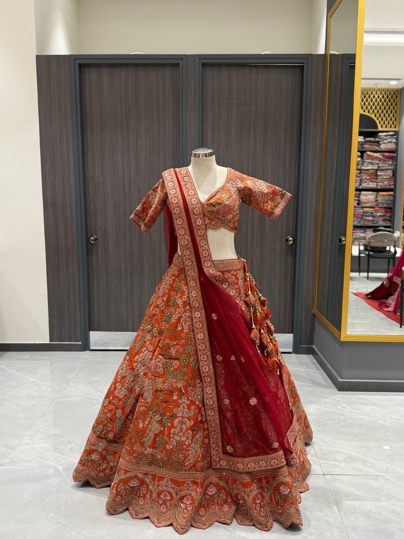 Vibrant Orange Silk Lehenga