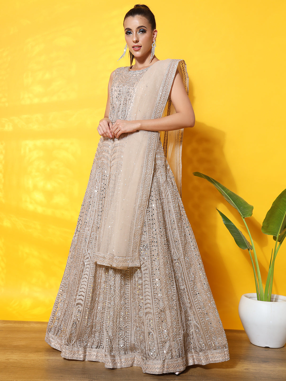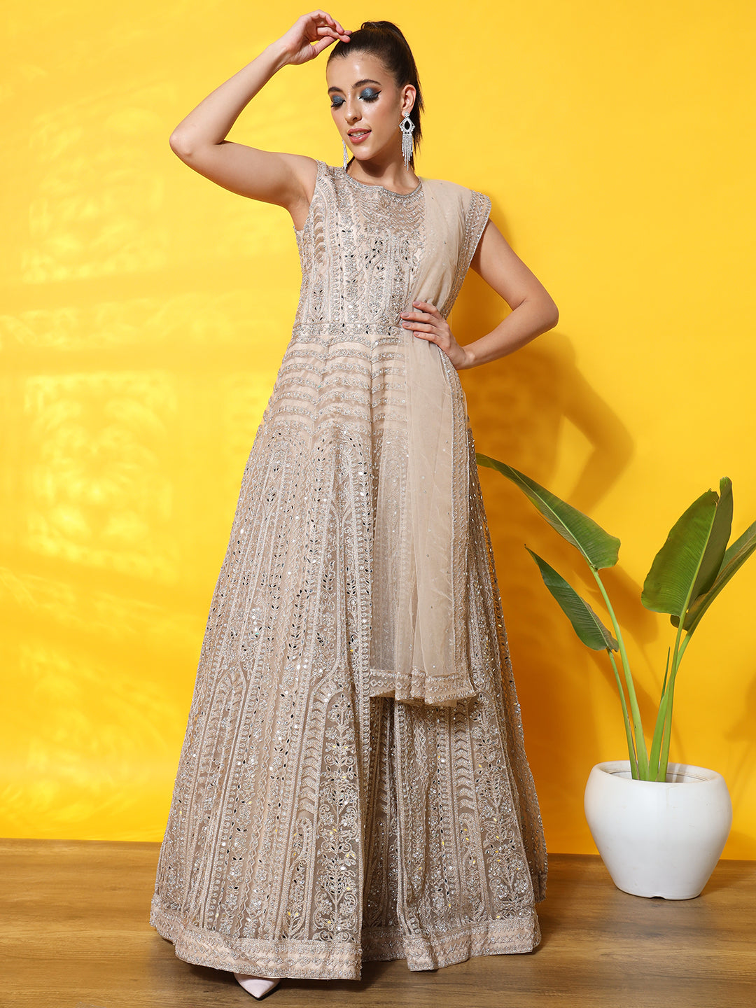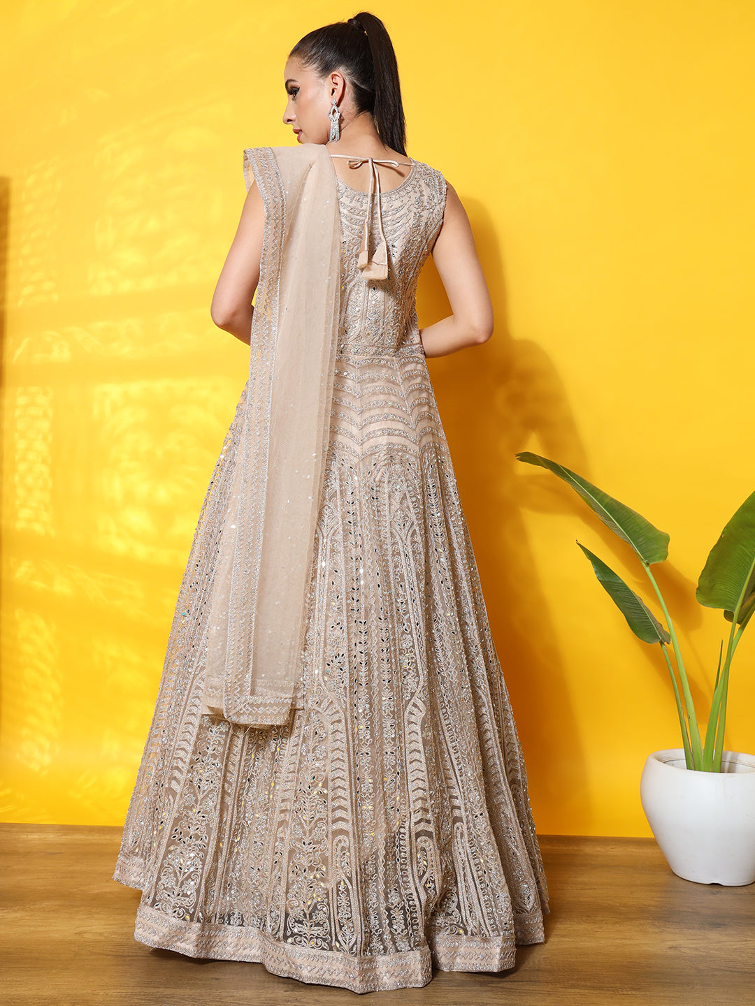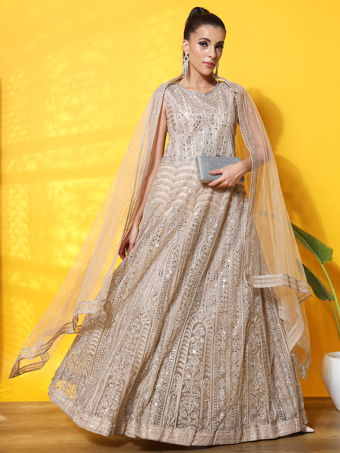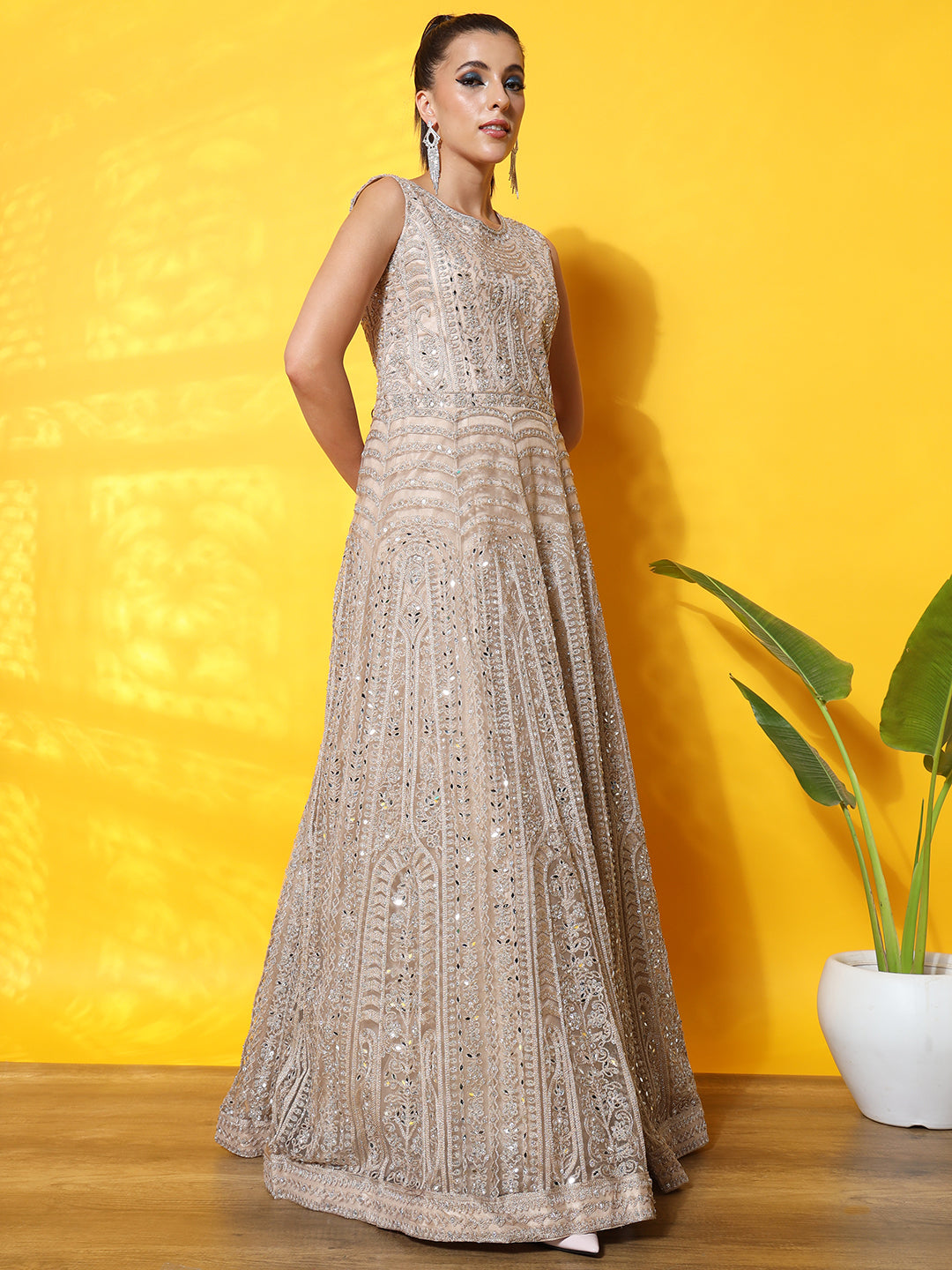 Resham Dori Embroidered Anarkali Cocktail Gown with Embellishments