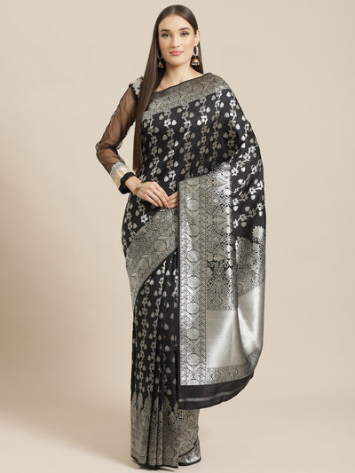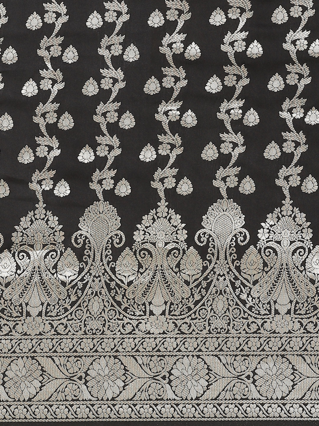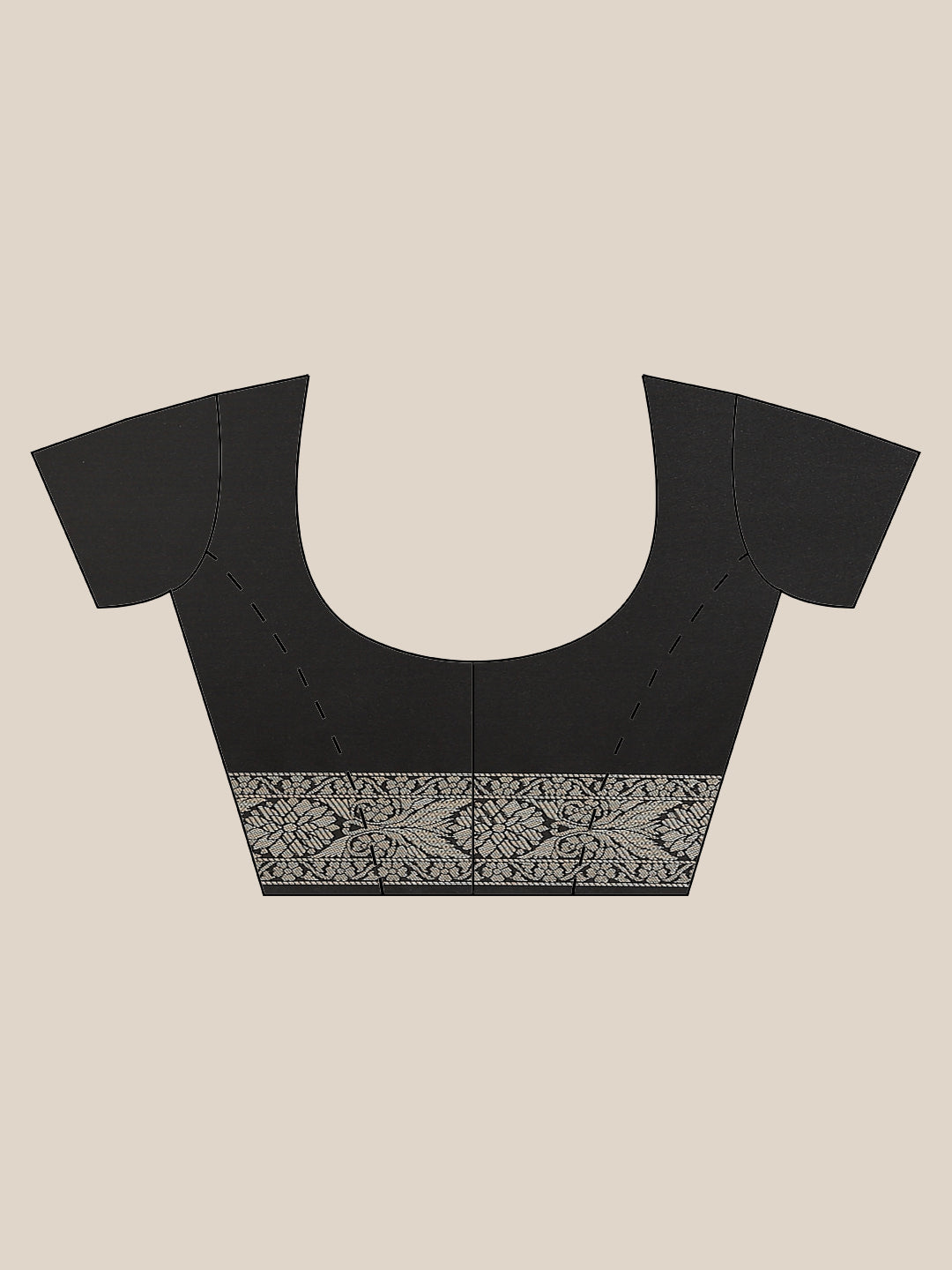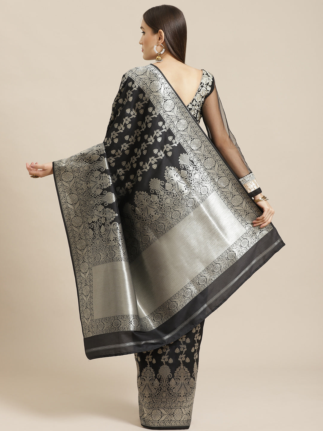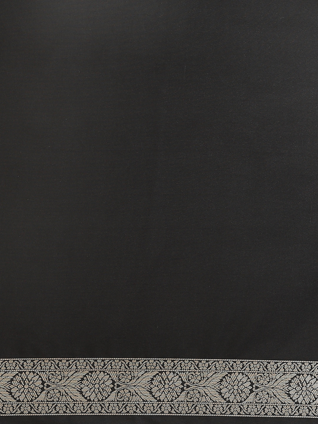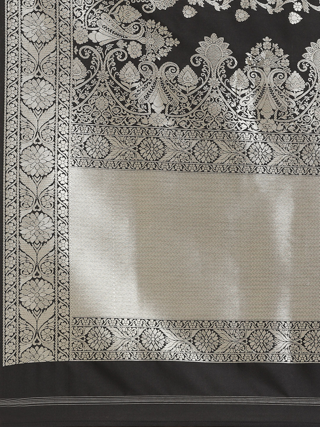 Black Banarasi Handloom Saree with Paisley Weaving & Metalic Silver Zari Border