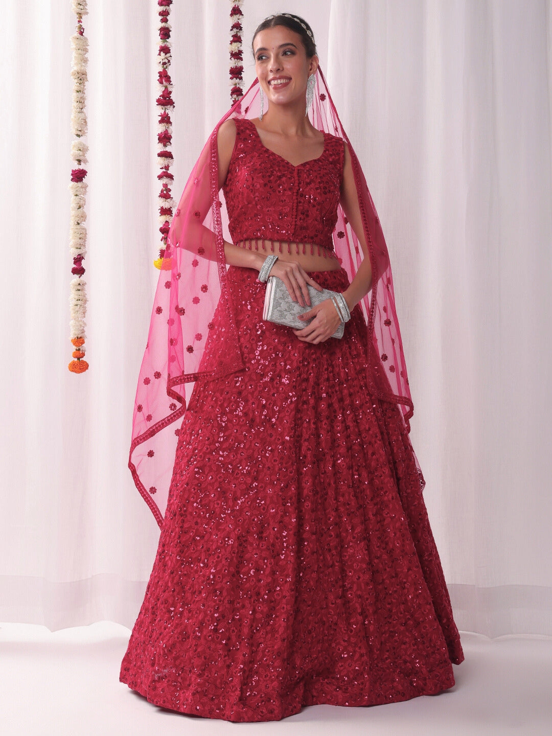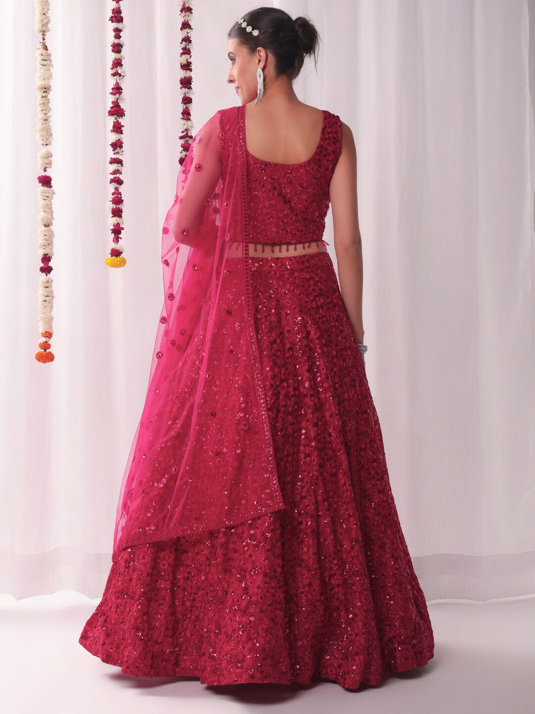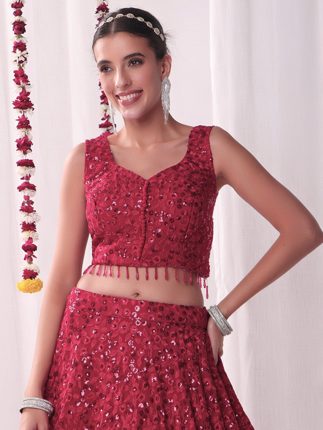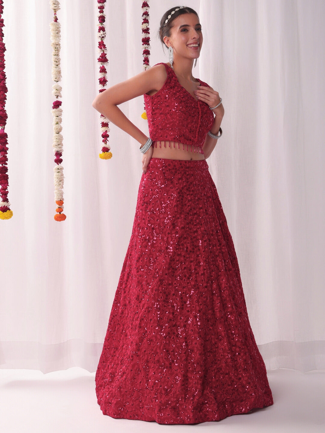 All over Sequin Embroidery Lehenga Set with Tassled Choli & Embellished Dupatta