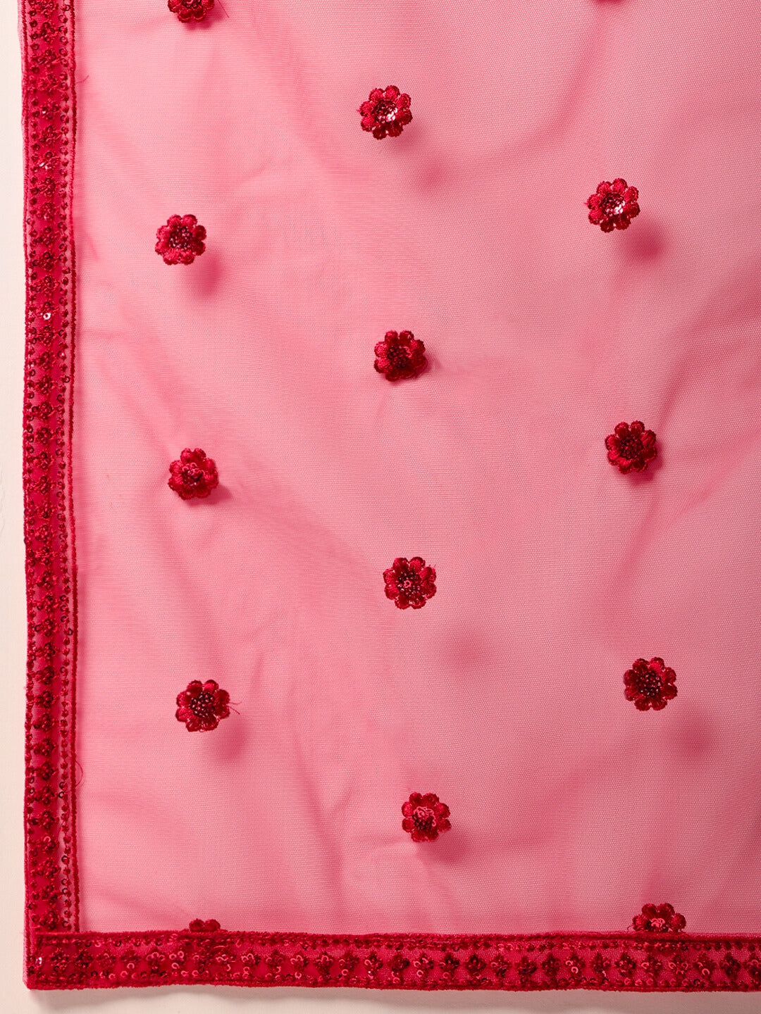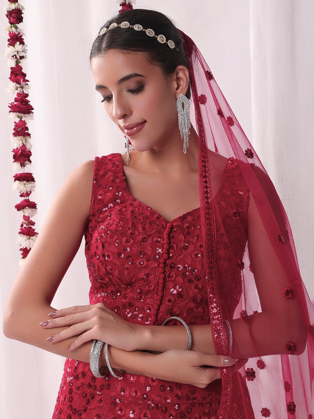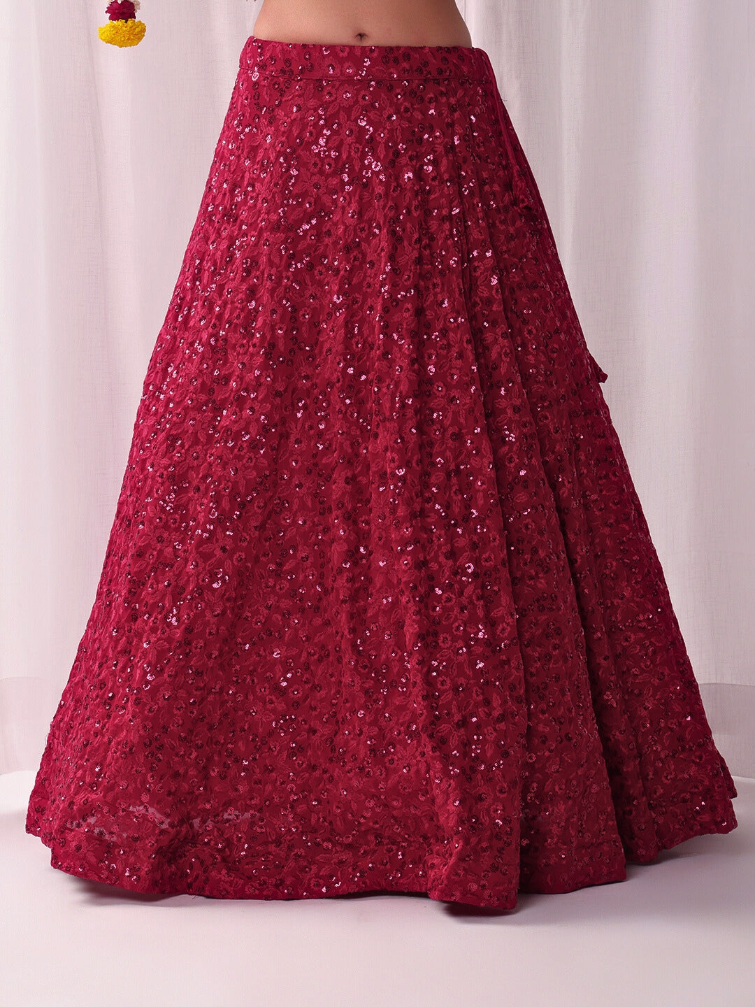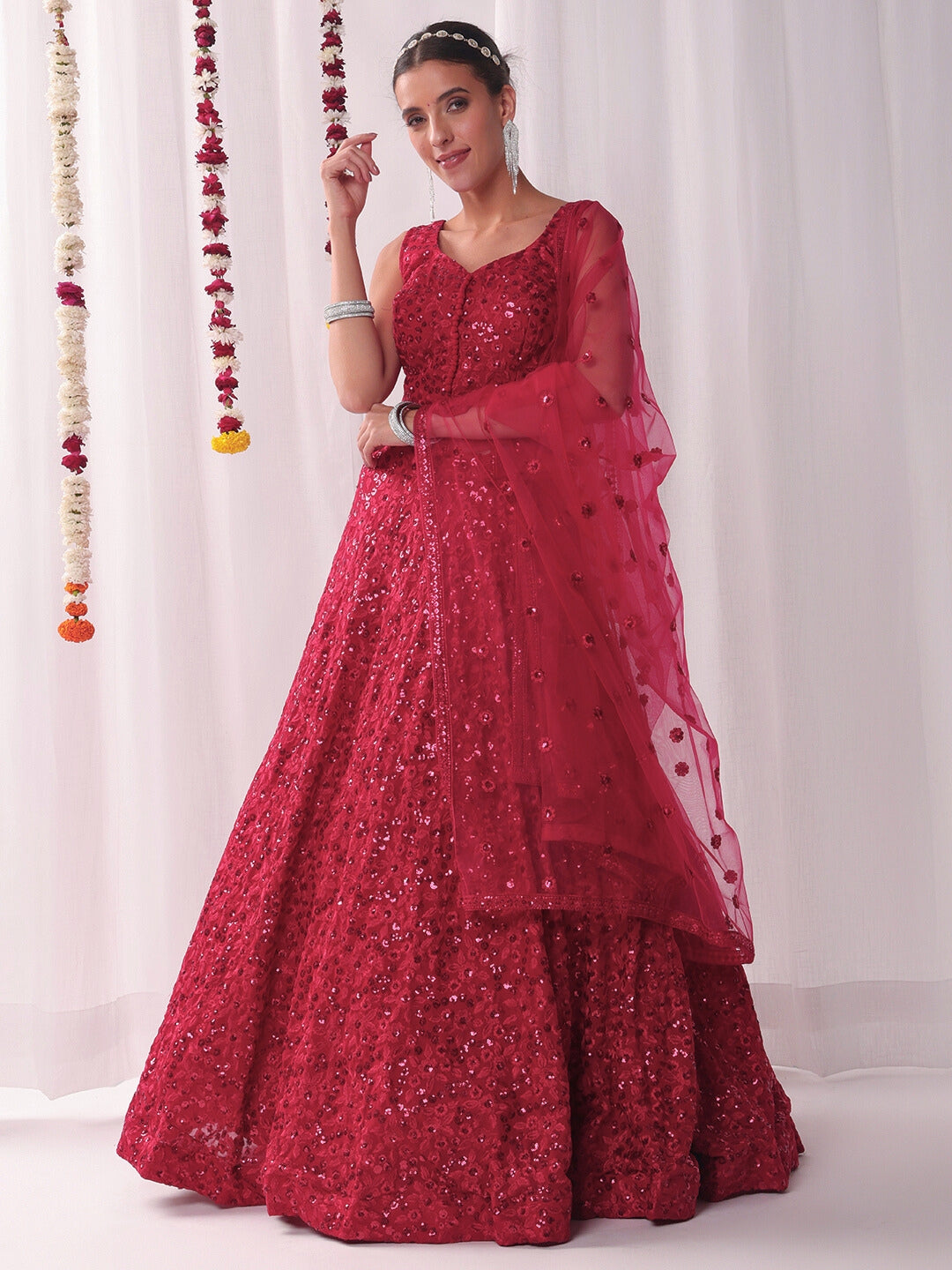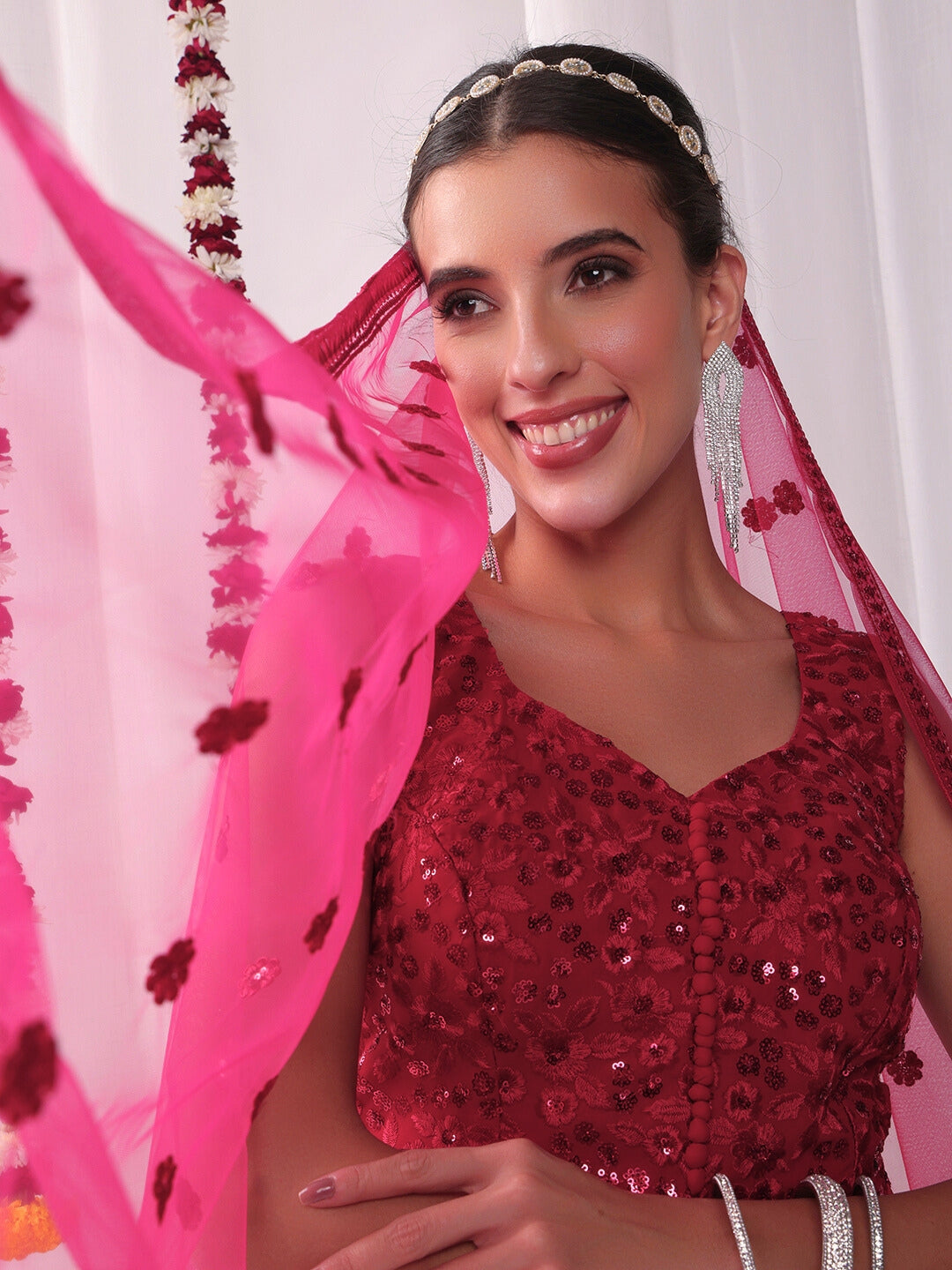 All over Sequin Embroidery Lehenga Set with Tassled Choli & Embellished Dupatta