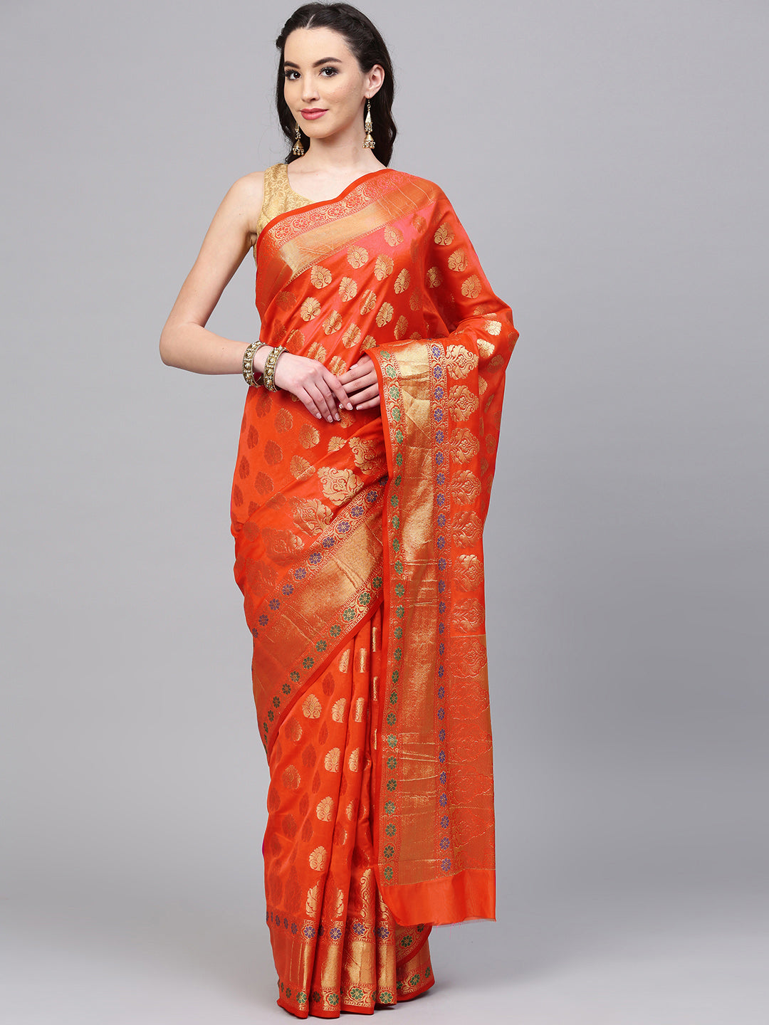 Chanderi Silk Banarasi Saree with Handloom Floral motifs