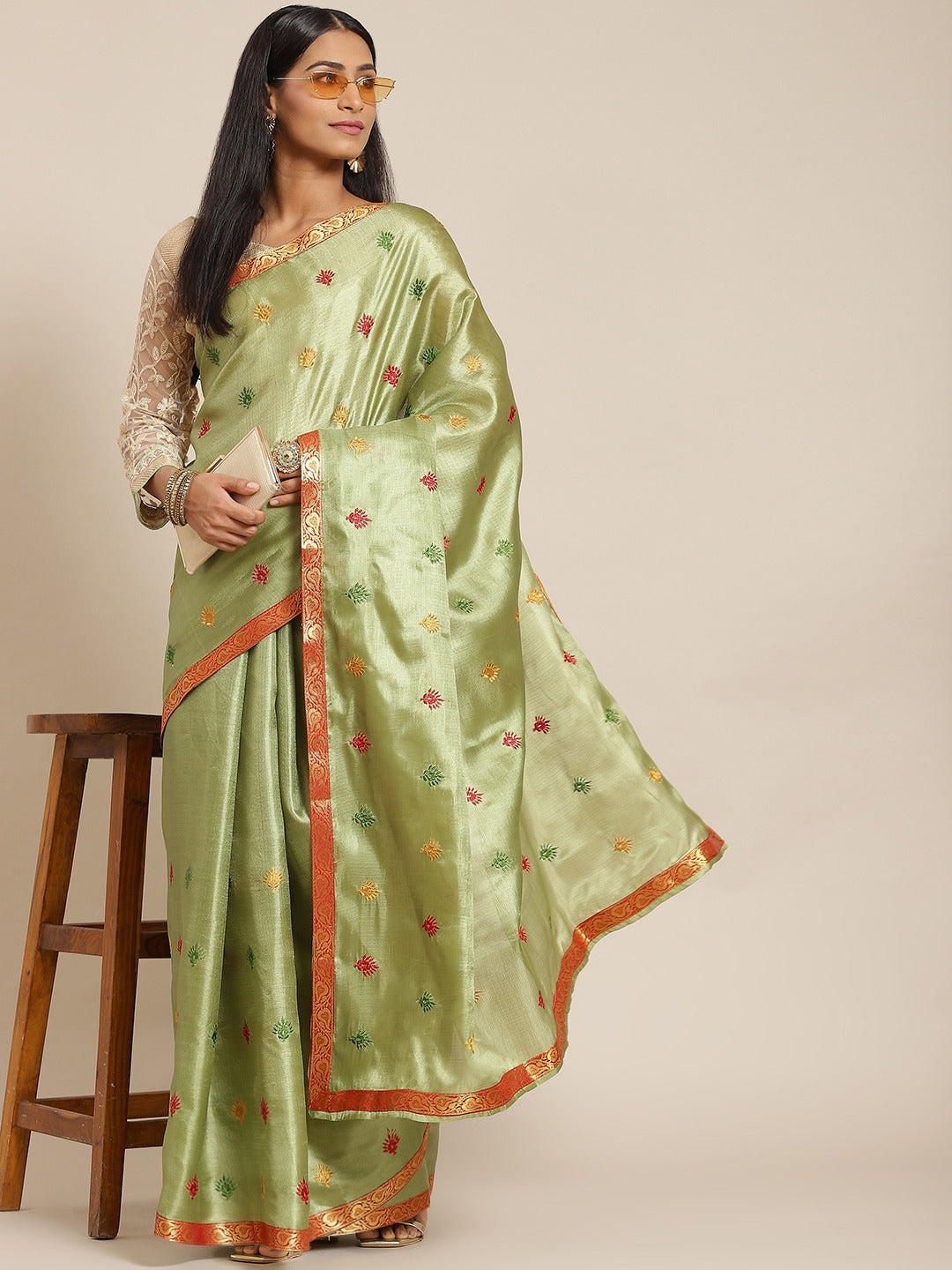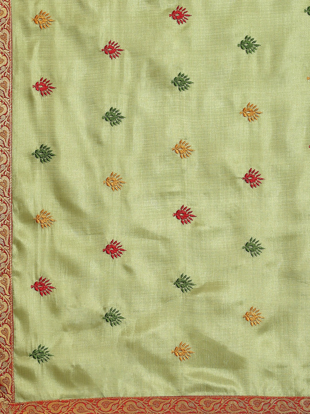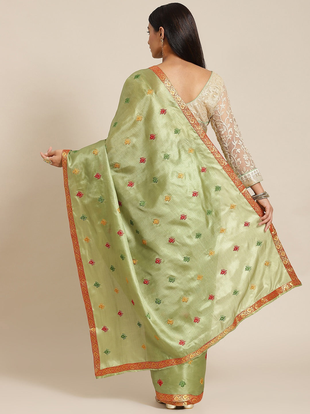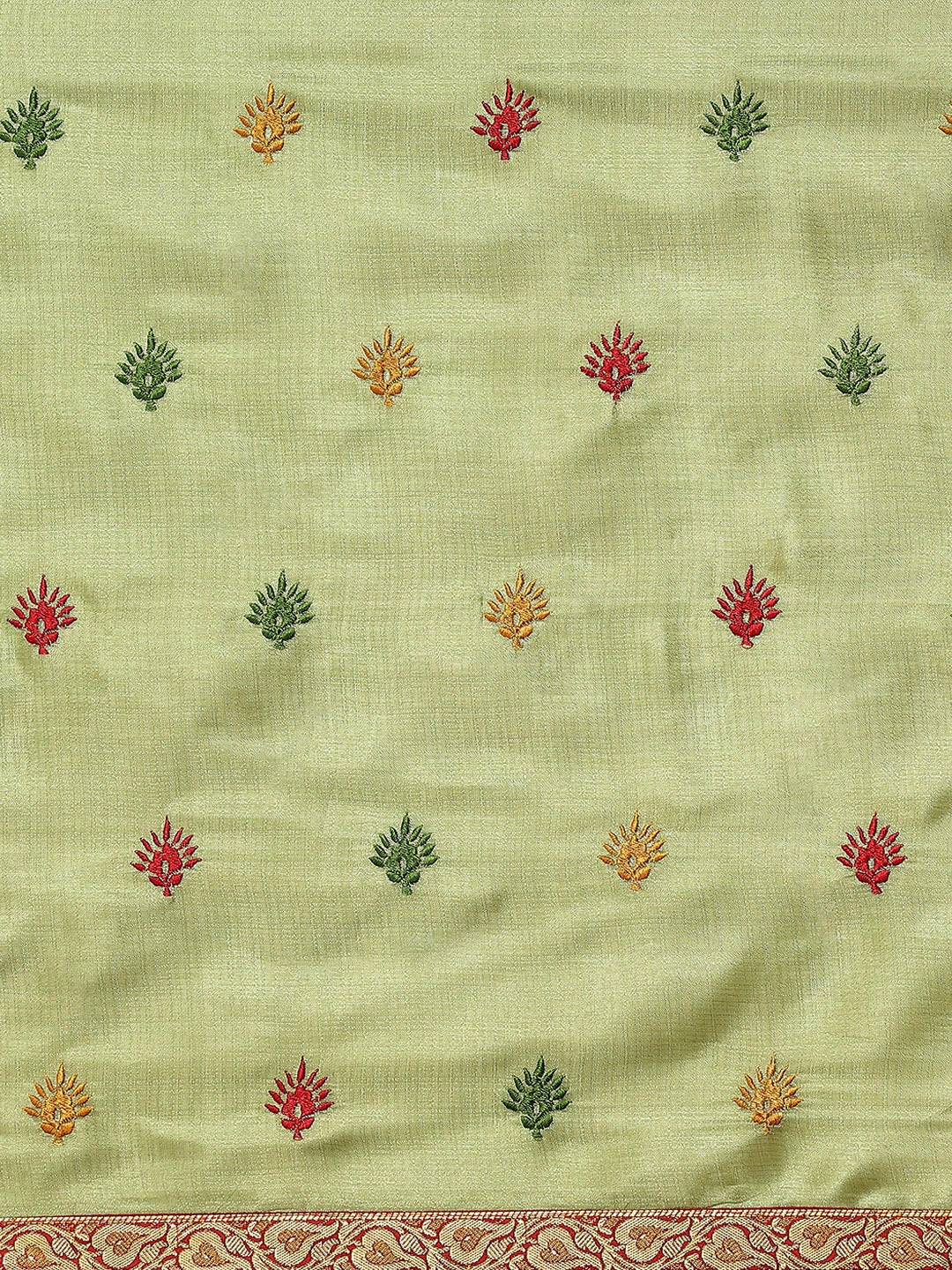 Green Tussar Banarasi Silk Saree with Embroidery & Brocade Border