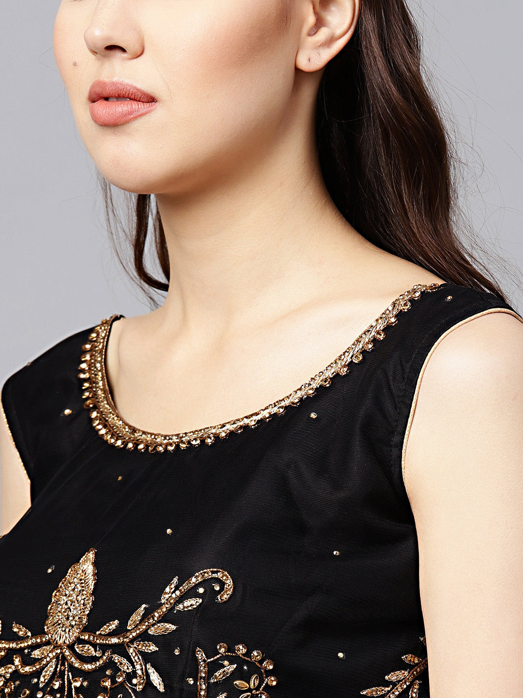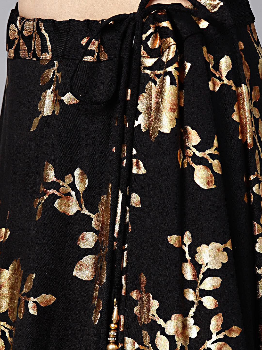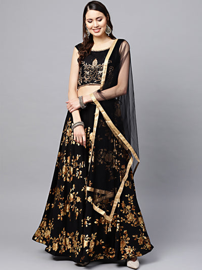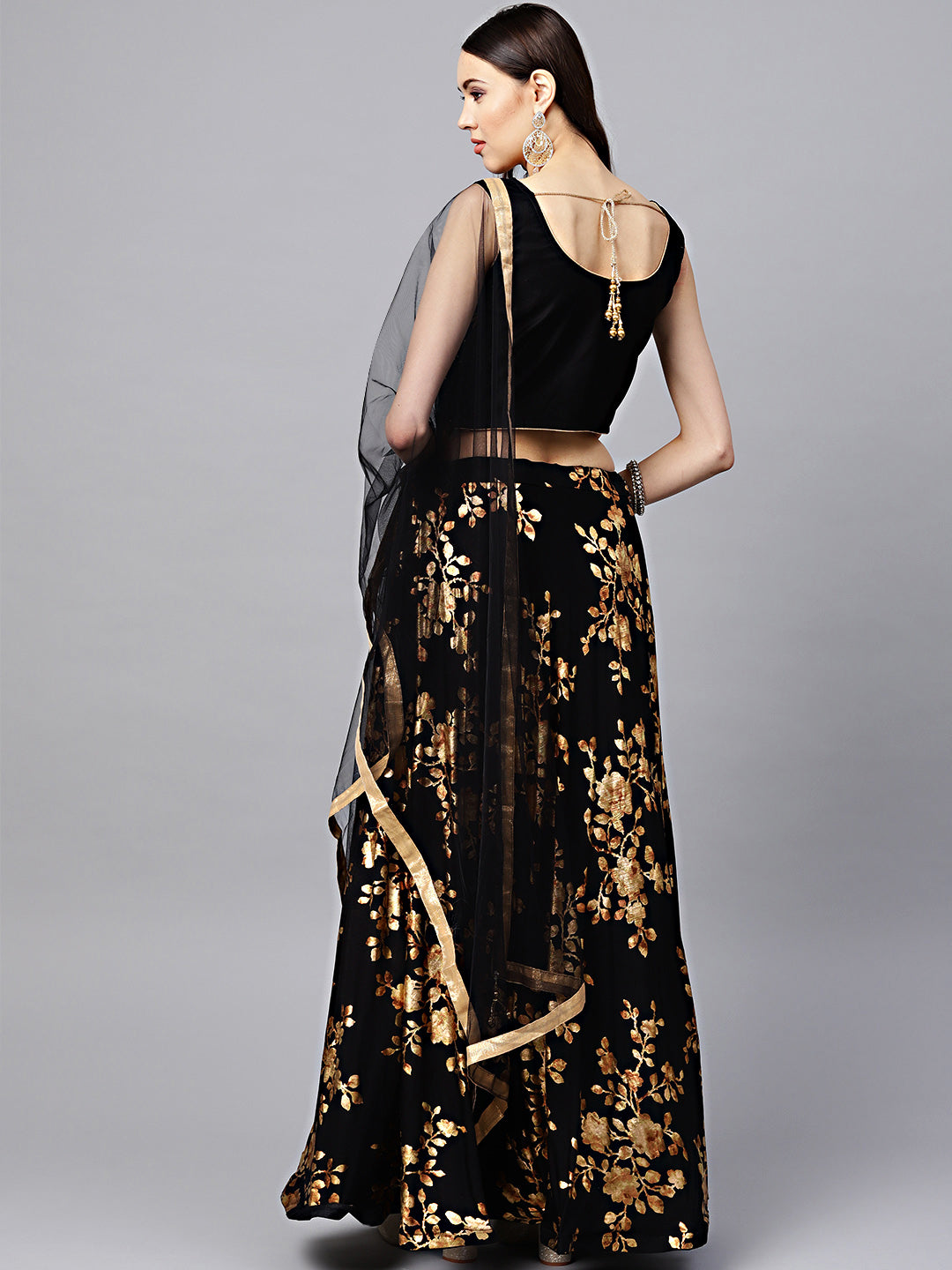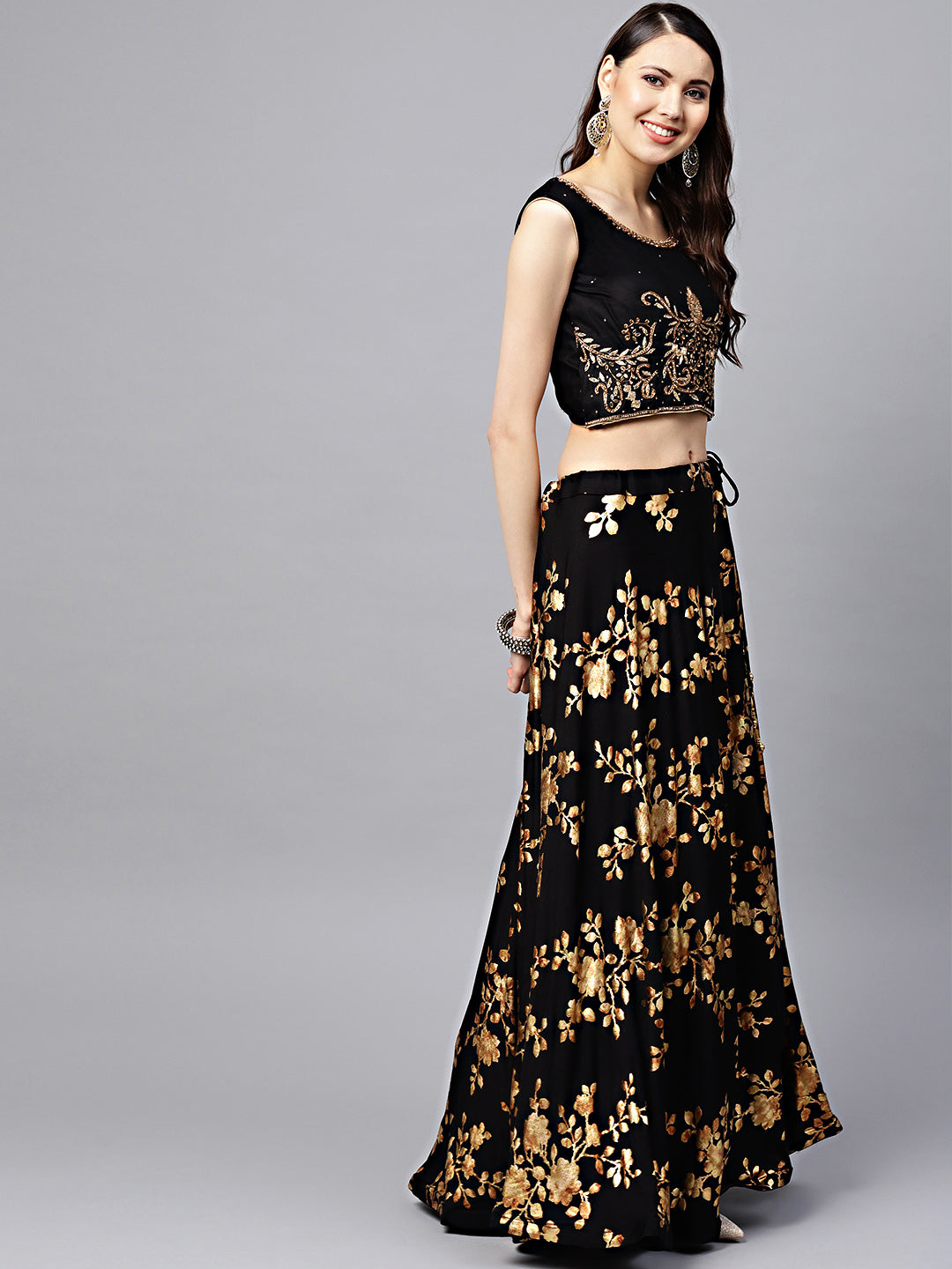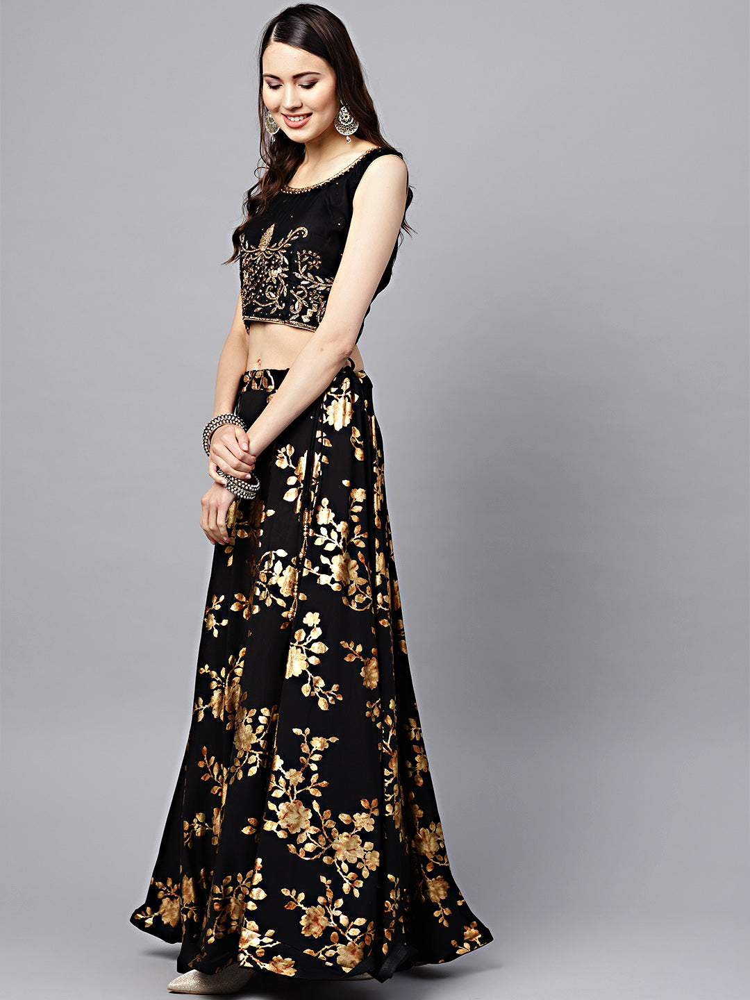 Gold Print Crop Top Lehenga Choli with Zircon Embroidery