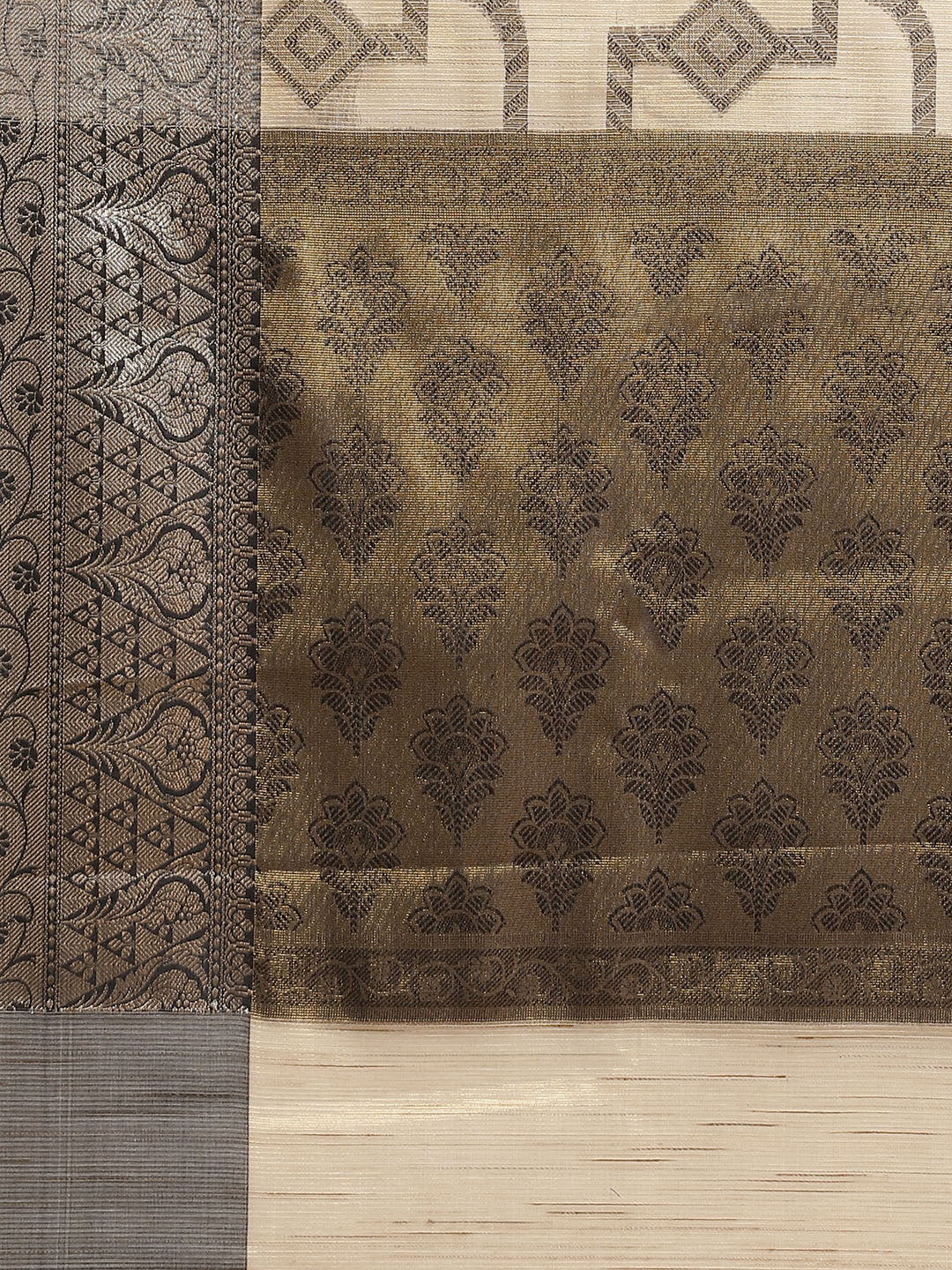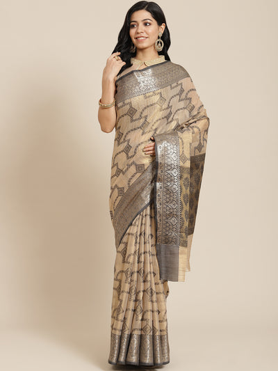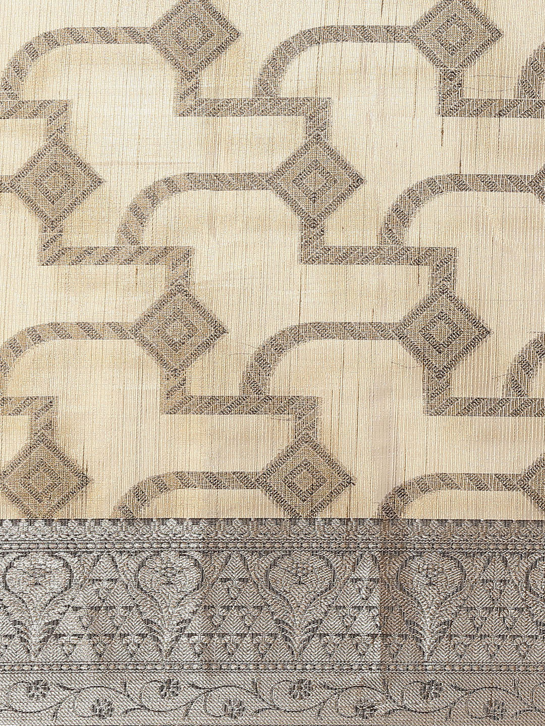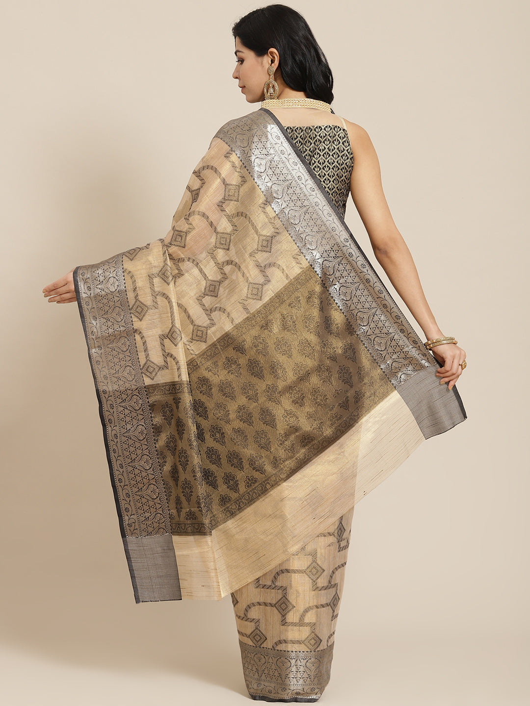 Grey Jute Silk Floral Geometrical Motifs Gold & Silver Banarasi Saree