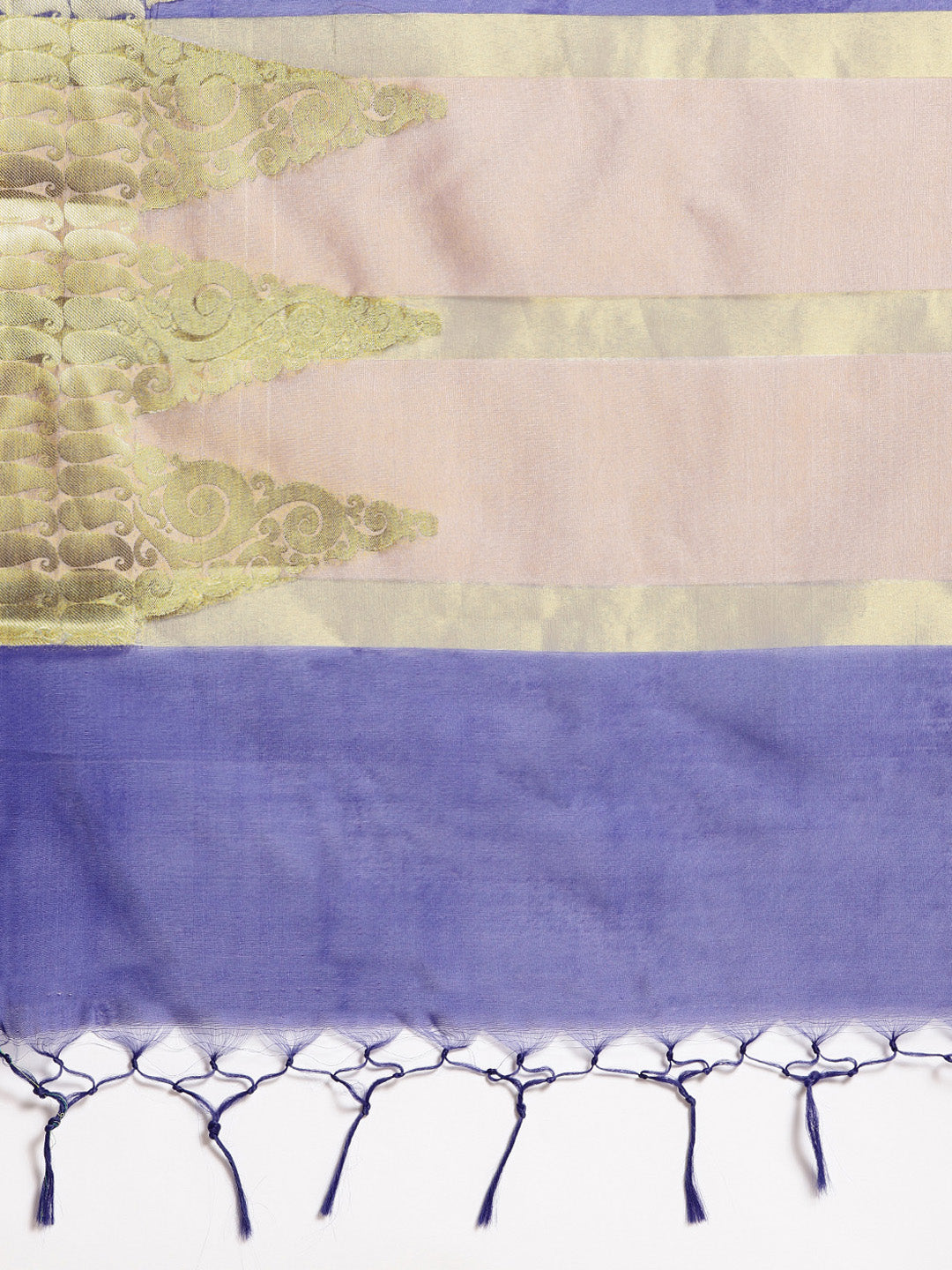 Banarasi Chanderi Silk Saree with Zari Temple Paisley Pattern