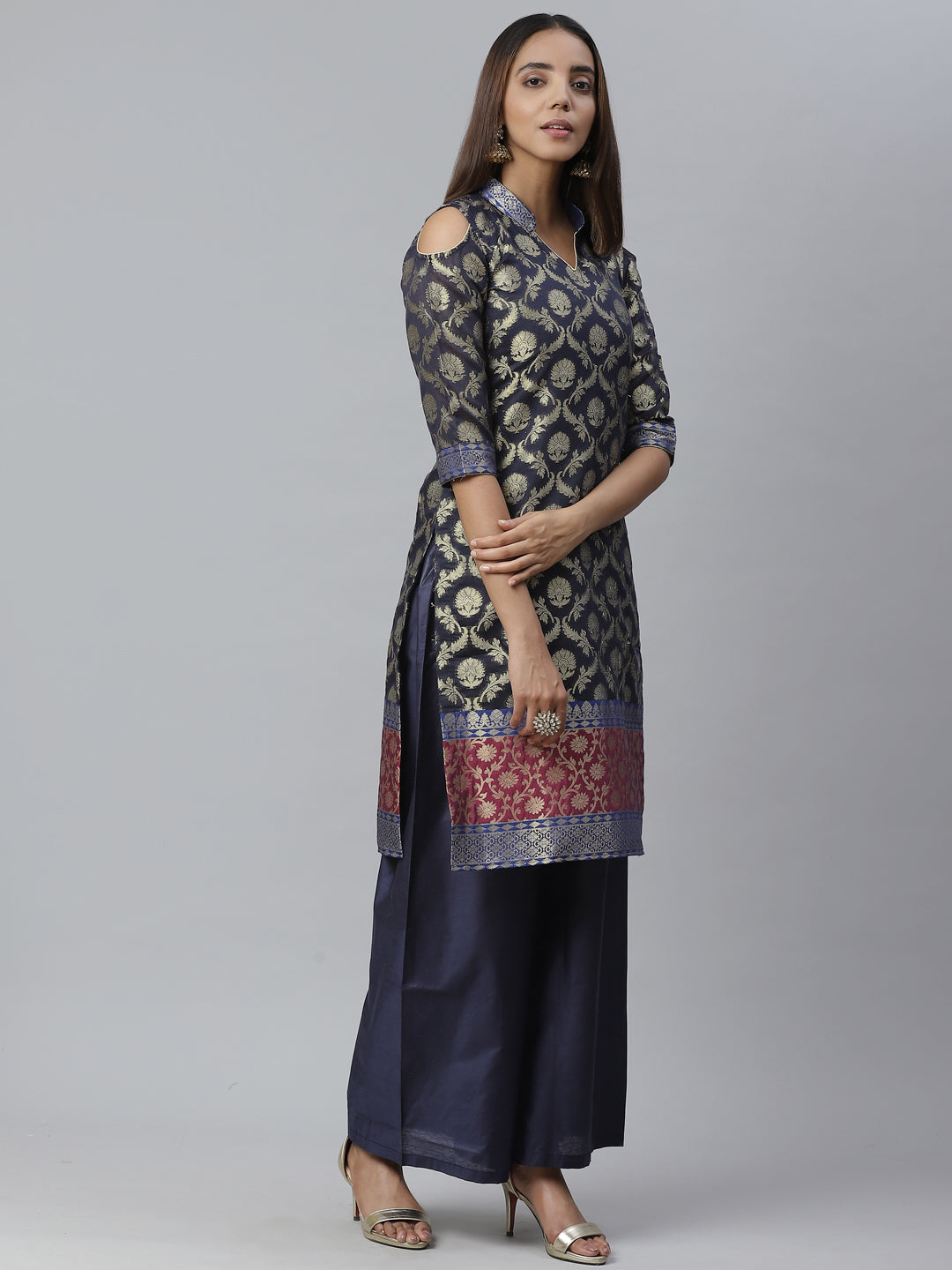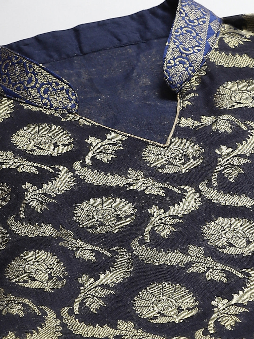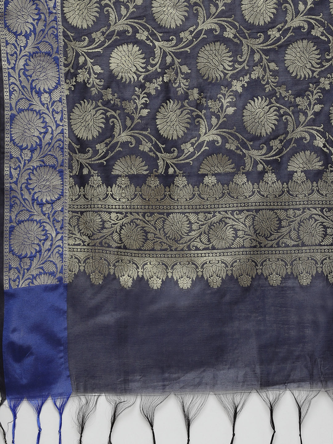 Handloom Chanderi Dress Material with Gold Floral Weave Pattern & Banarasi Duppatta