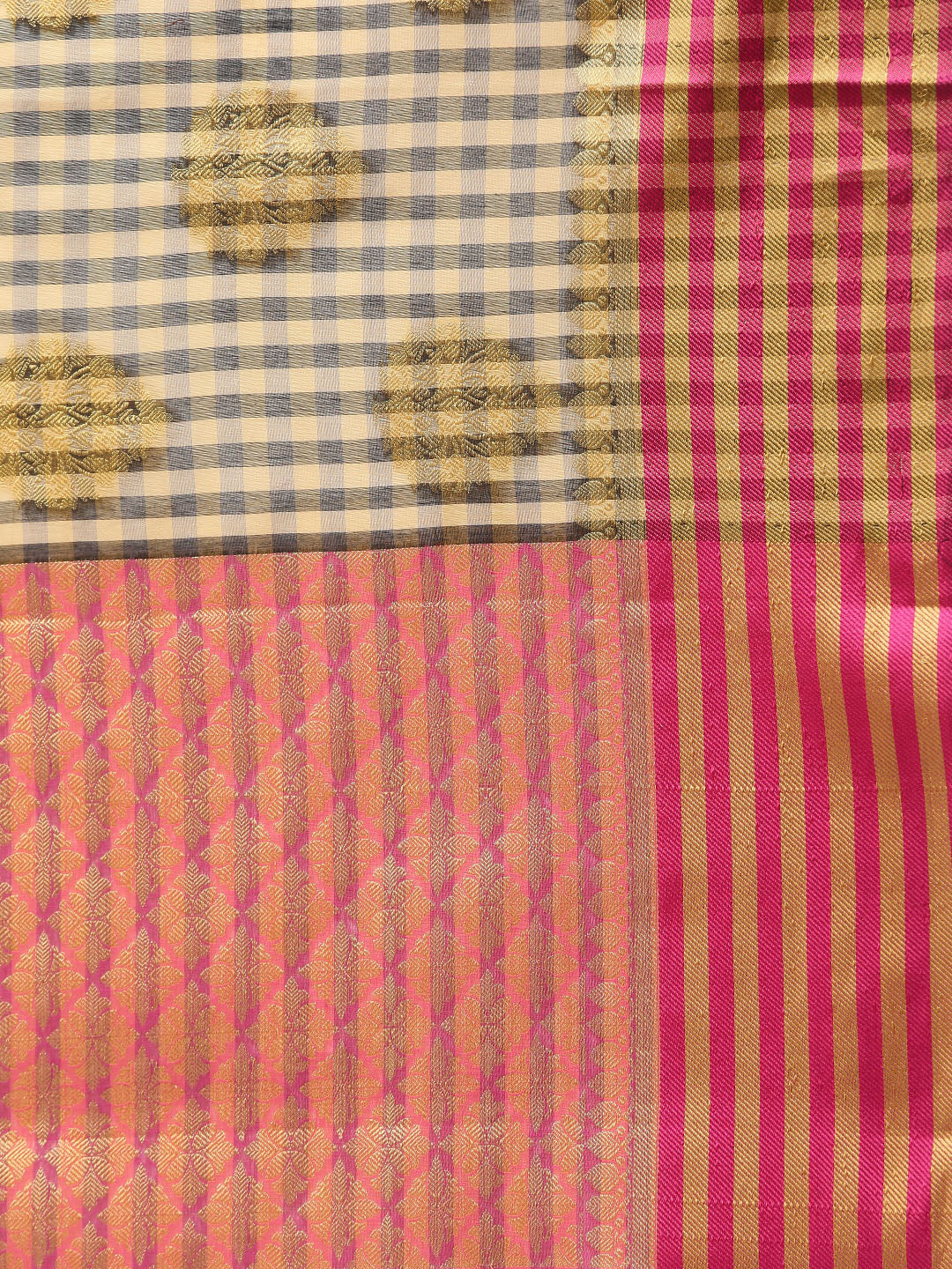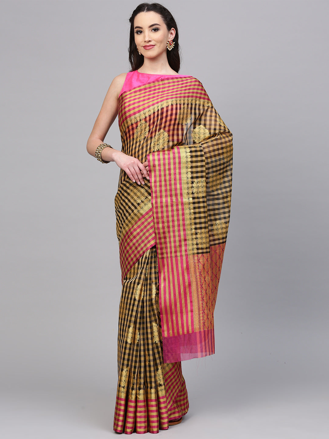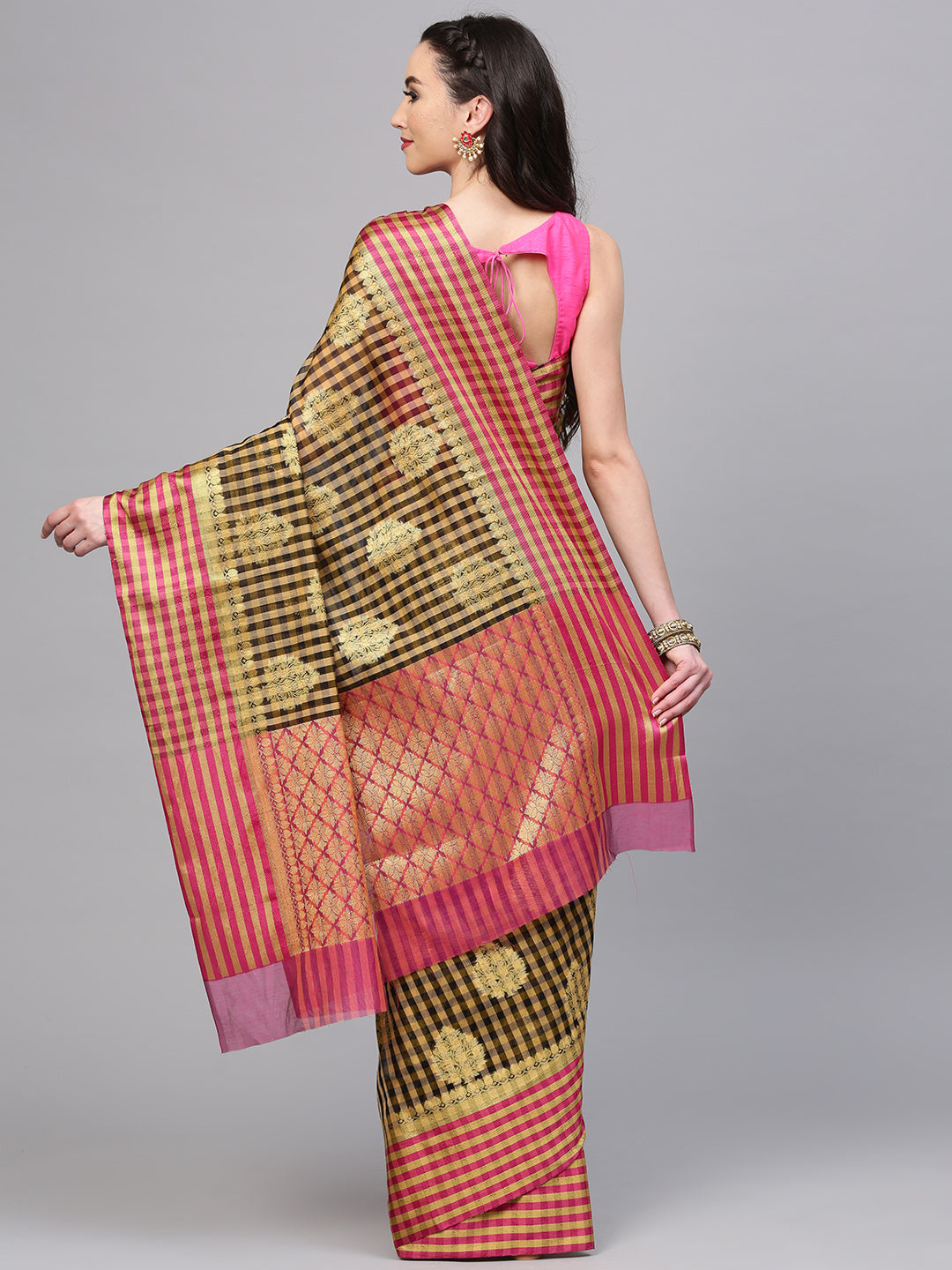 Checked Chanderi Silk Saree with Zari Handloom Motifs