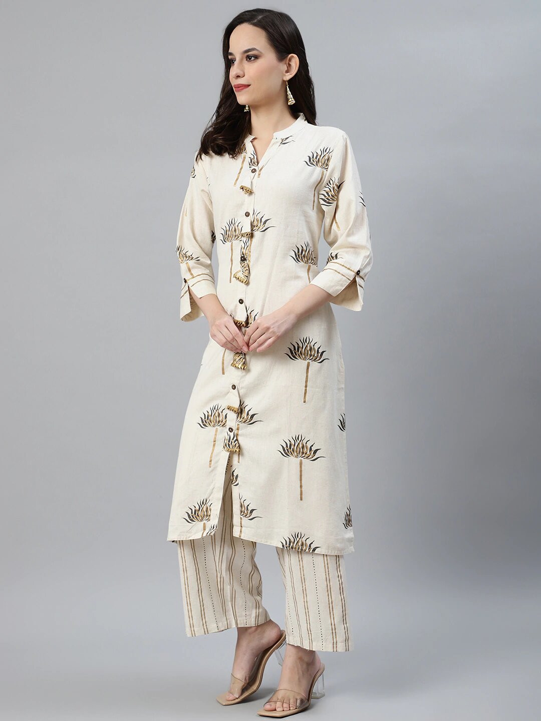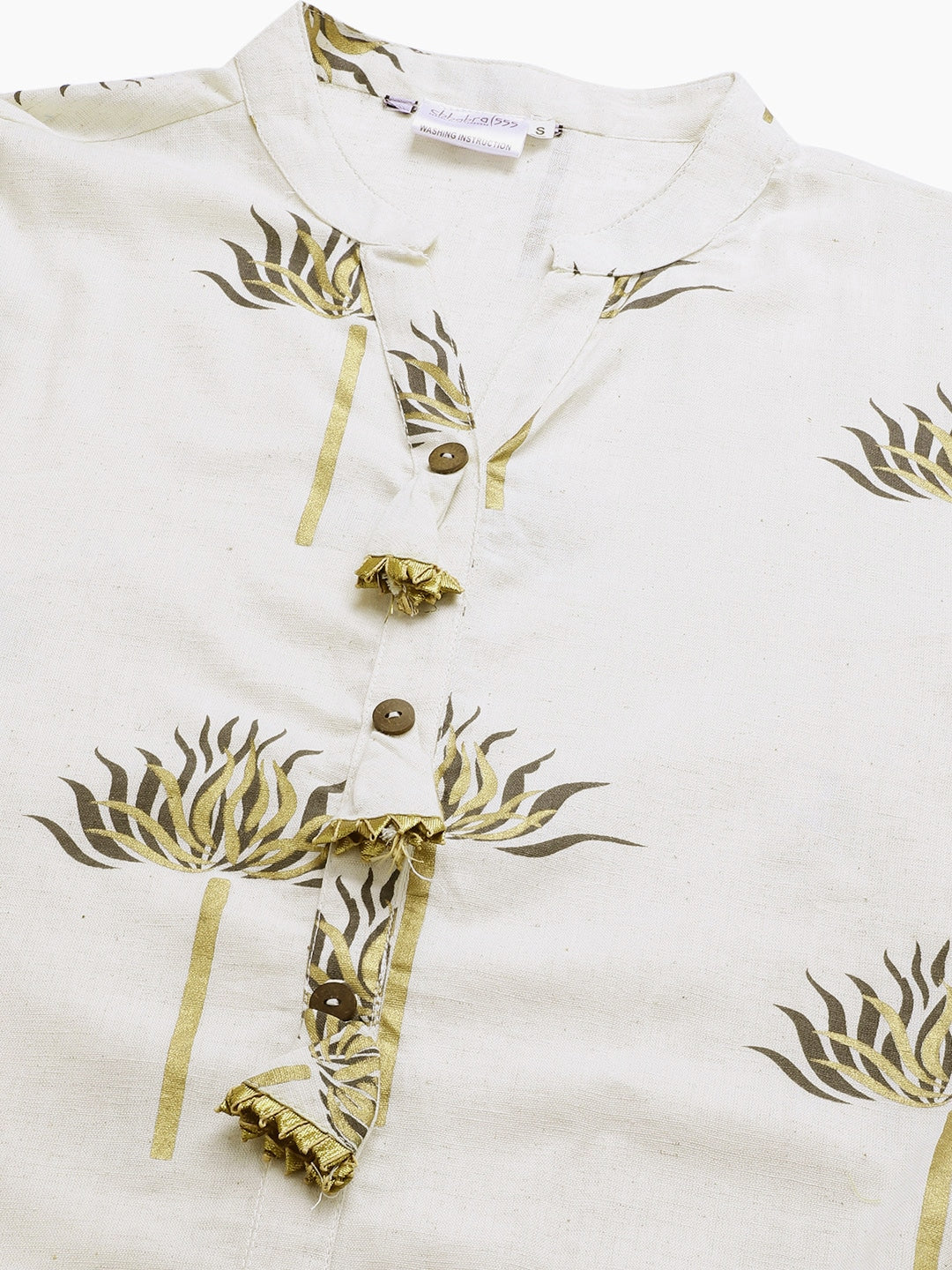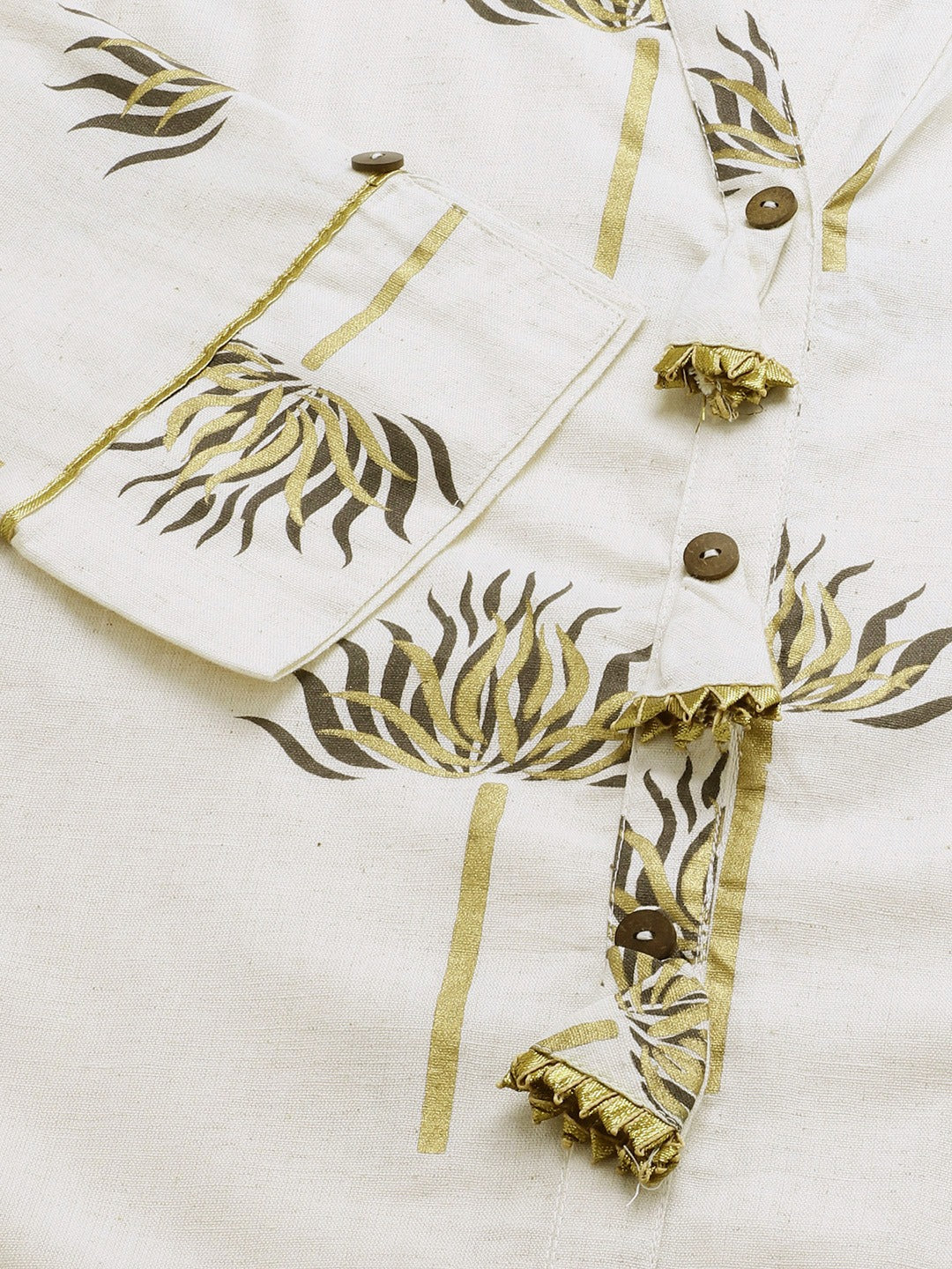 Made to Measure Fusion Kurta Set with Khadi Block Print & Gotta Patti Wooden Tassels