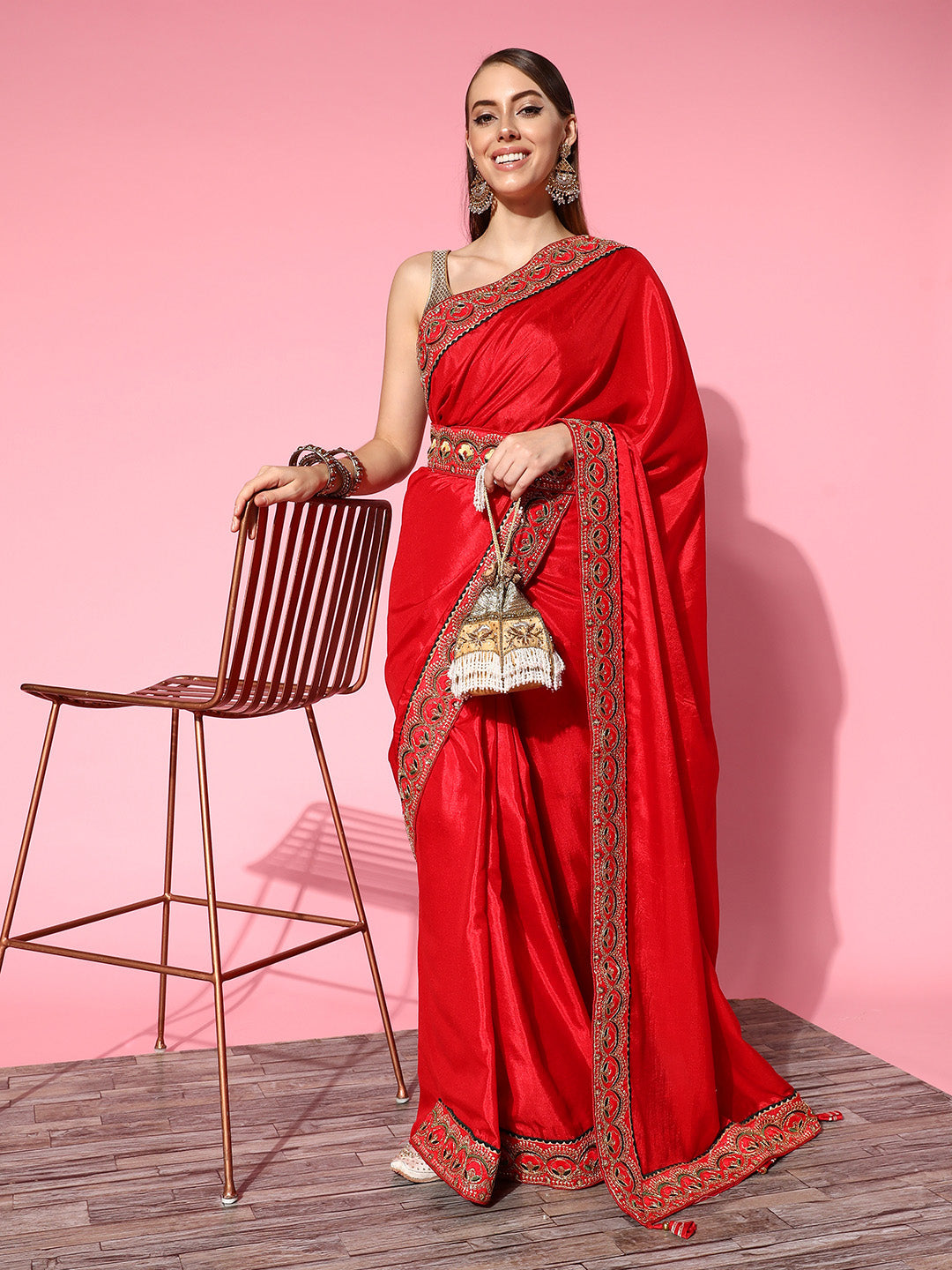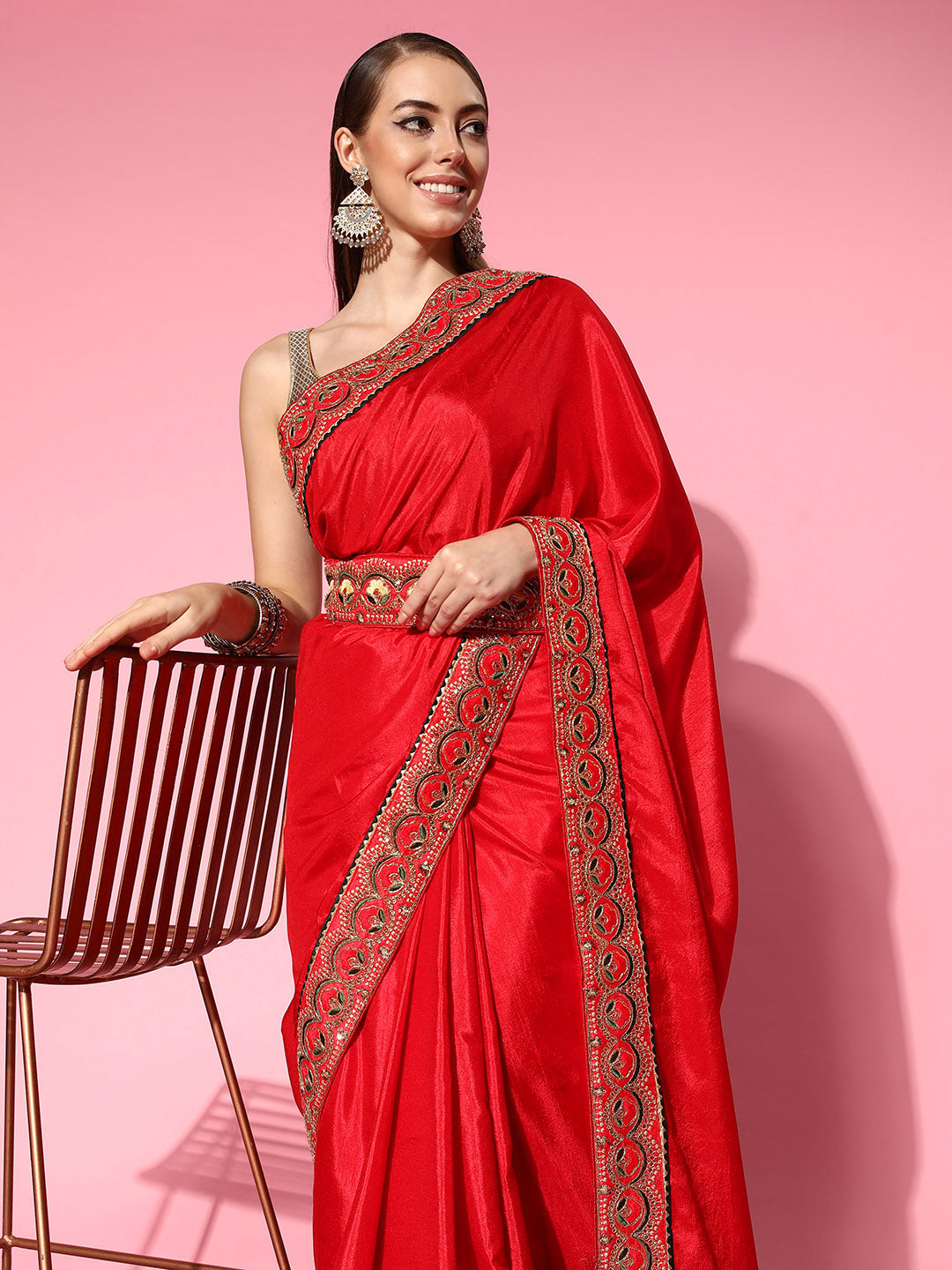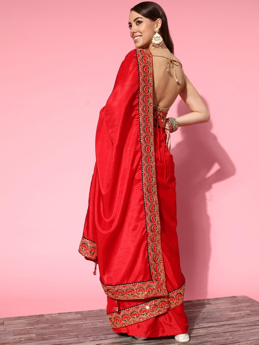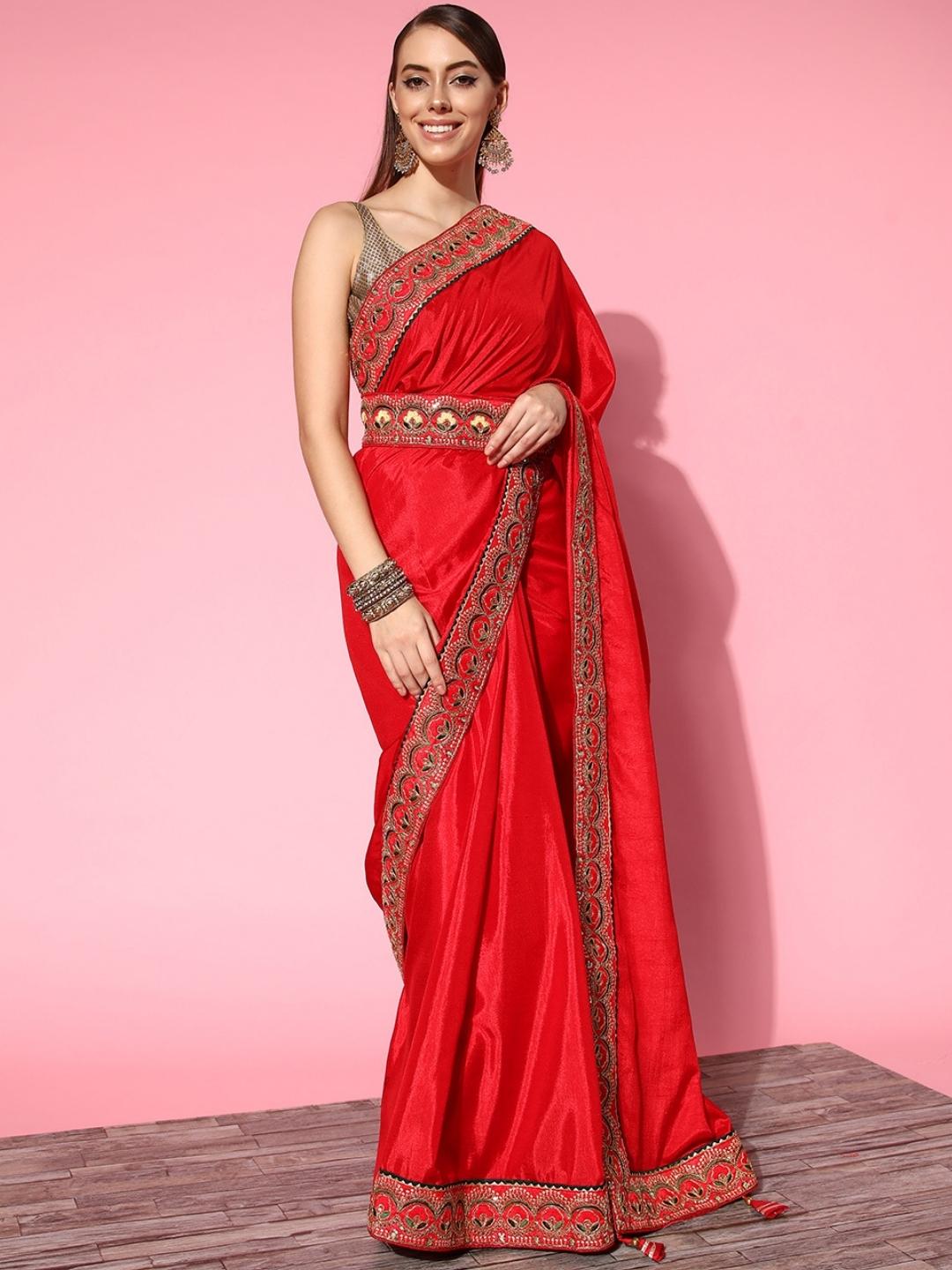 Red Bhagalpuri Silk Belted Saree With Sequin Embellished Border