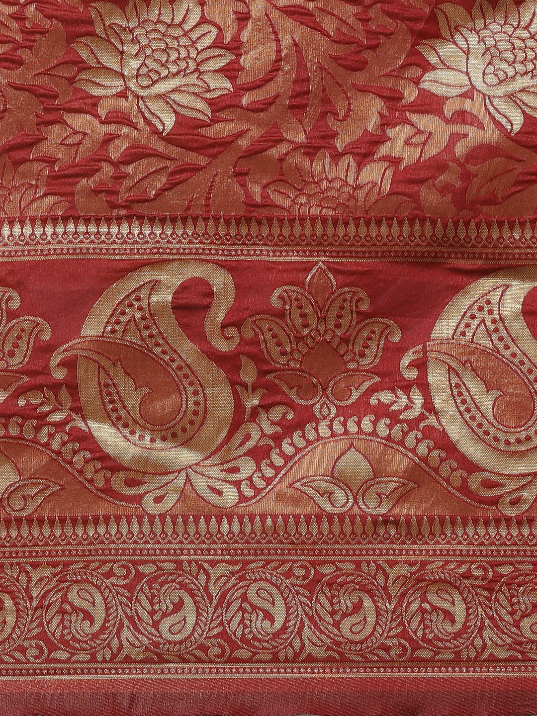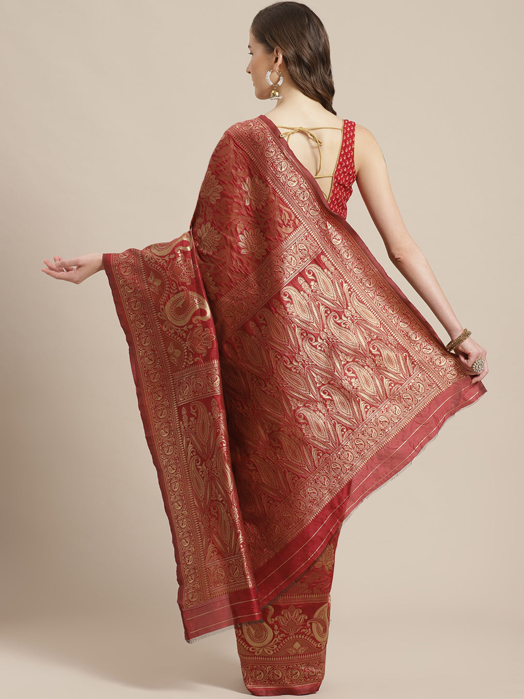 Chhabra 555 Banarasi Handloom Saree with Gold Zari Oxidised Weaving and Floral Ethnic Pattern