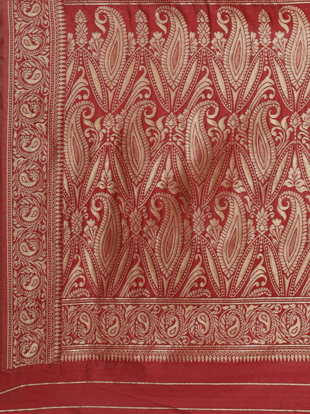 Banarasi Handloom Saree with Gold Zari Oxidised Weaving and Floral Ethnic Pattern