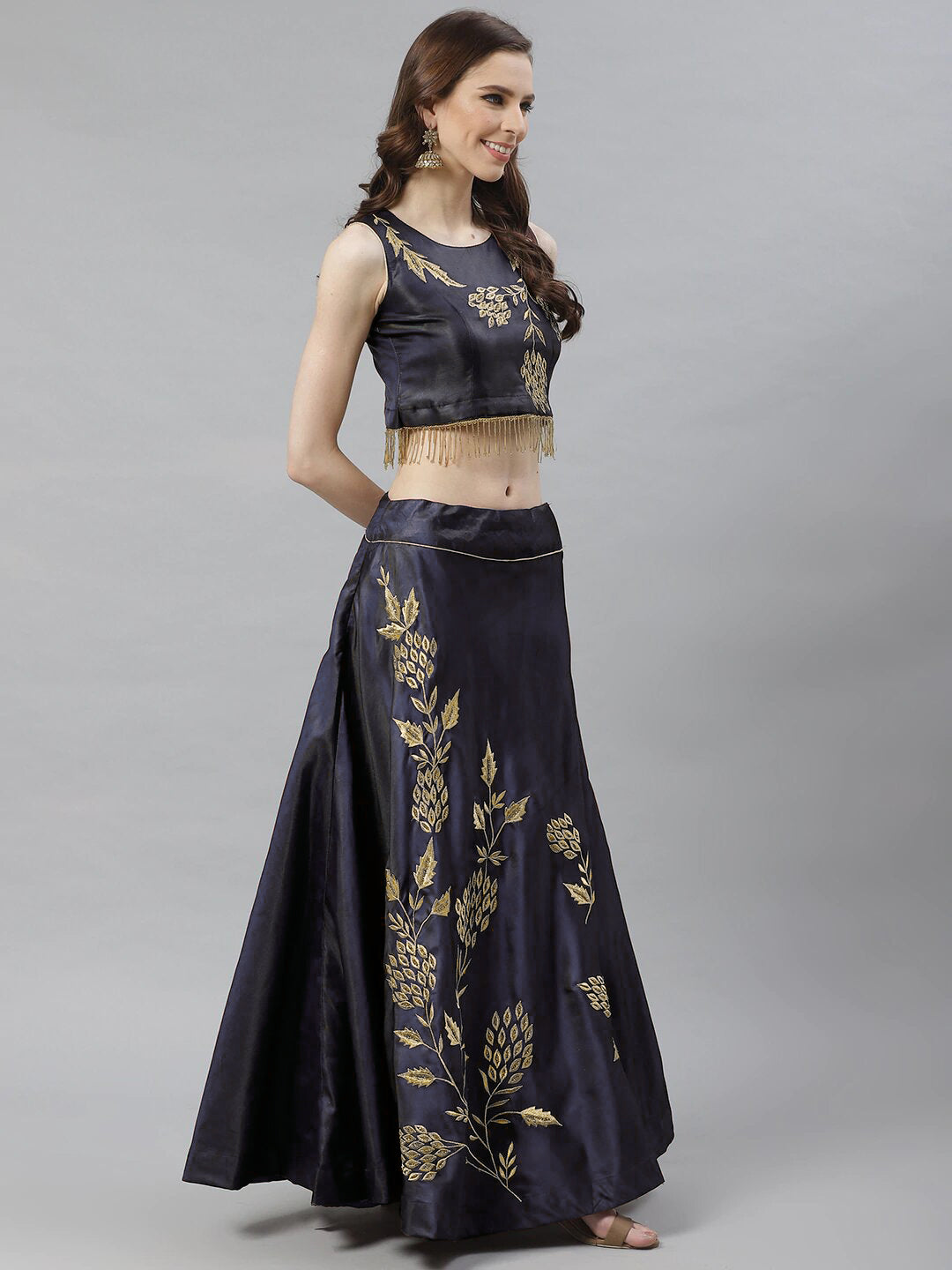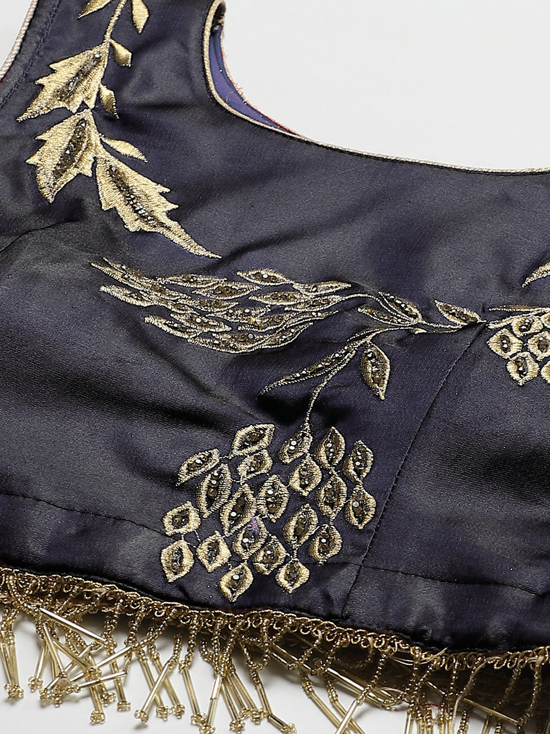 Floral Gold Zari Embroiderd Embellished Lehenga Set