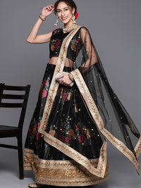 Chhabra 555 Made-To-Measure Chanderi Silk Digital Prints Floral Crop-Top Set & Sequence Embroidery