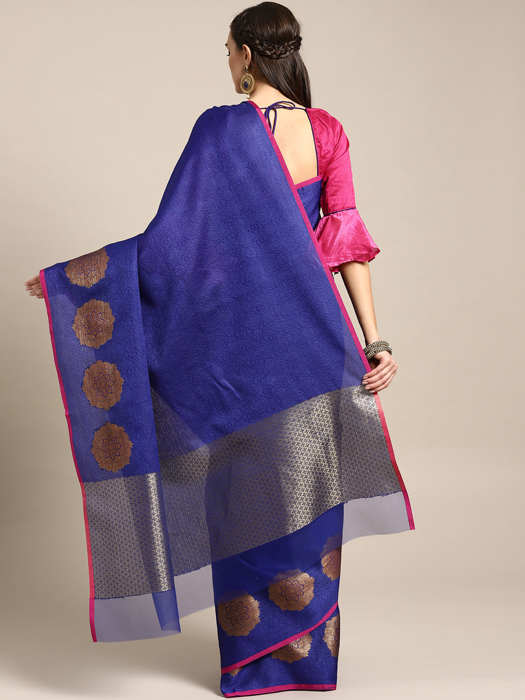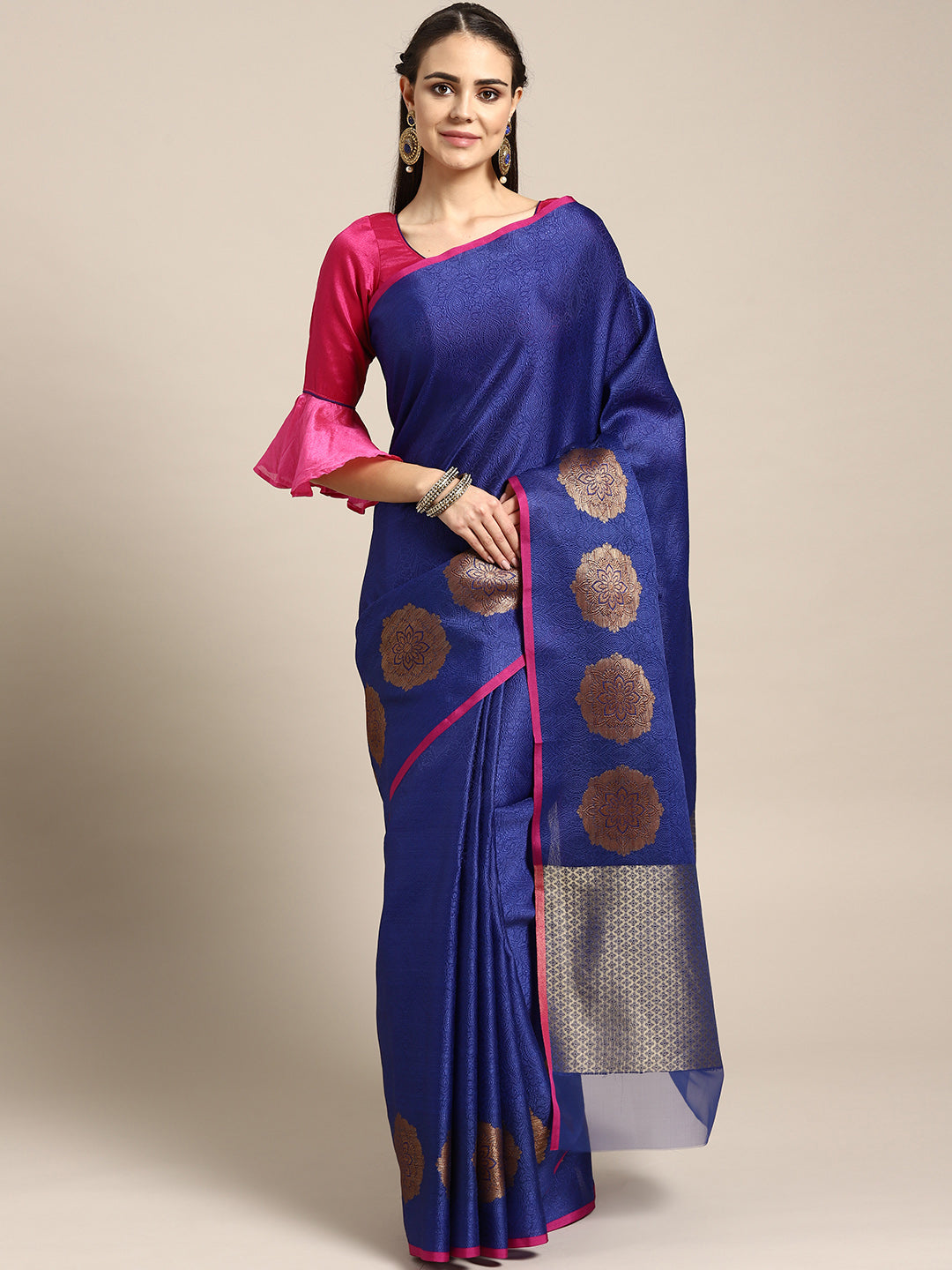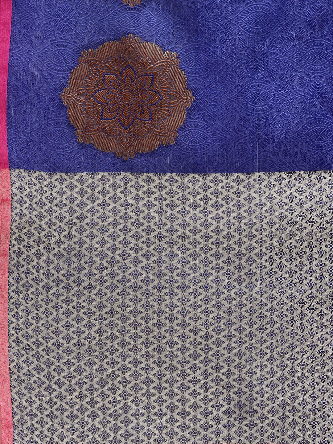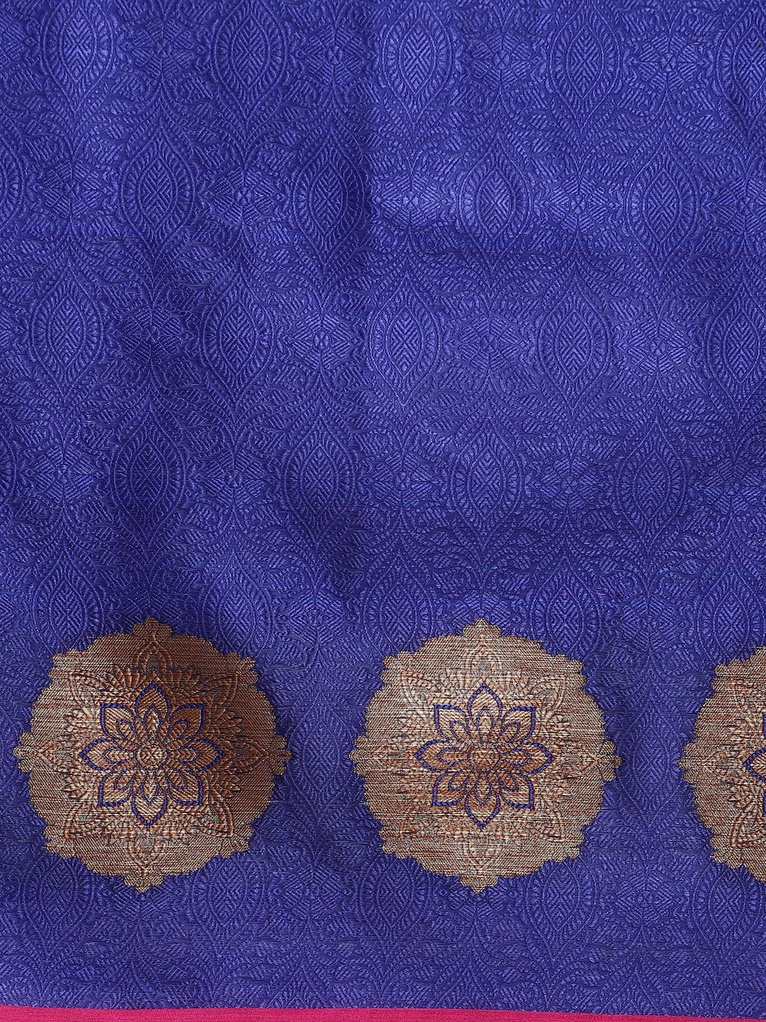 Chhabra 555 Blue Banarasi Brocade Silk saree with Zari weaving in a floral pattern and self embossed ethnic motifs and contrast Pink Blouse