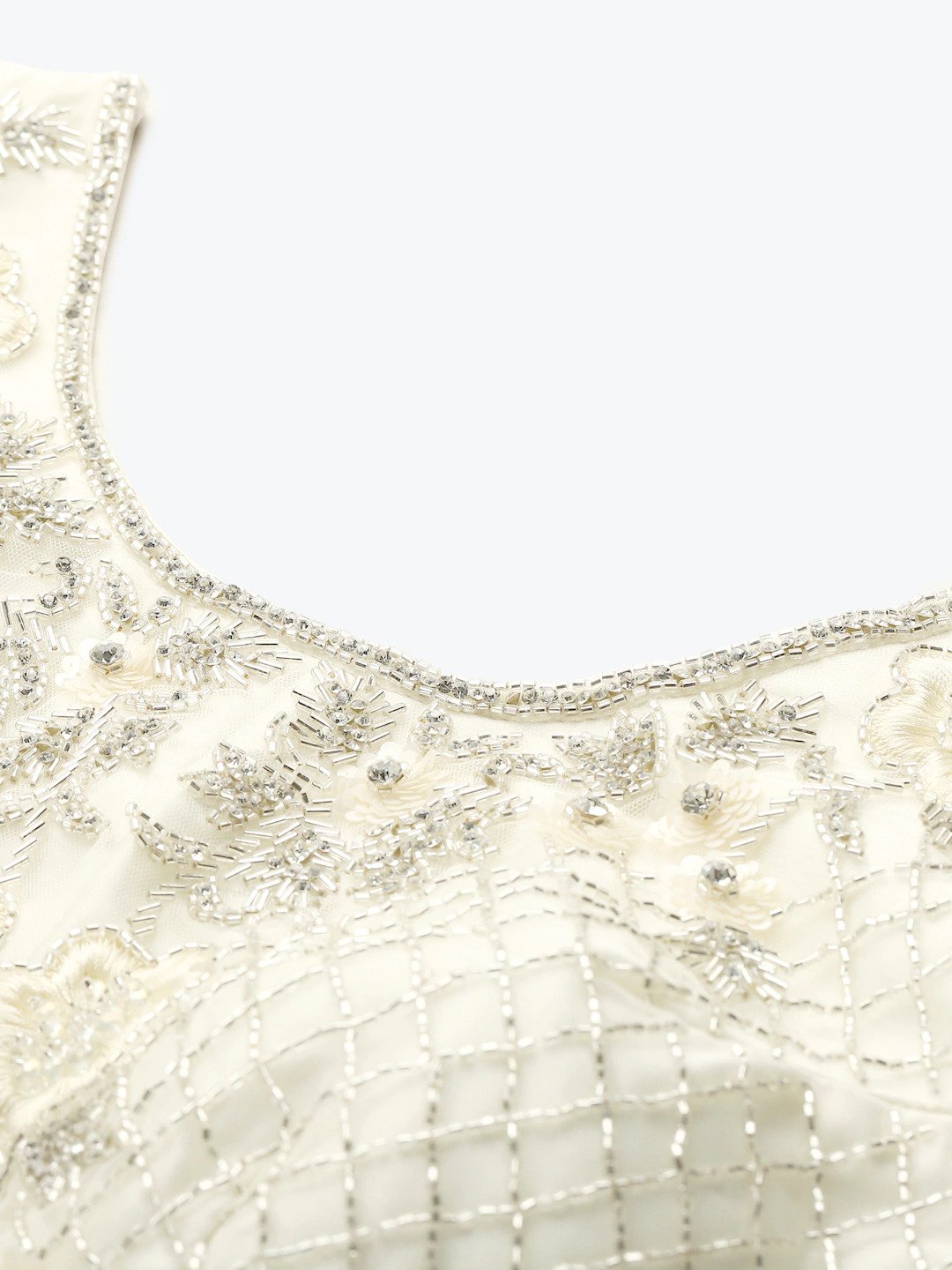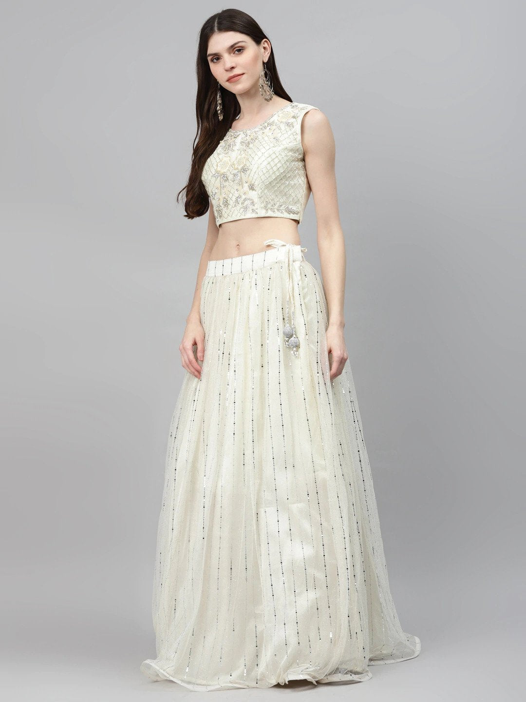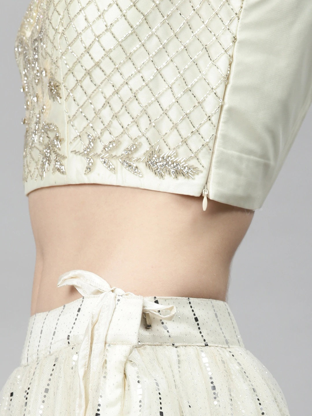 Ivory Embellished Lehenga Set with Silver Cutdana Embroidery Blouse & Net Dupatta