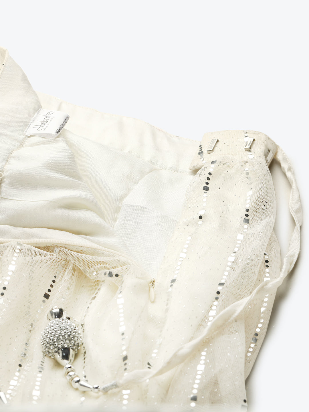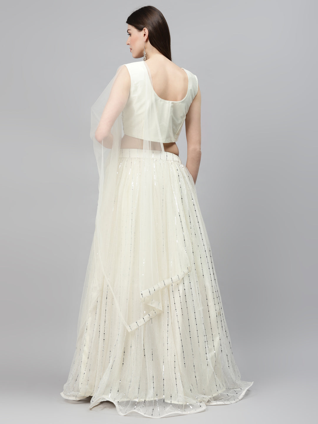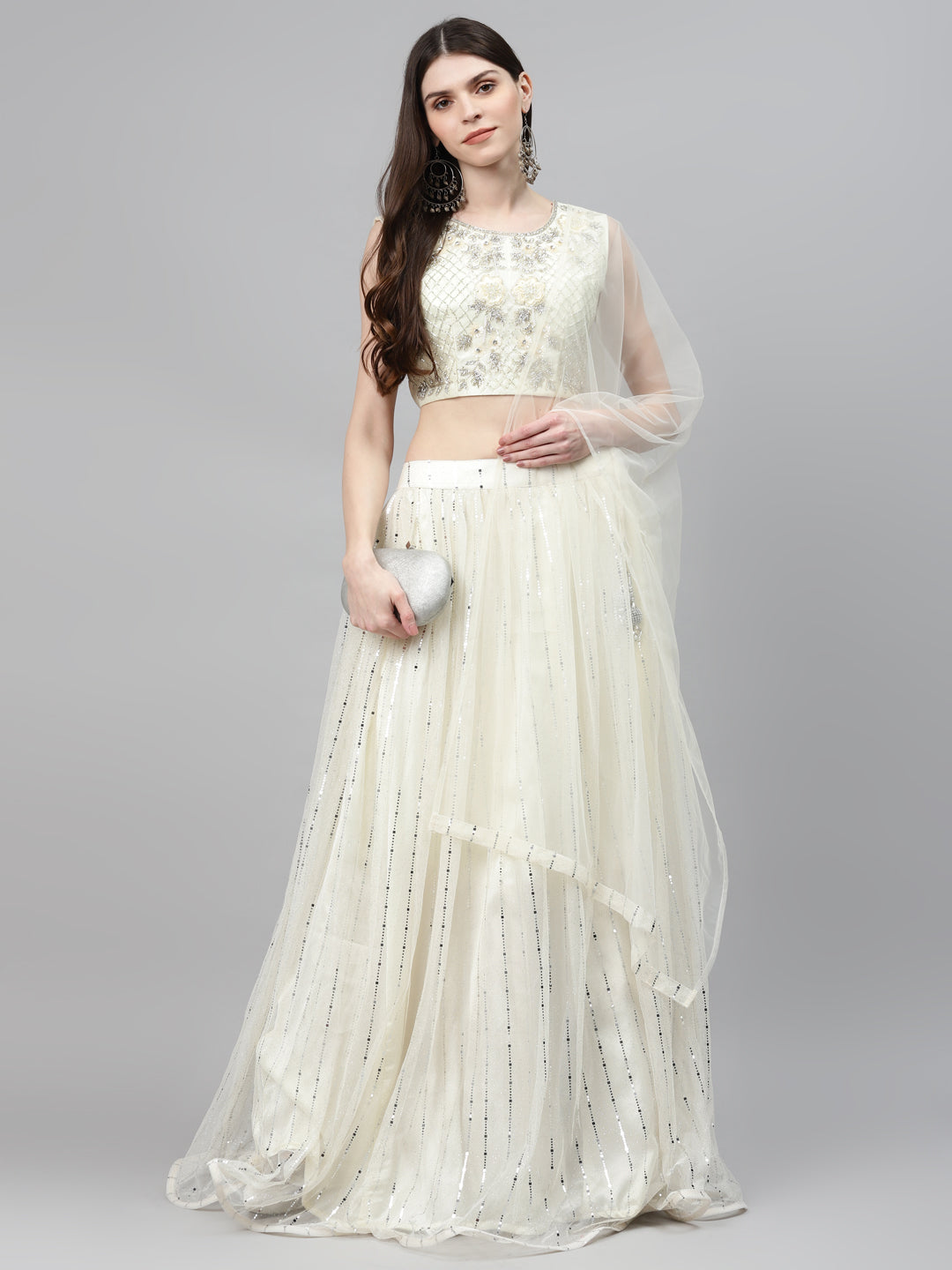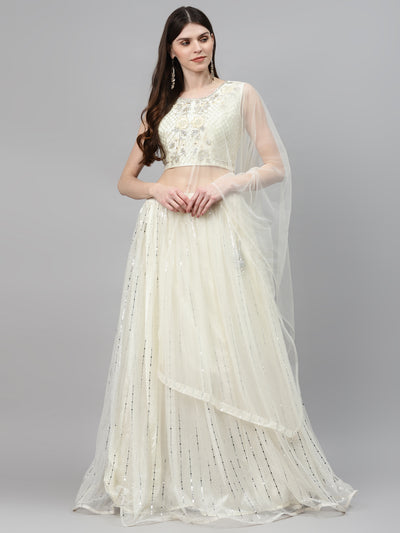 Ivory Embellished Lehenga Set with Silver Cutdana Embroidery Blouse & Net Dupatta