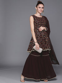 Made to Measure Sequence & Mirror Embroidery Peplum Sharara Suit Set With Pearl Tassels