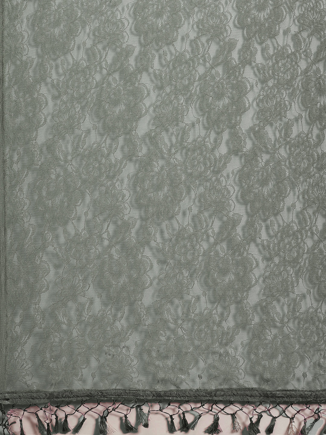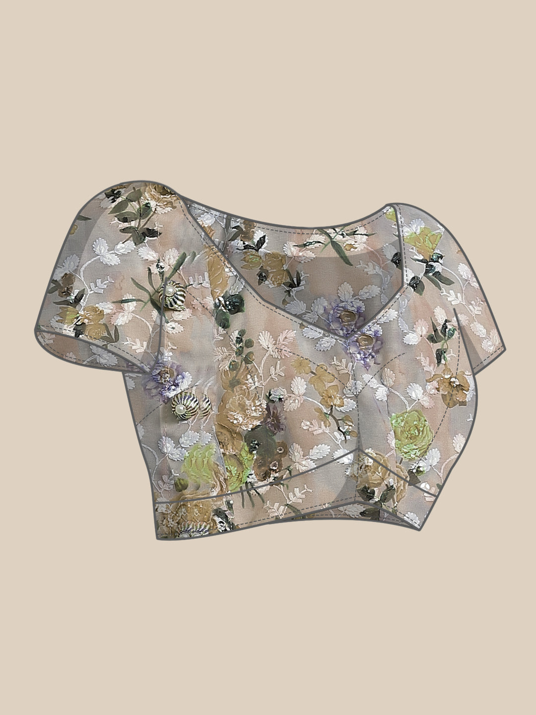 Chantilly Lace Ombre Saree With Floral Shiffli Embroidered Blouse