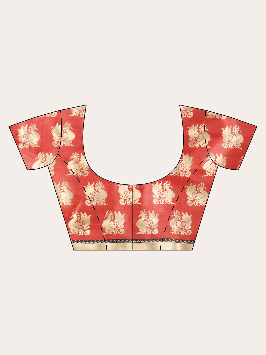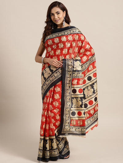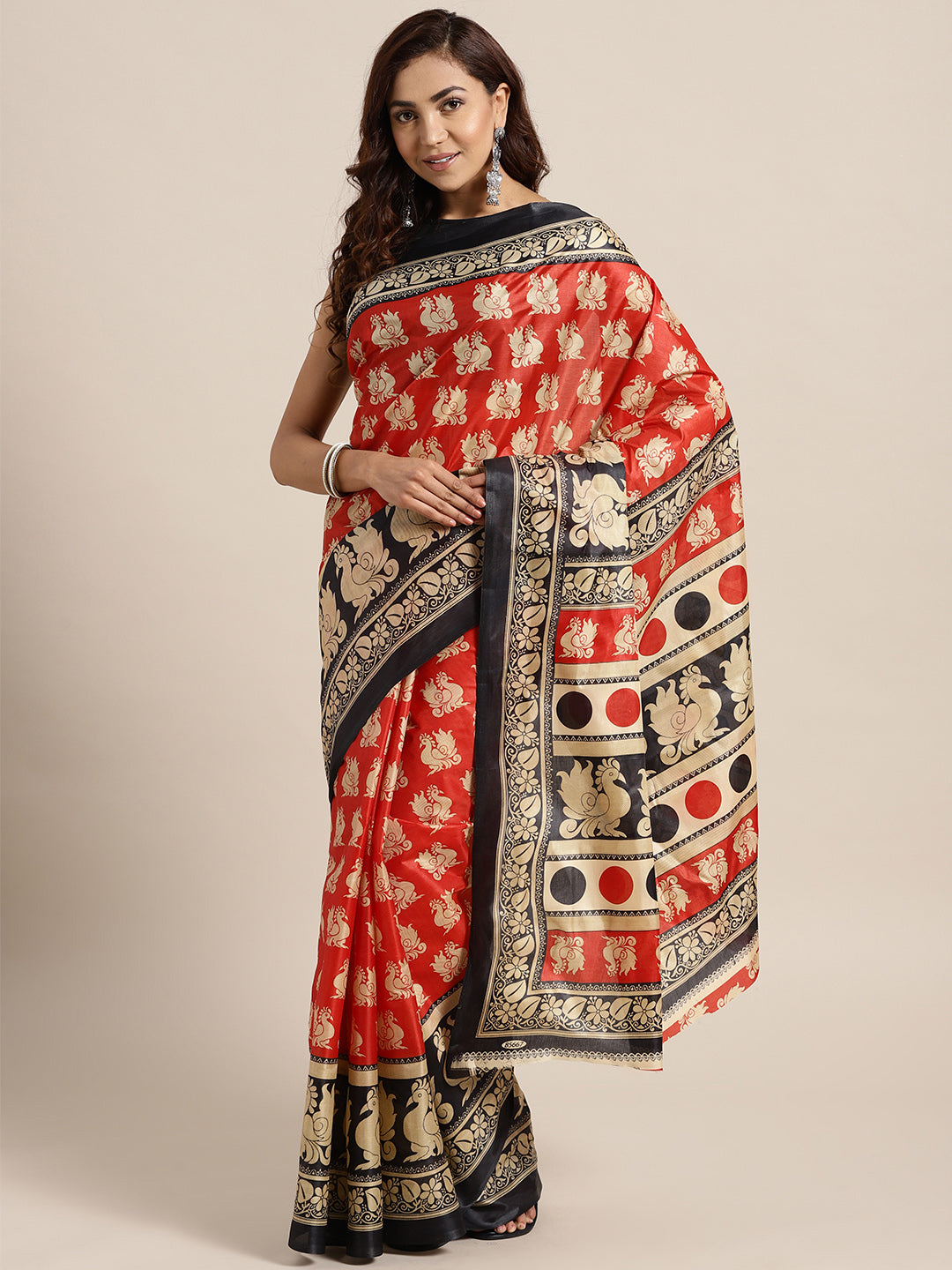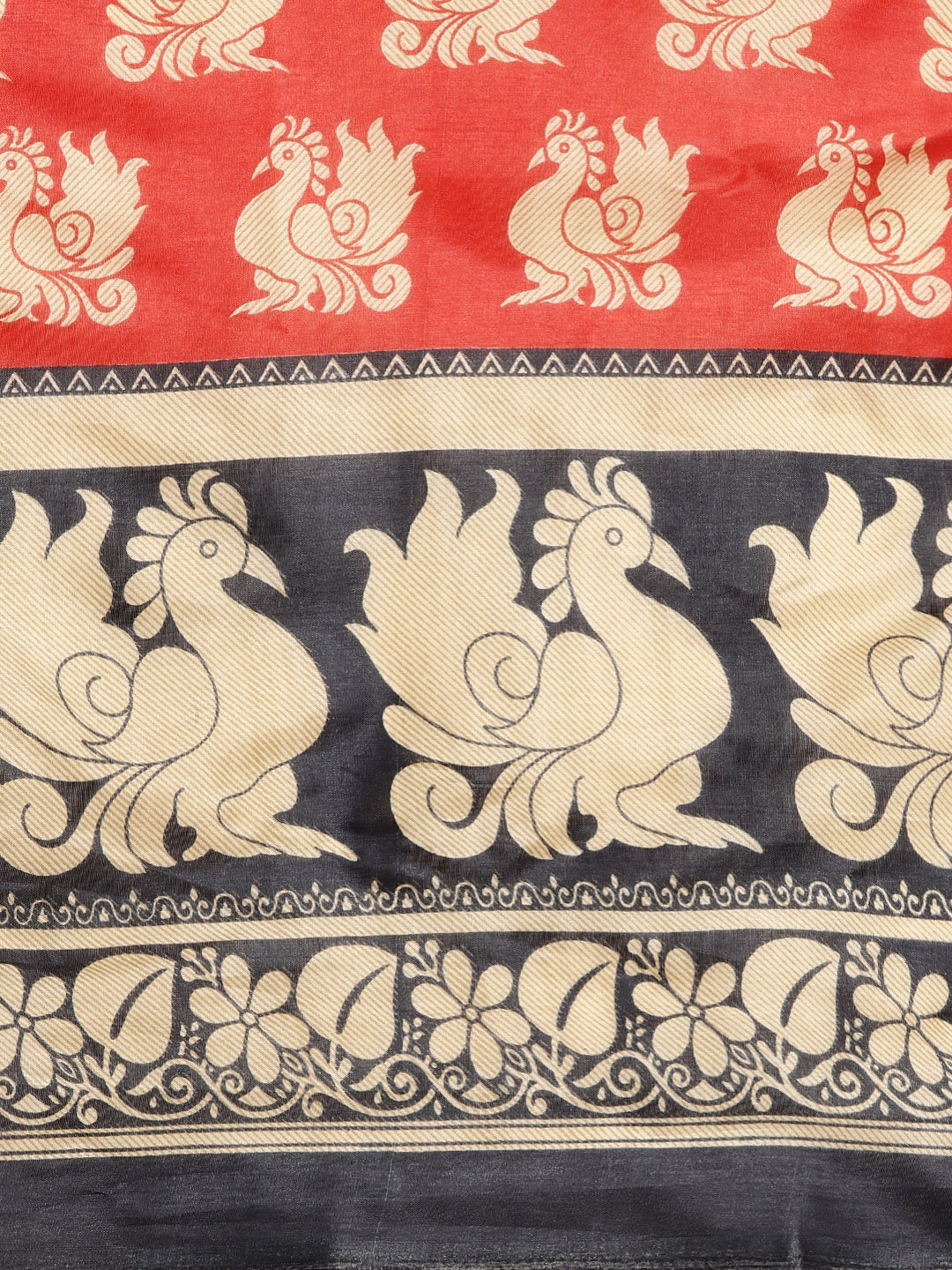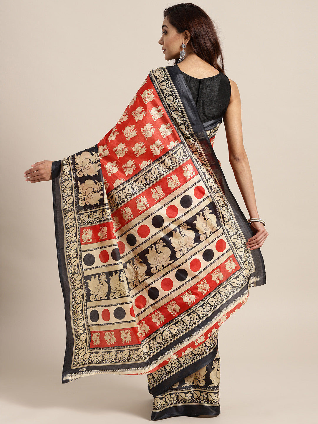Colorblocked Bhagalpuri Printed Saree with Peacock Floral Motifs