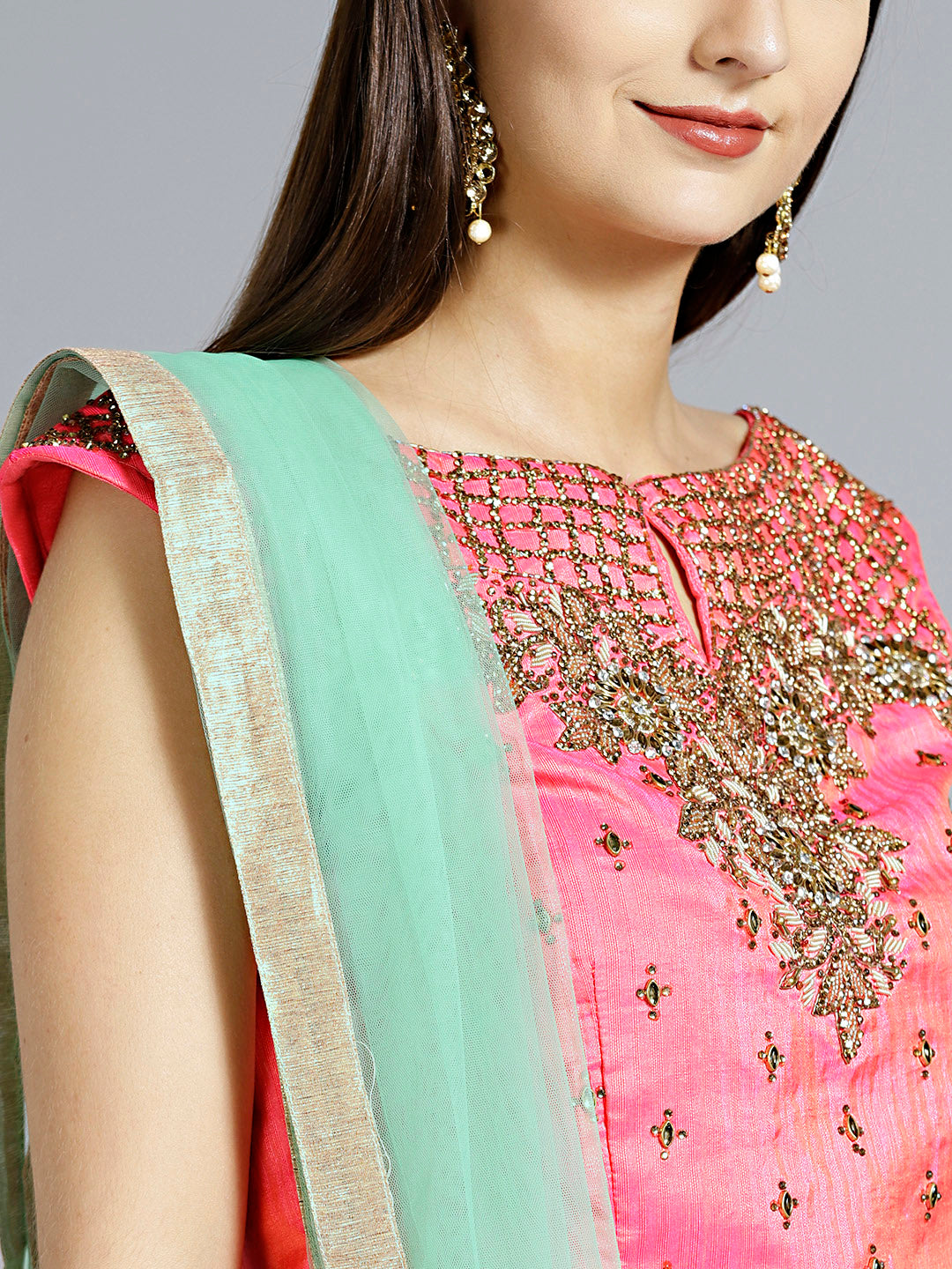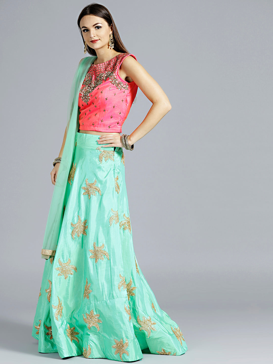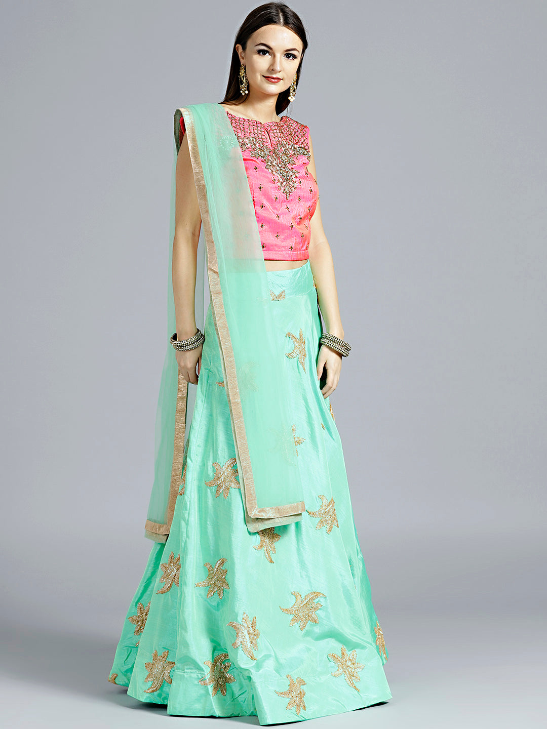 Colorblocked Gota Embroidered Silk Lehenga Choli