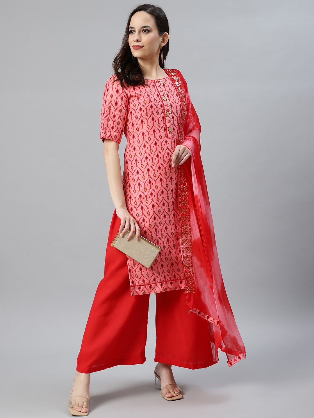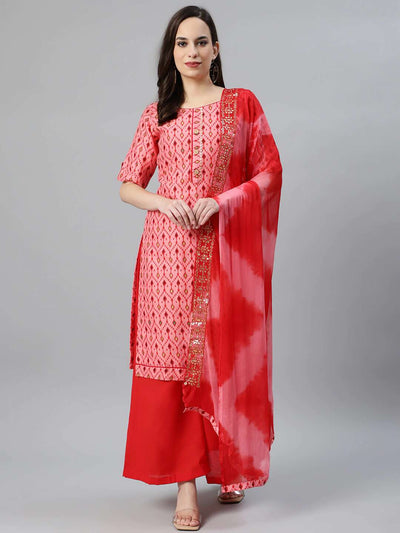 Cotton Stitched Printed Suit With Chiffon Gotapatti Embroidered Dupatta